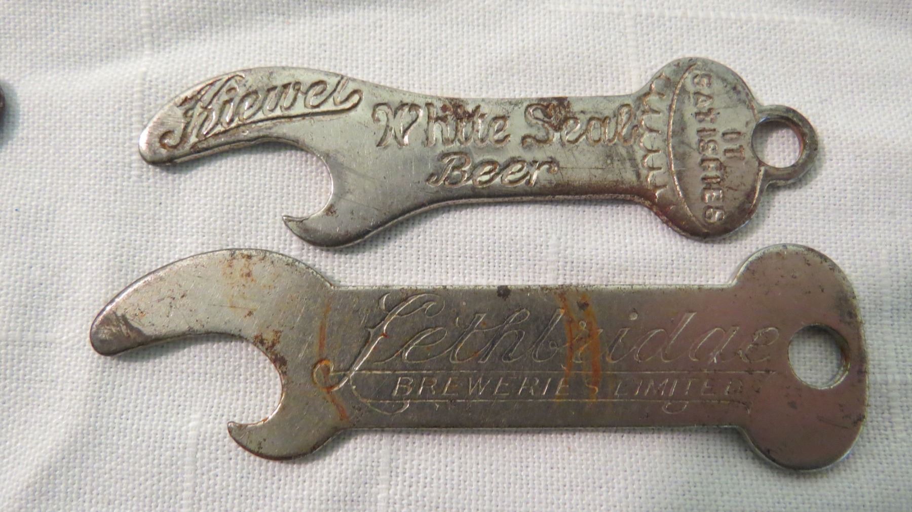 Vintage bottle openers - Prince Albert Boh, Moosejaw Peerless, White Seal, Lethbridge