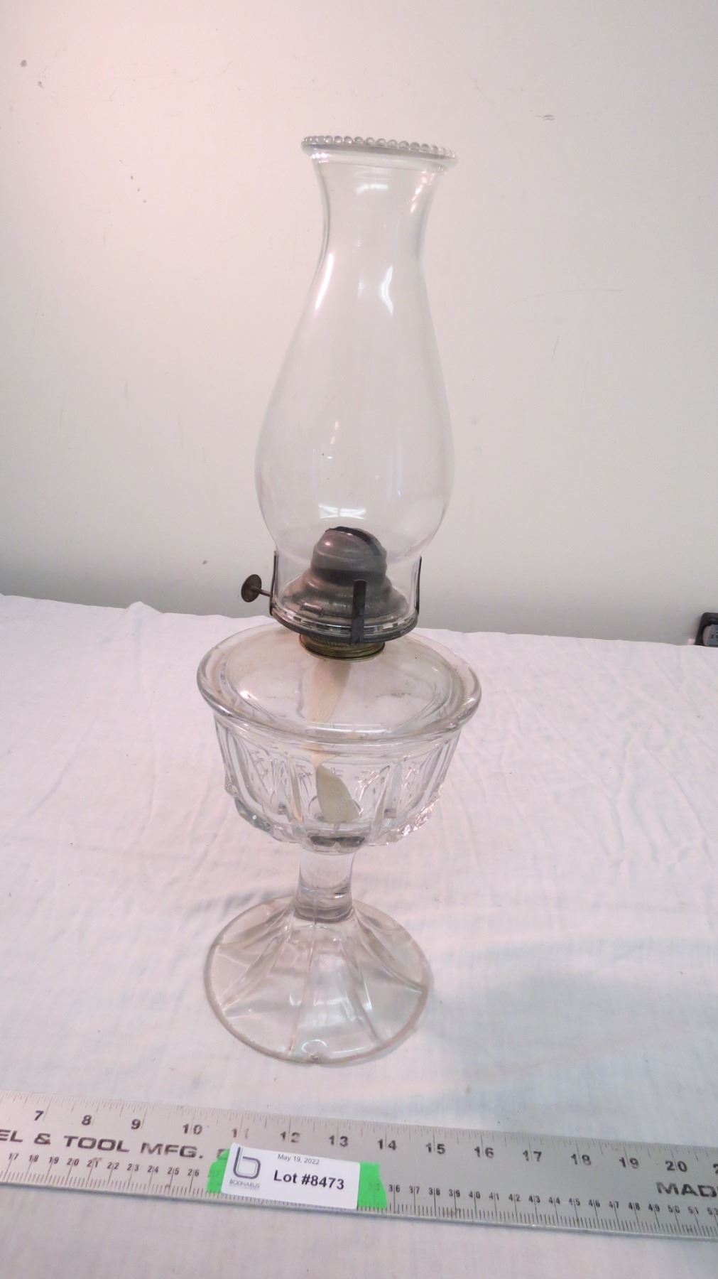 Vintage clear oil lamp w/ chimney 18 1/2" tall