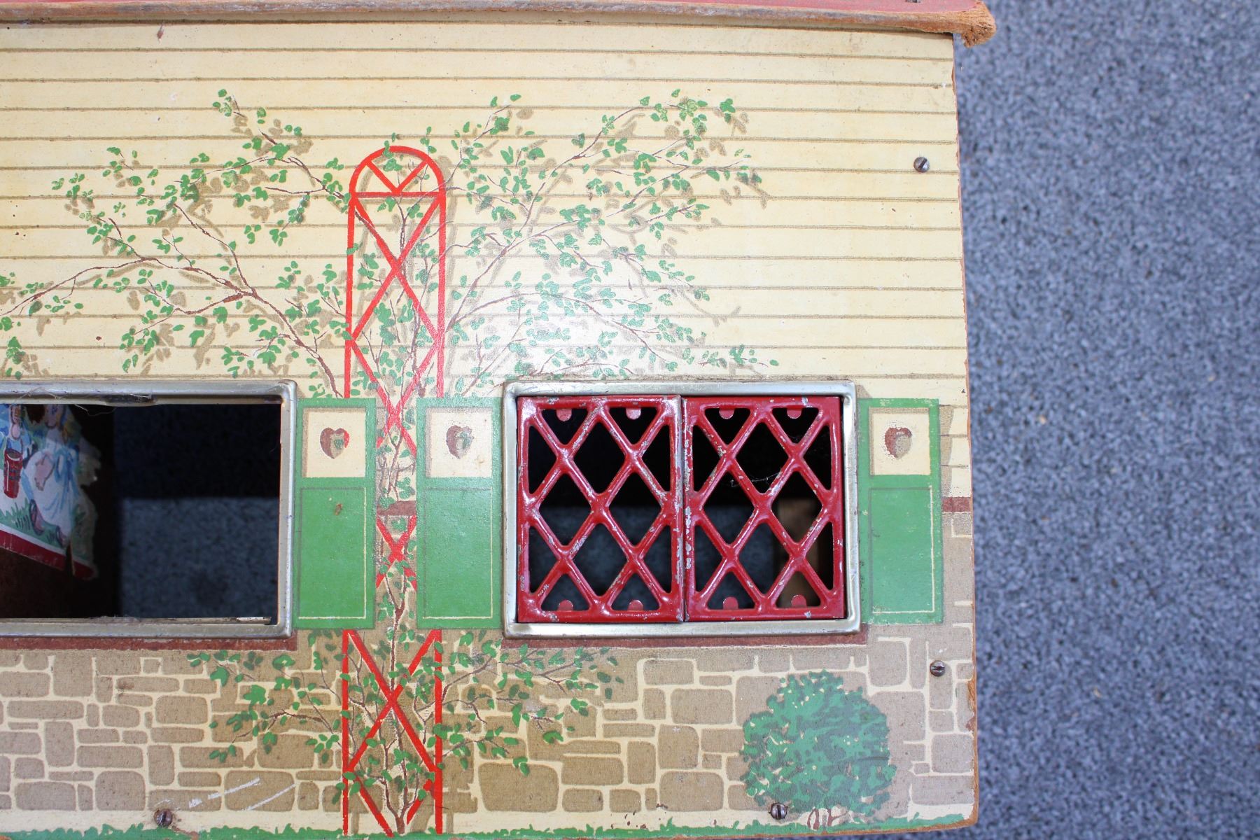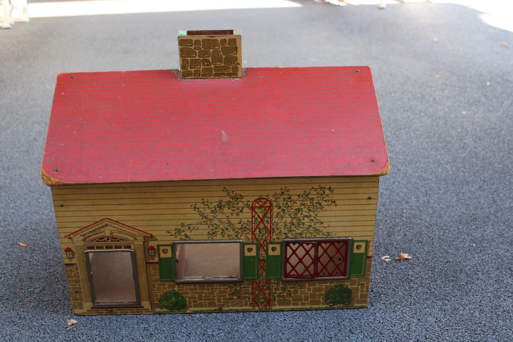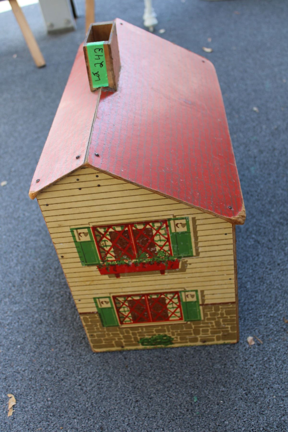 Vintage doll house (wood with tin shutters + trim) - 21x10x17