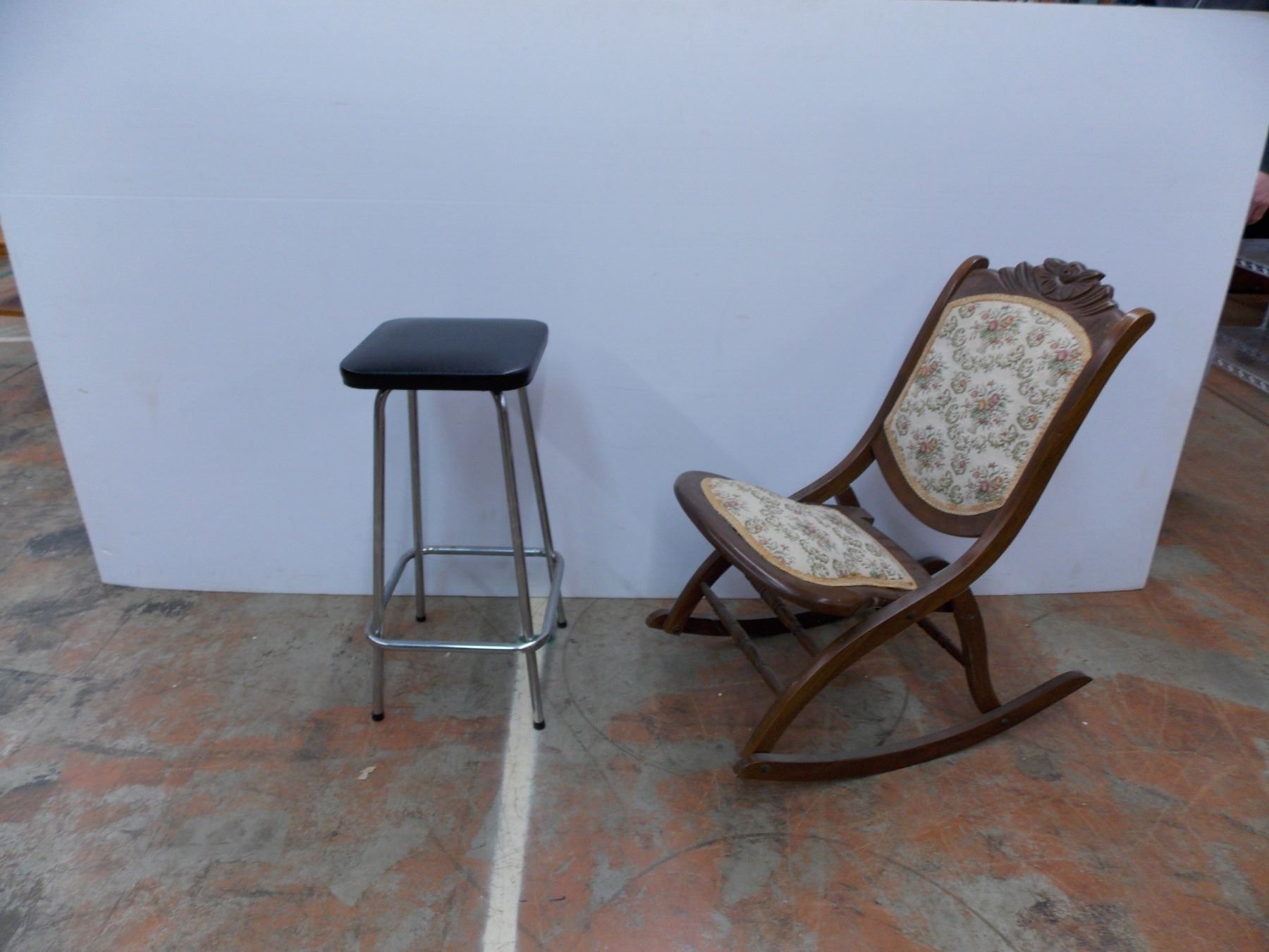 *Vintage (folding) rocking chair (broken seat) + metal bar stool