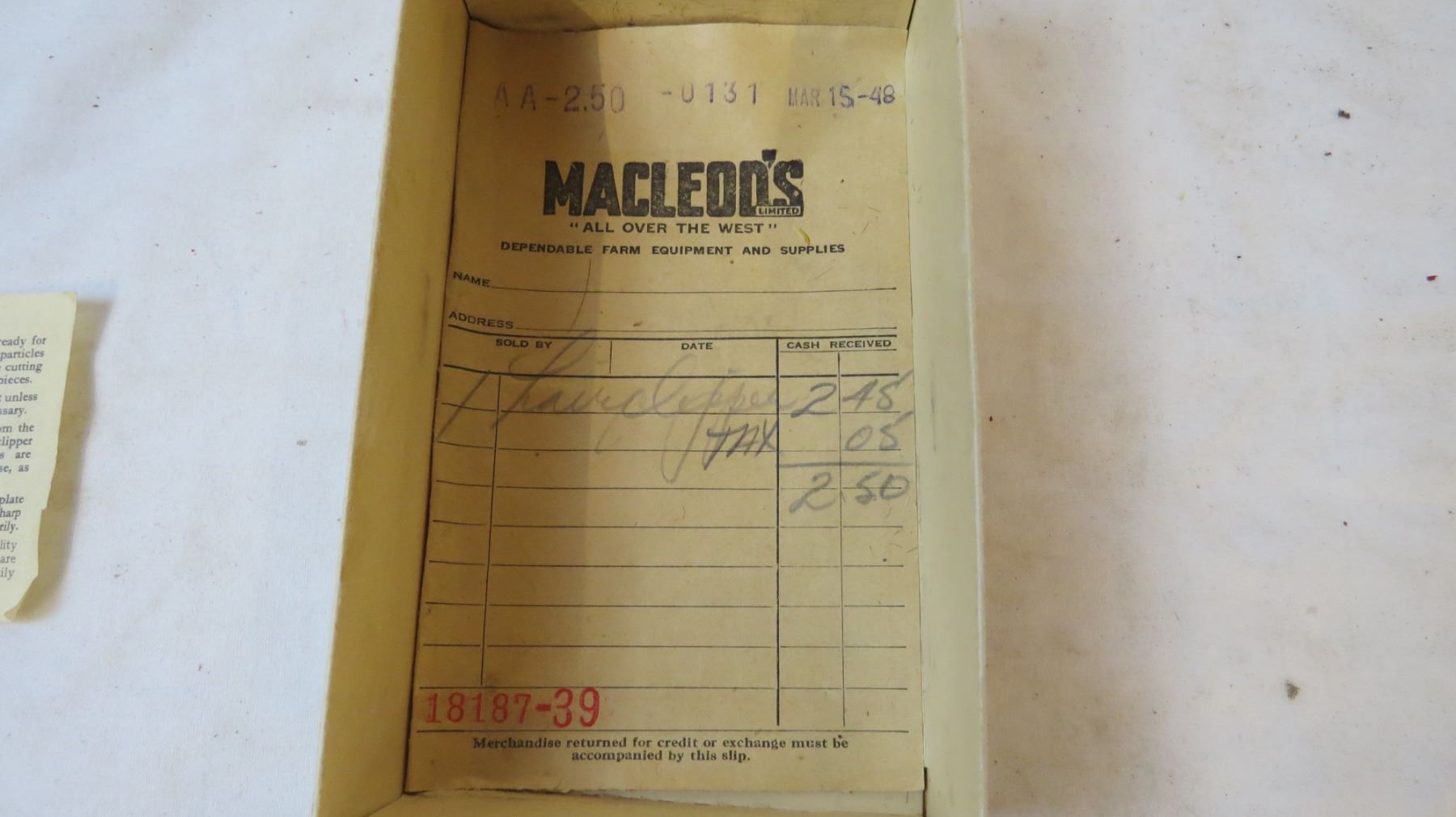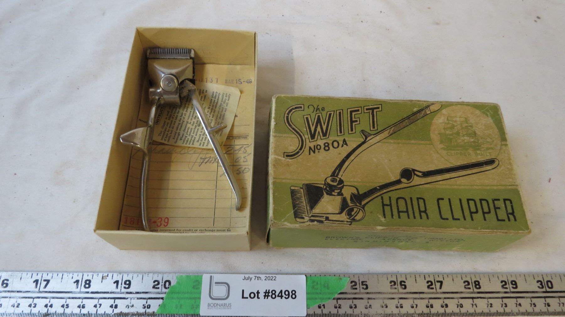 Vintage hair clipper with original receipt and history