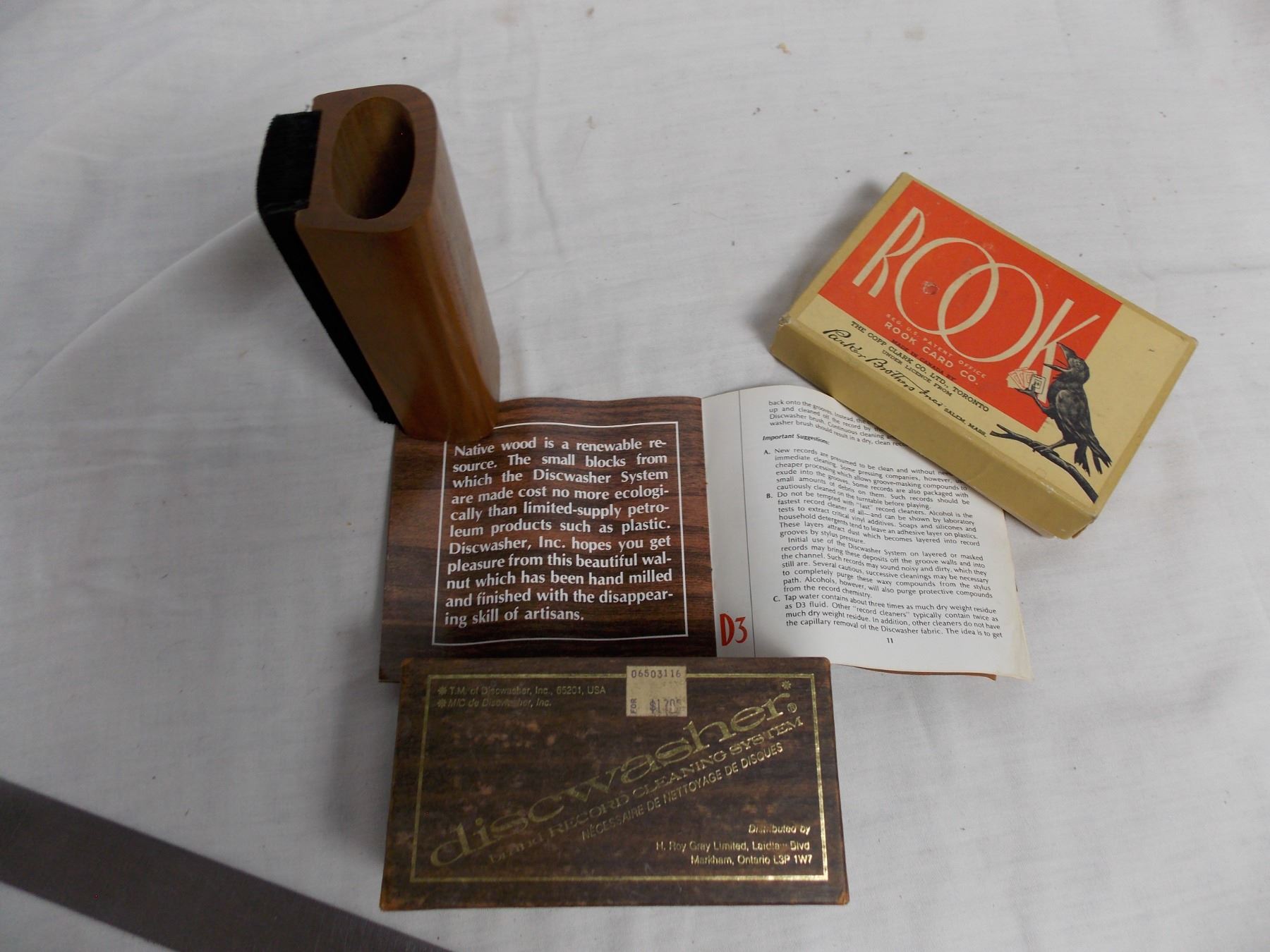 Vintage record discwasher cleaner - in box + Rook Parker brother card game