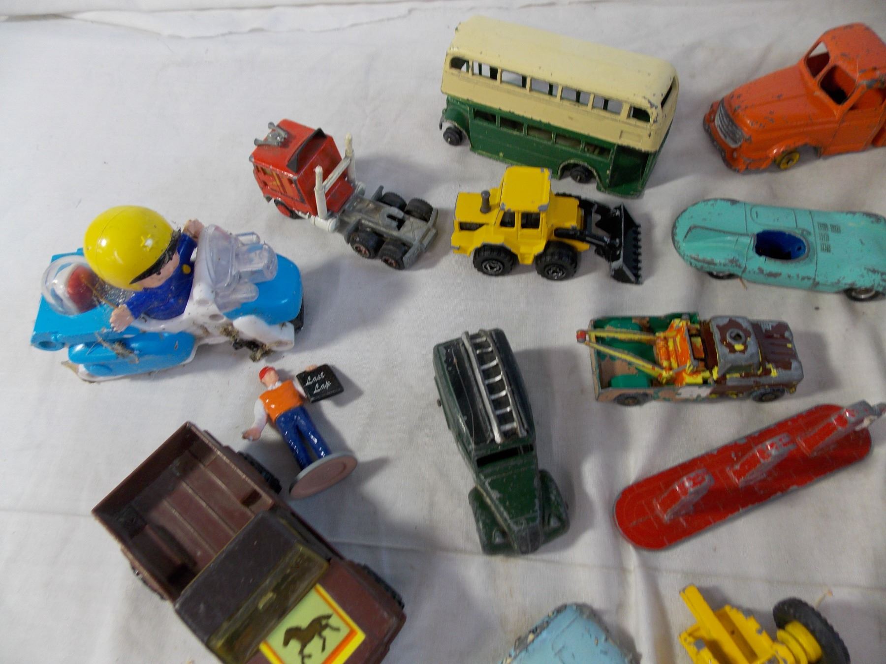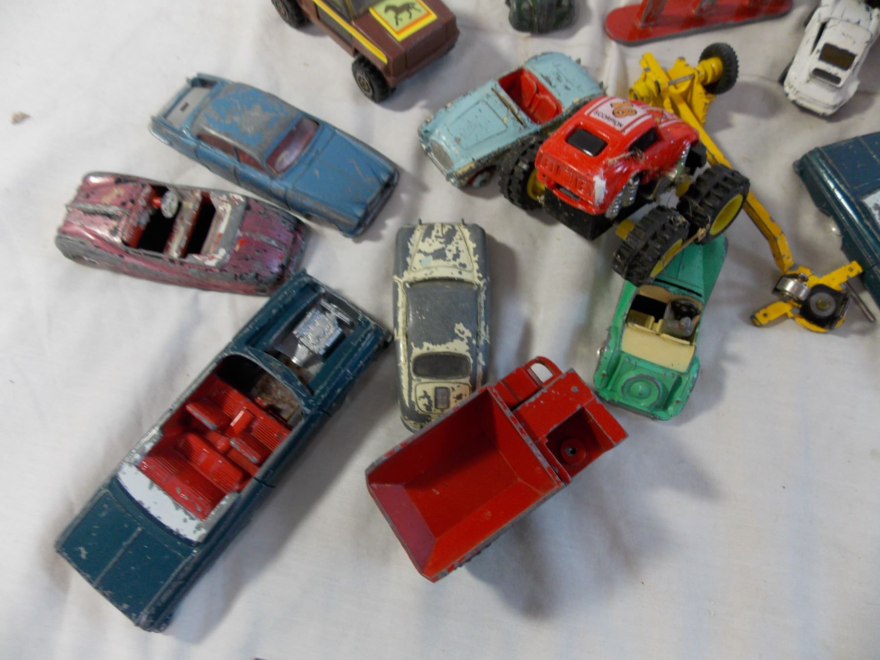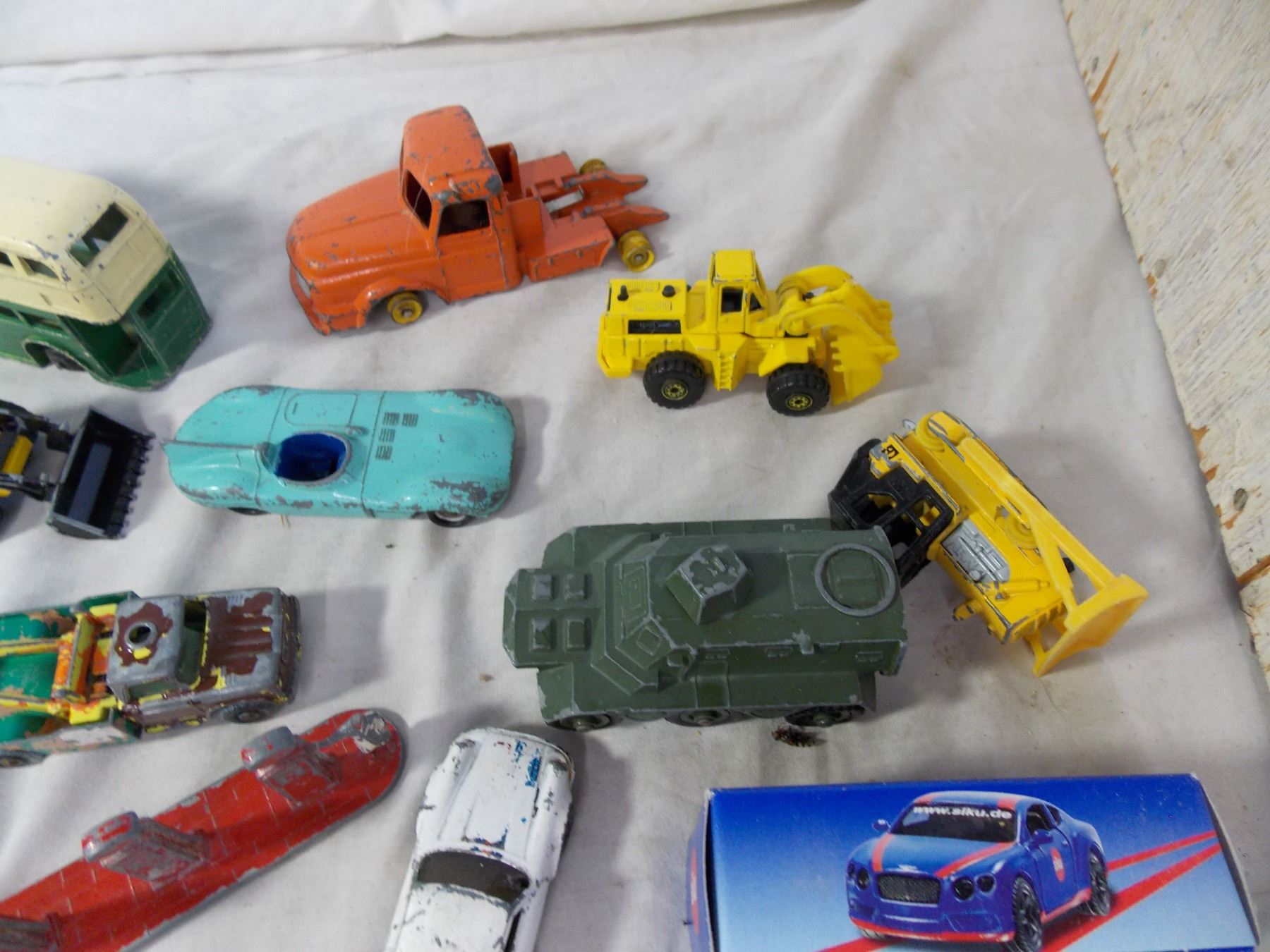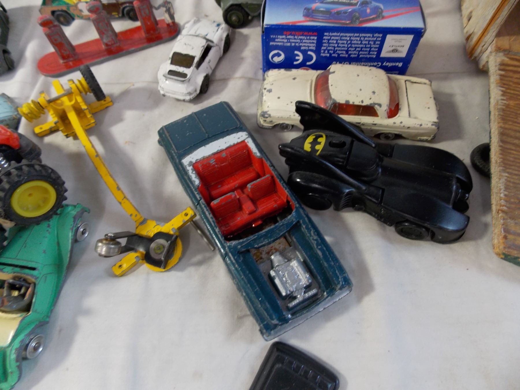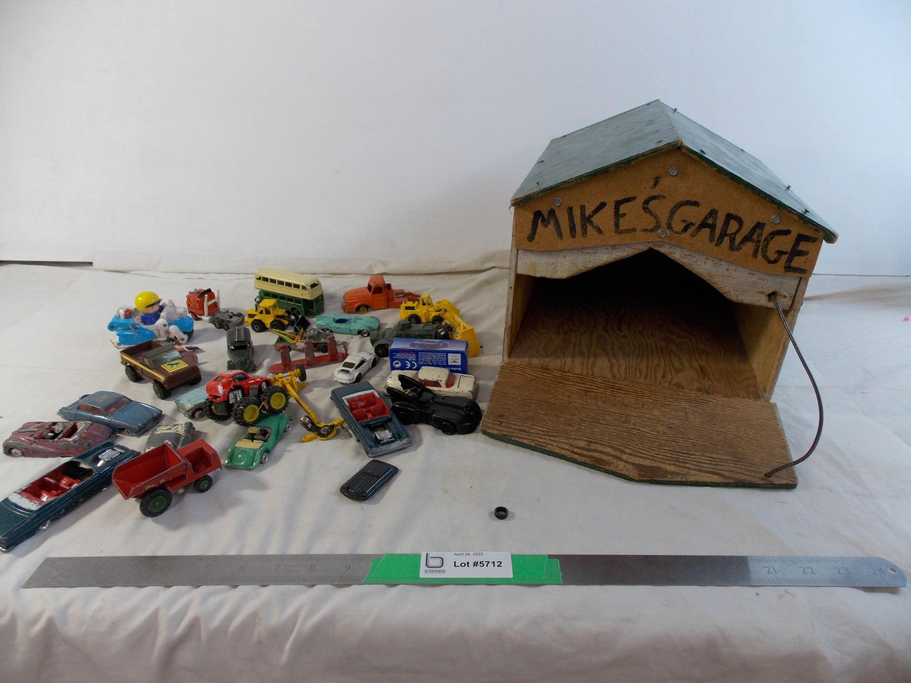 Vintage toy car lot (Dinky Toys) with wooden garage