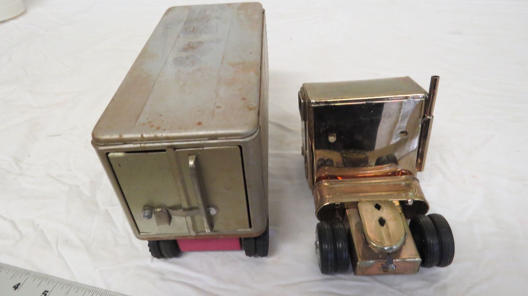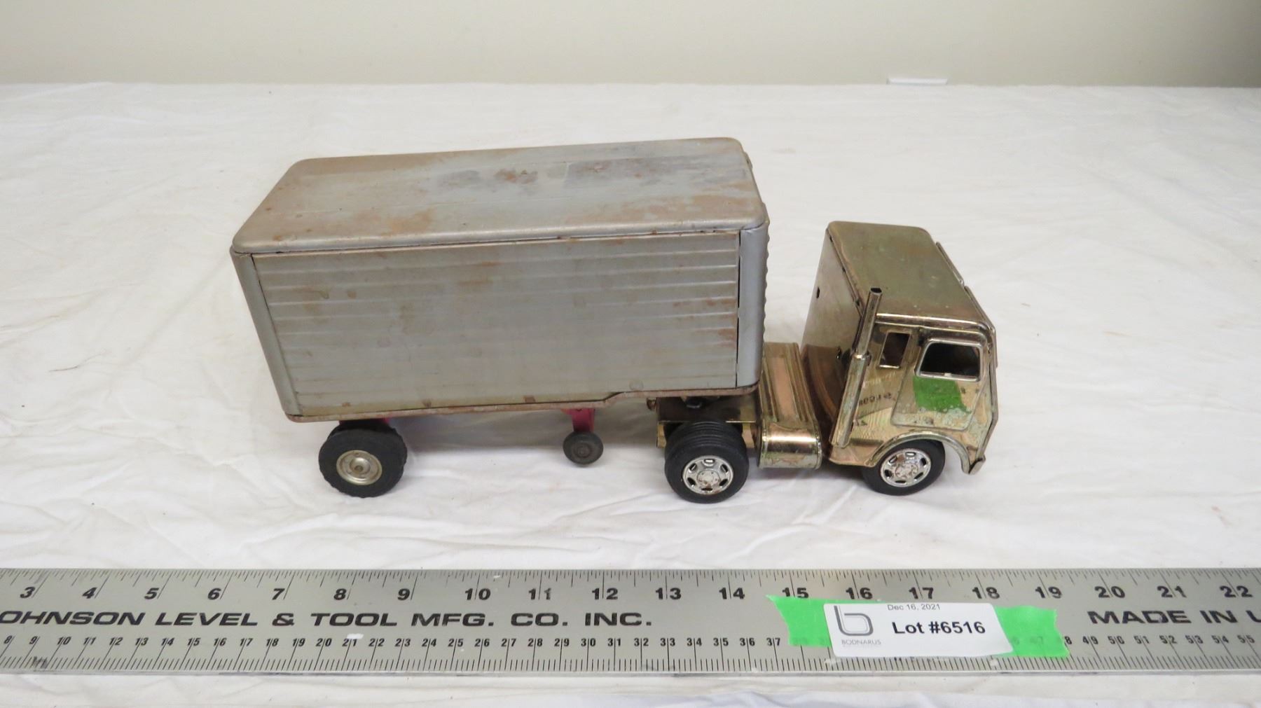 Vintage white freightliner semi + trailer - 12" long - made in Japan