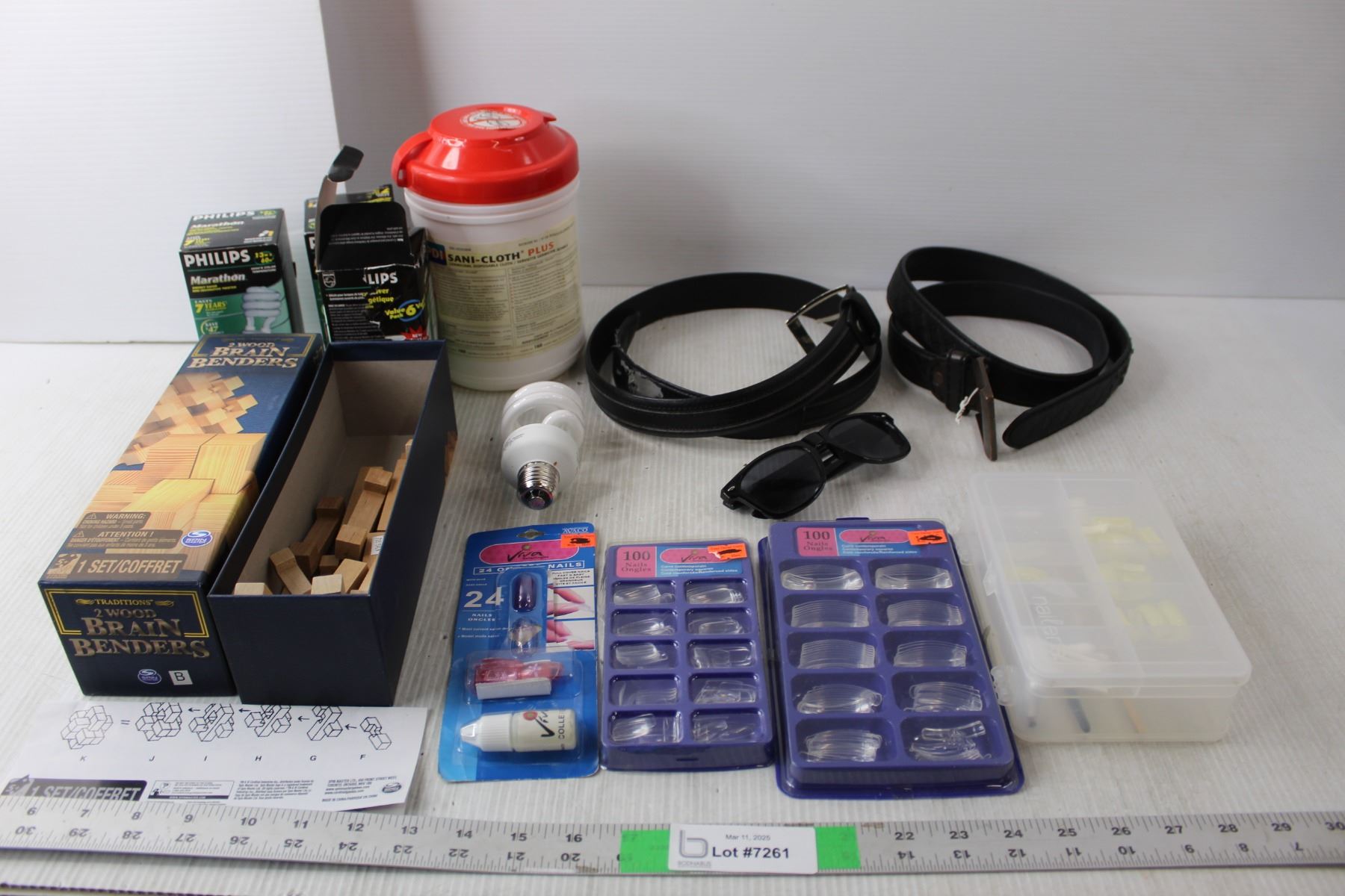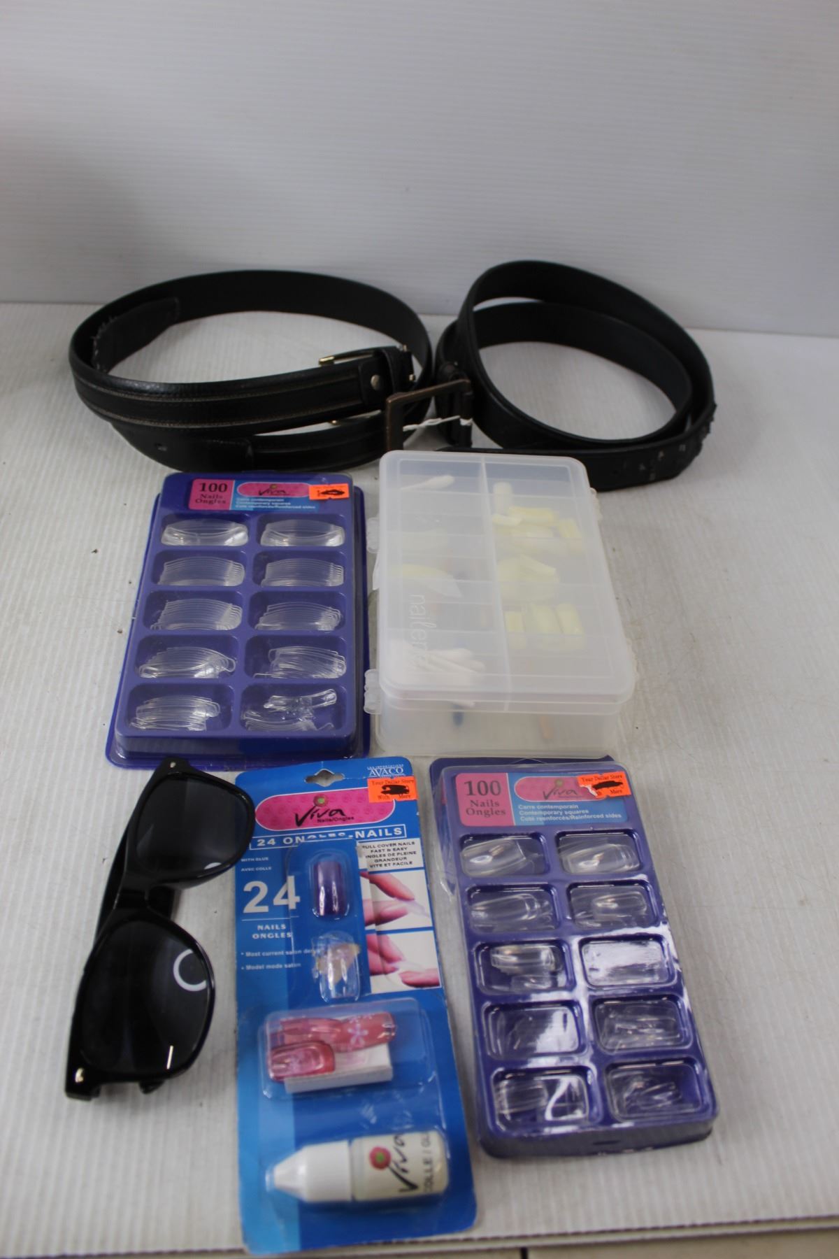 Viva Artificial Nails, (3) Philips Marathon Bulbs, (2) Belts, Misc.