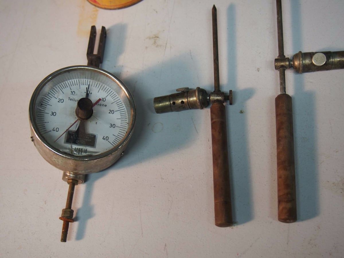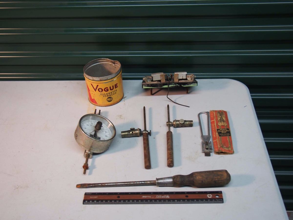 Vogue Tobacco Tin, Vacuum Pressure Gauge, Stanley Wooden Handled Screwdriver, Etc