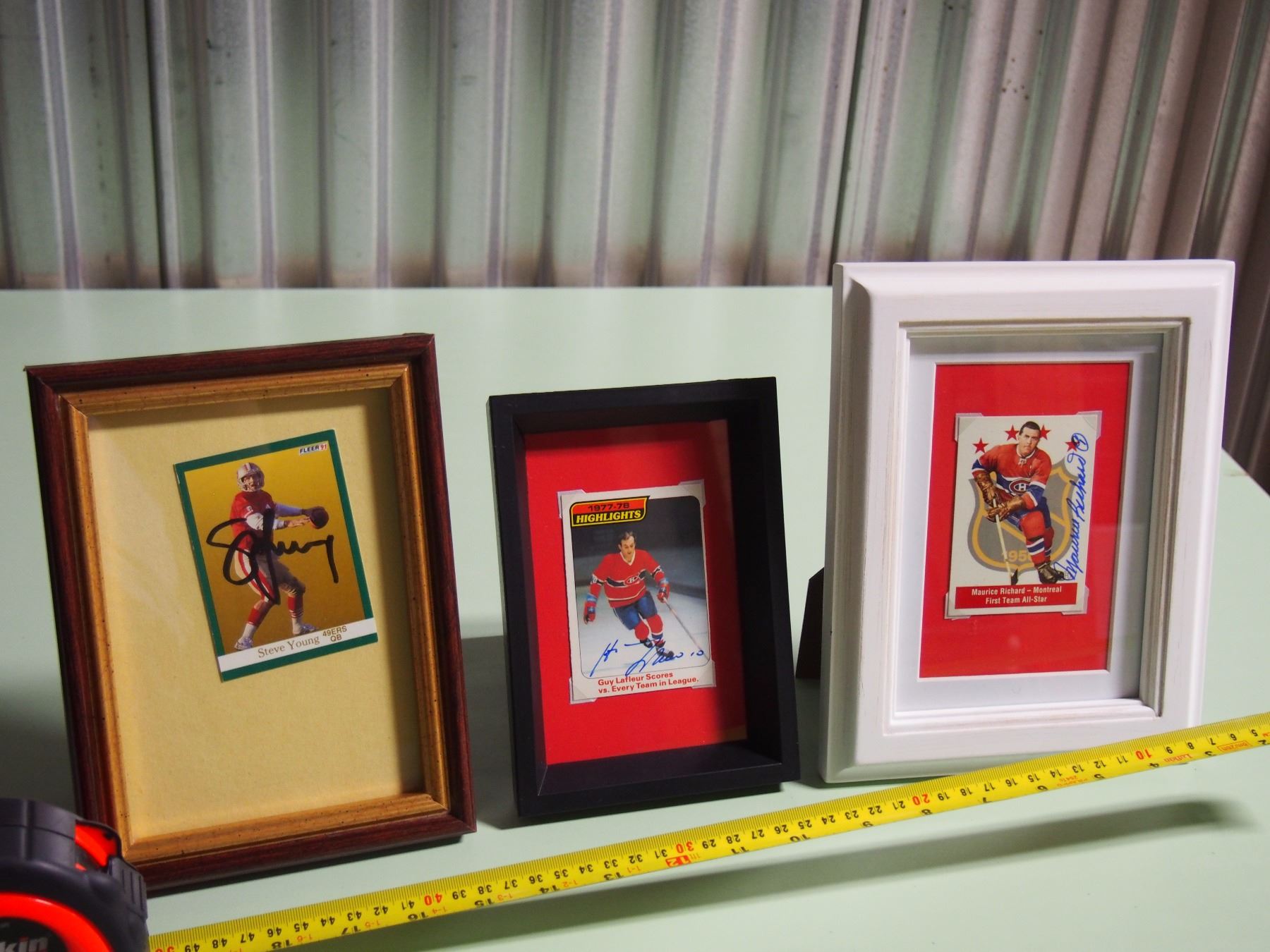 Framed Signed Sports Cards (3) (Maurice Richard, Guy Lafleur, Steve Young)