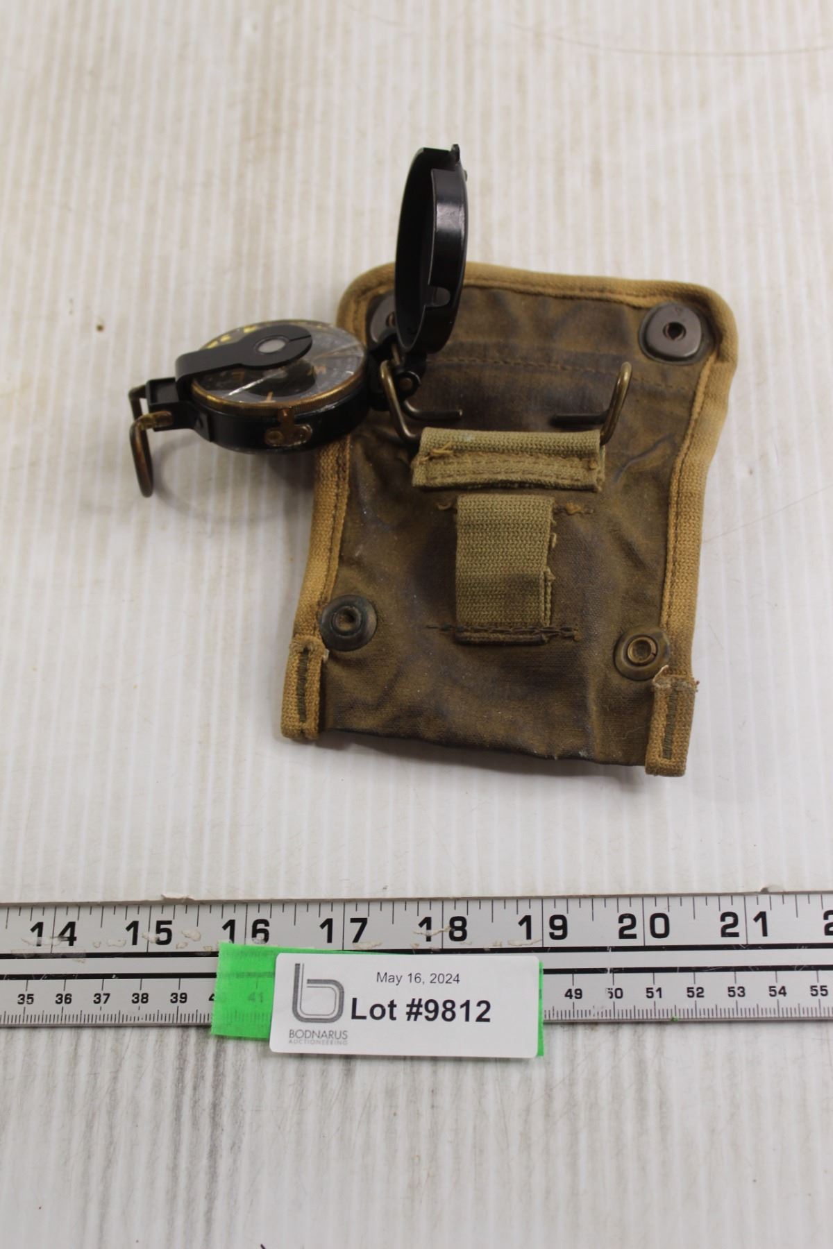 WWII Aviation Compass in Case - Cracked Glass, Works