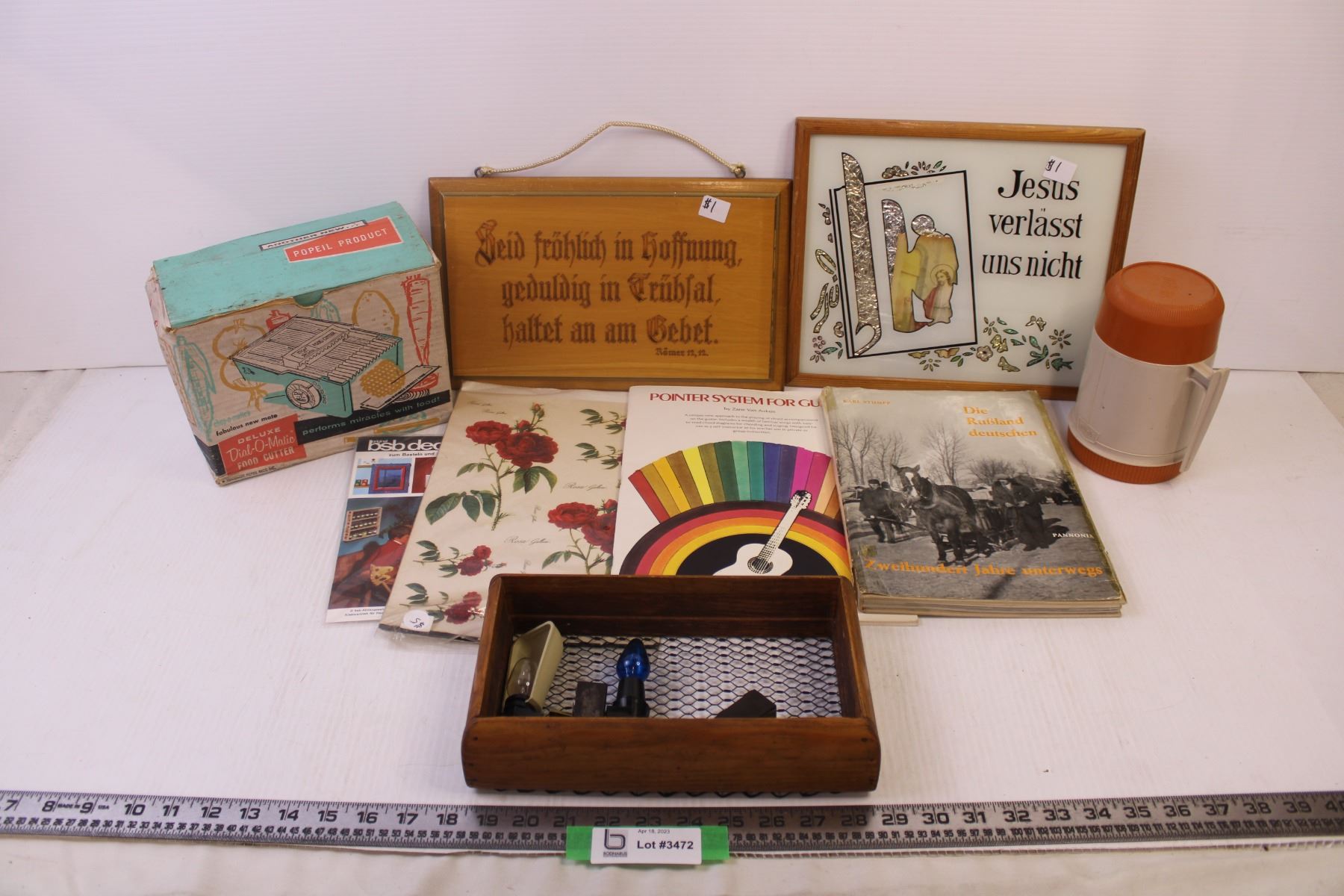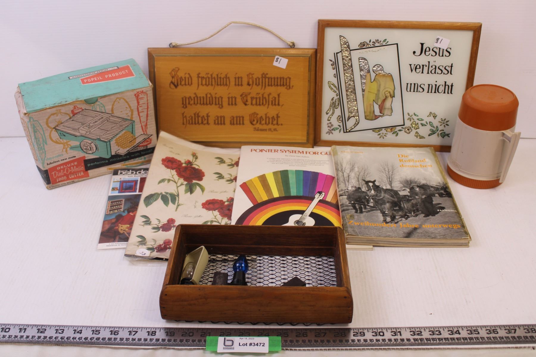 Wall pictures, Book, SM thermos, guitar book, food cutter, storage box and various nighlights, flowe