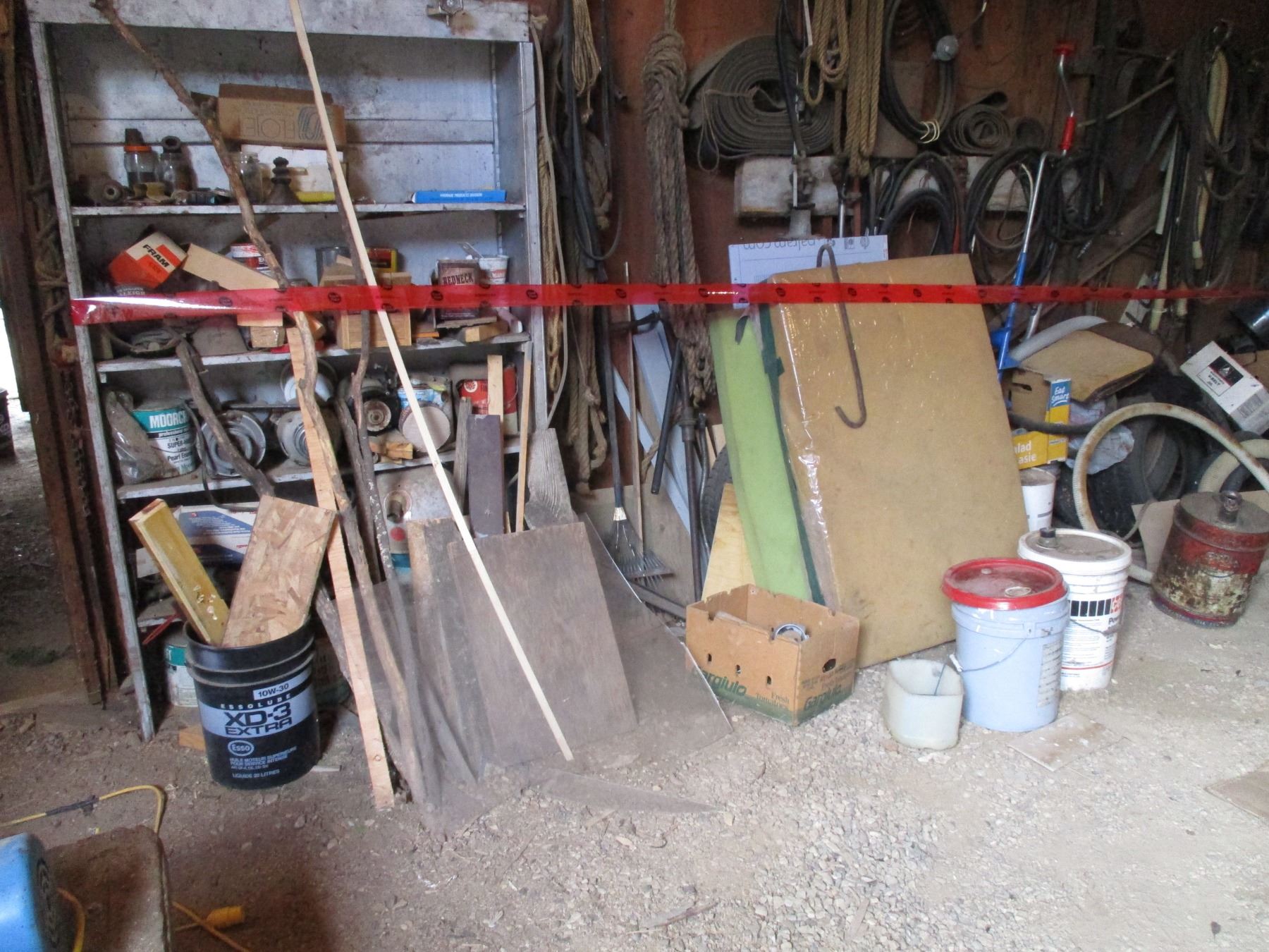 Wall with Contents Alternators, Combine Motor, Rad ,Tires, Rope, Shelf, Belting,
