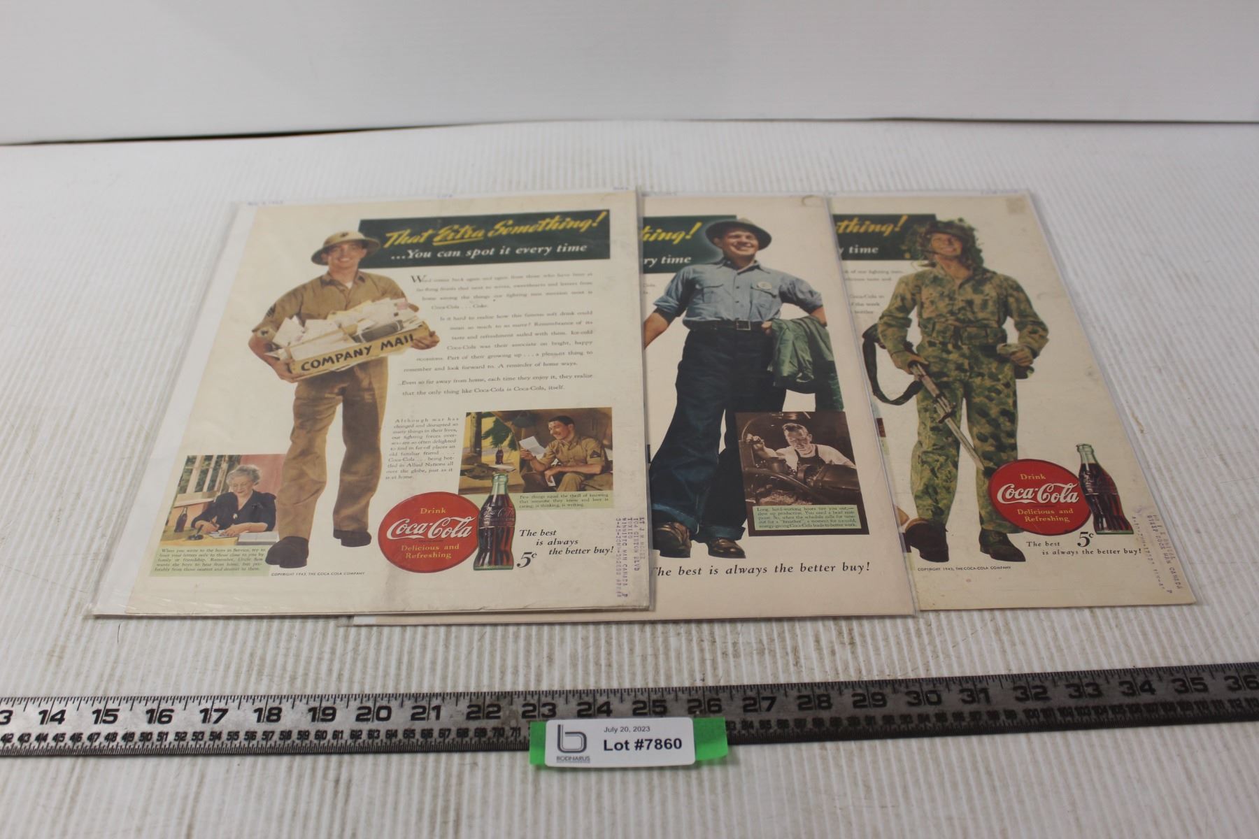 War Era Coca-Cola Advertisement (August 2 1943), War Era Coca-Cola Advertisement (August 30, 1943), Post-War Era Coca-Cola Advertisement (November 1947)