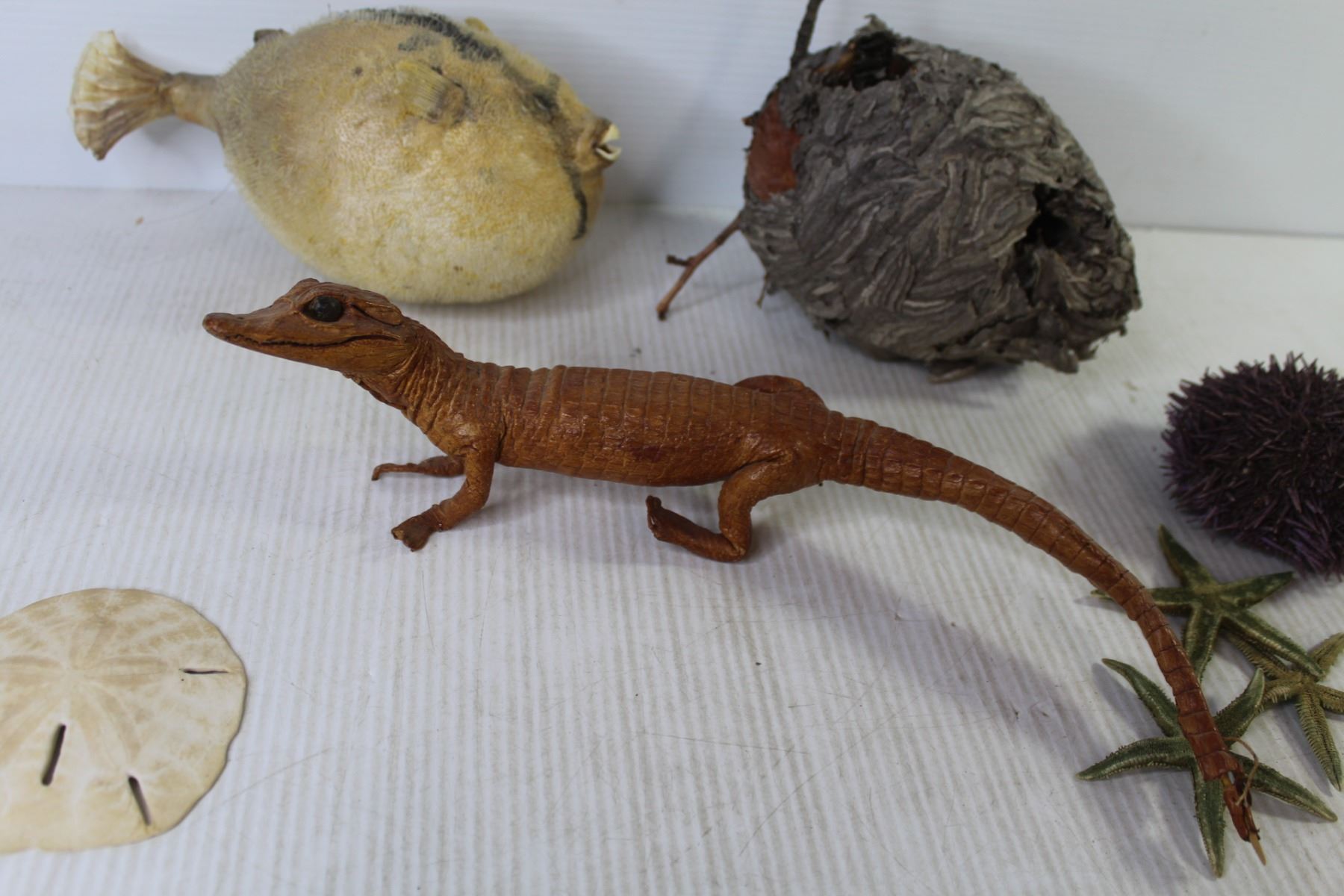 Wasp Nest - Puffer Fish - Stuffed Baby Alligator - Sea Shells - Star Fish