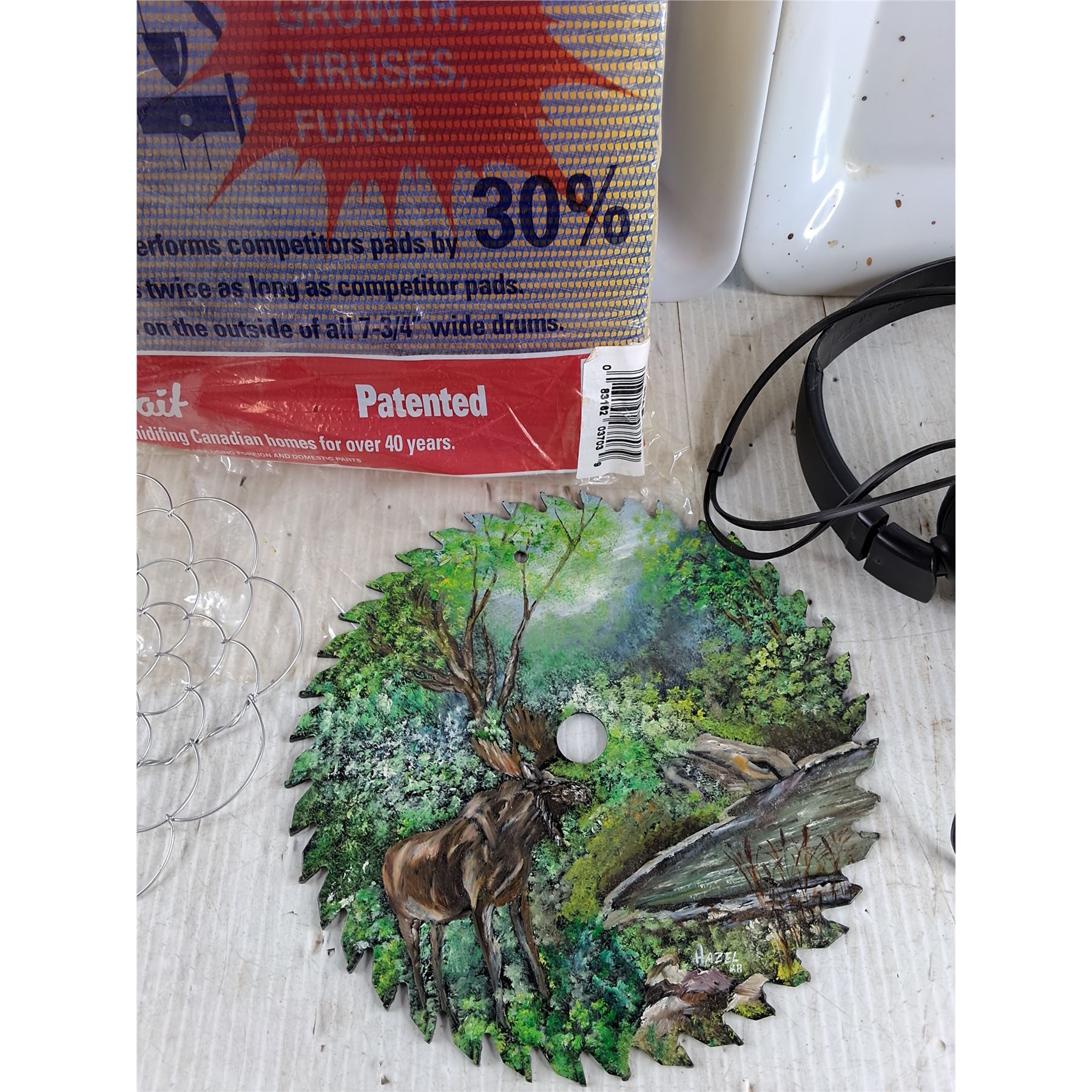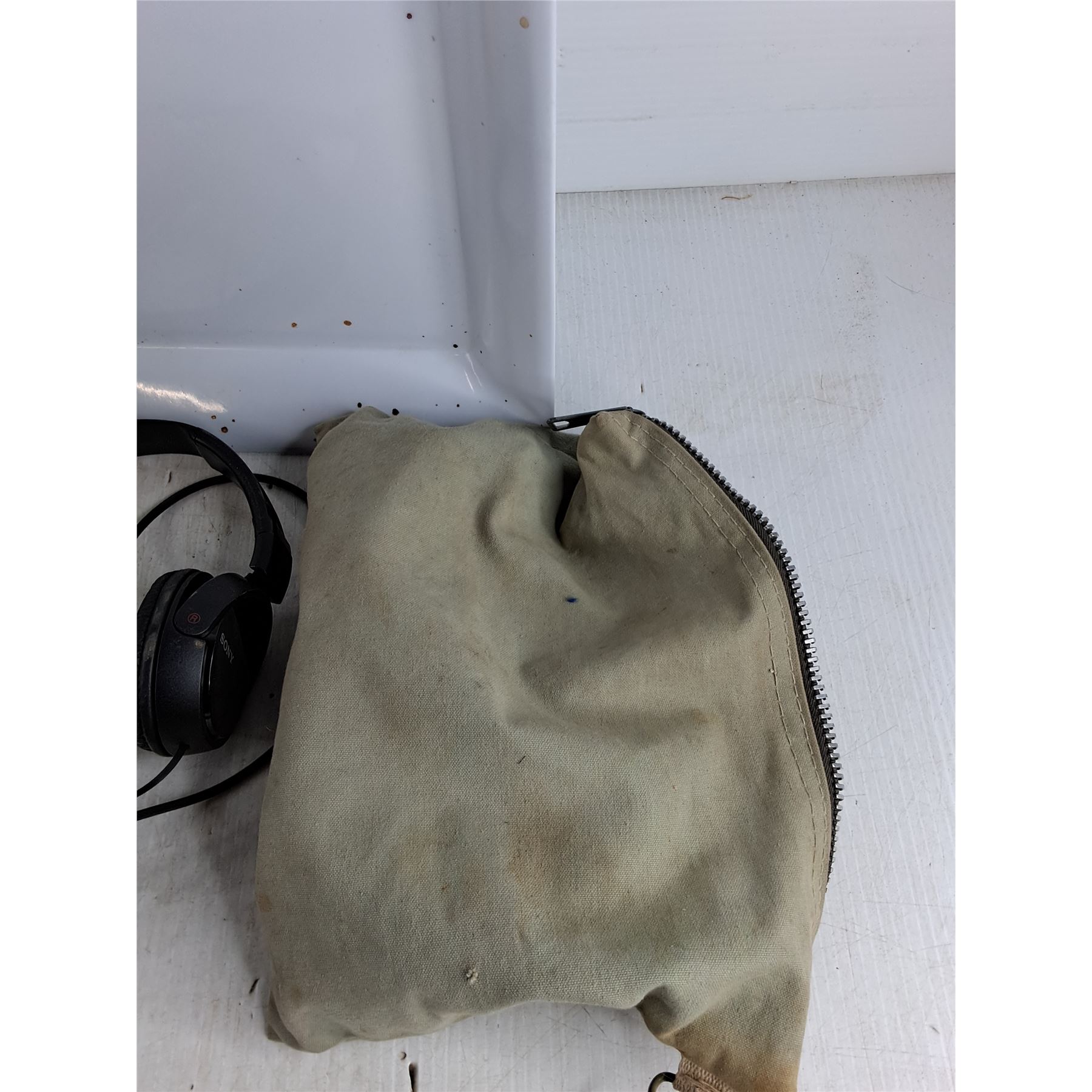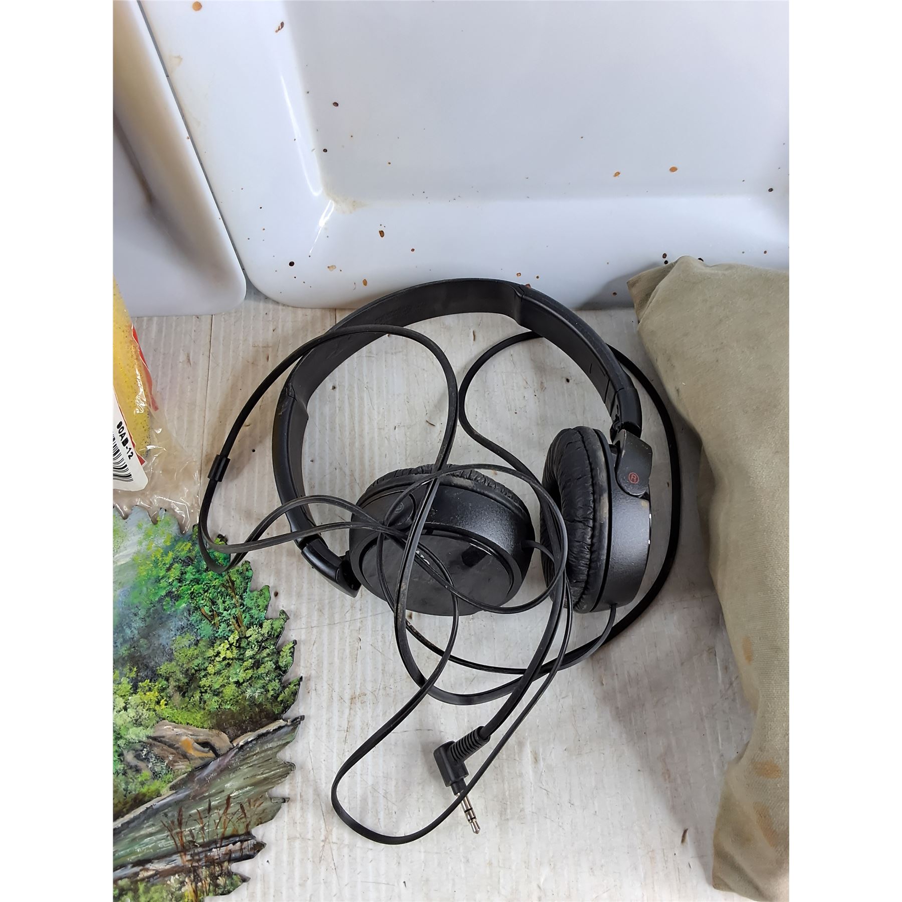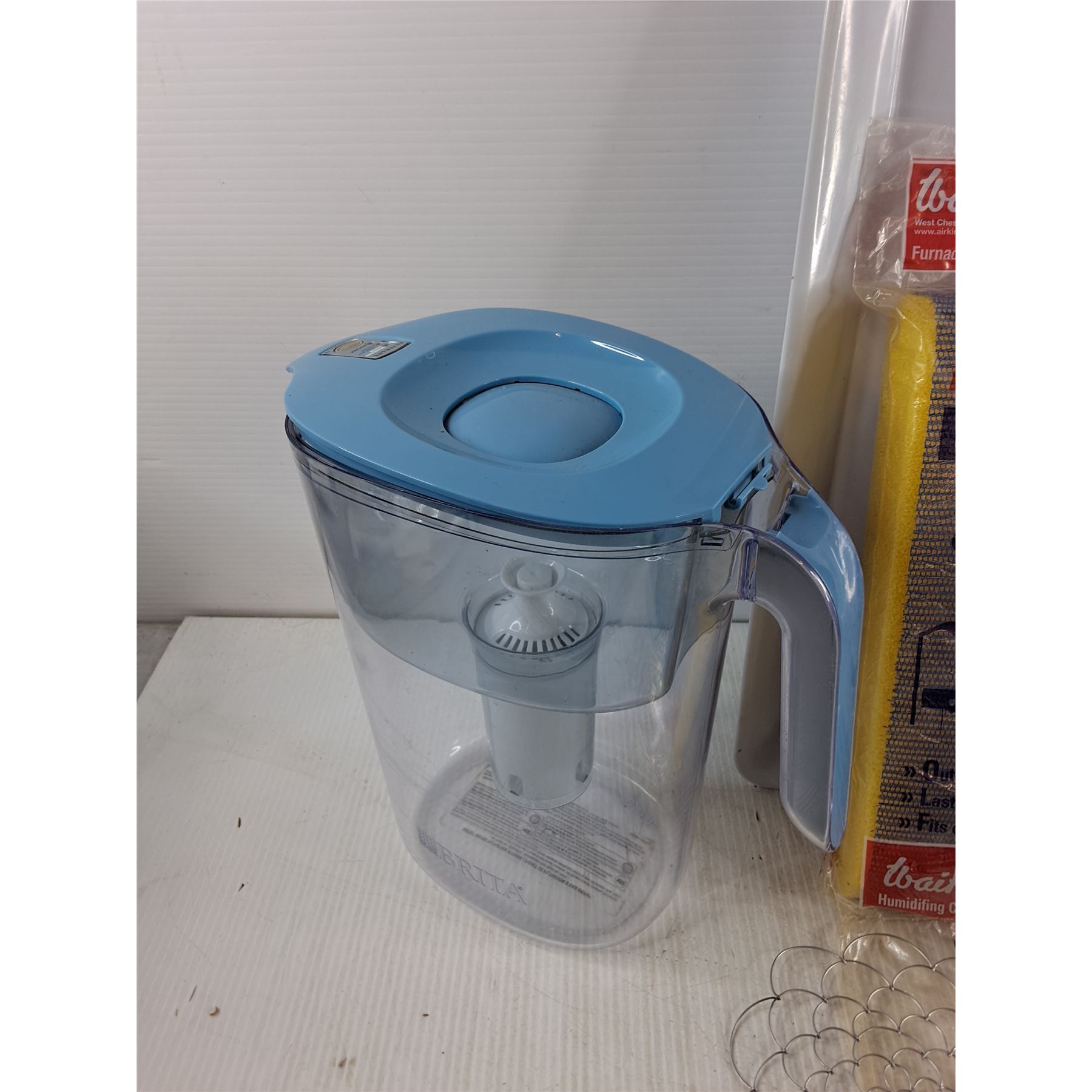 Water Pitcher, Evaporator Pad, Sony Headphones, (2) Plastic Trays, Circular Blade Art, Misc