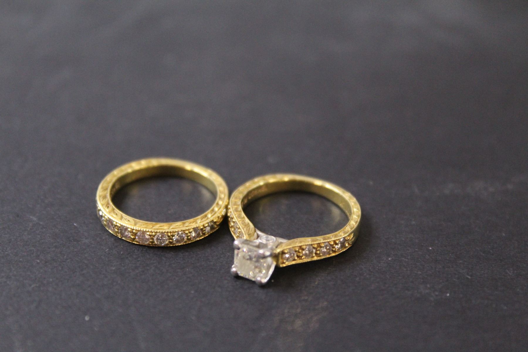^ Wedding Ring Set - 19K Gold - Size ? - Not Authenticated