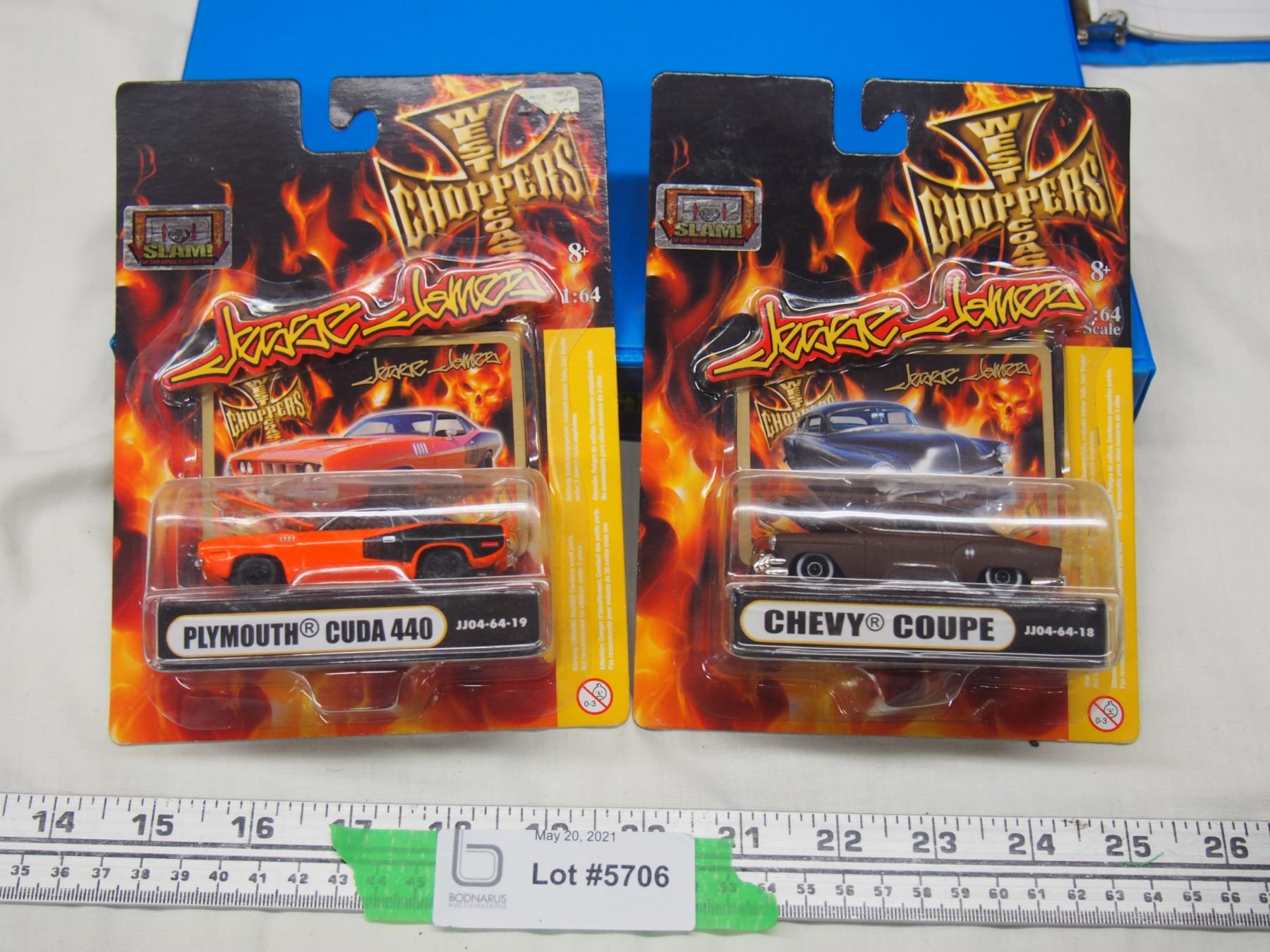 West Coast Choppers 1/64 Scale Plymouth Cuda 440, Chevy Coupe (NIB) (2)