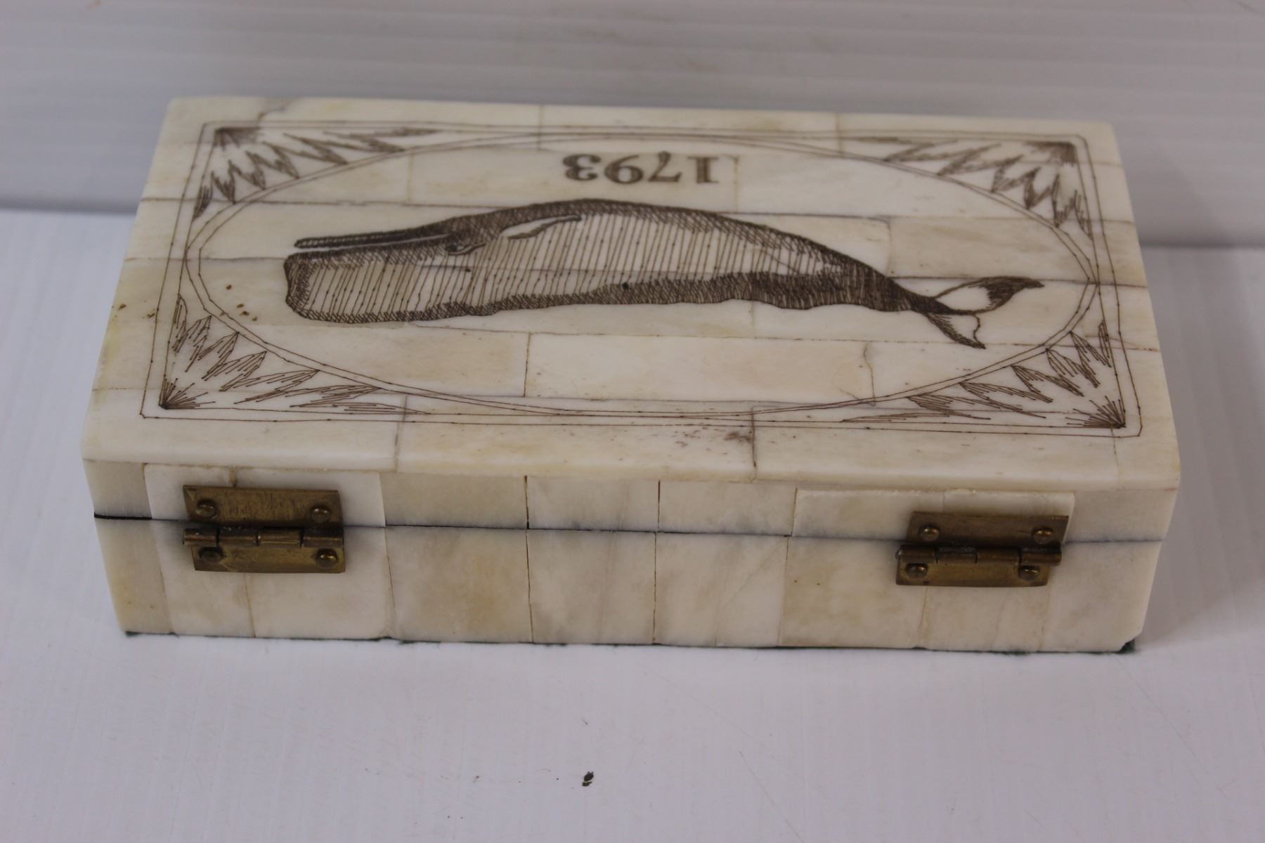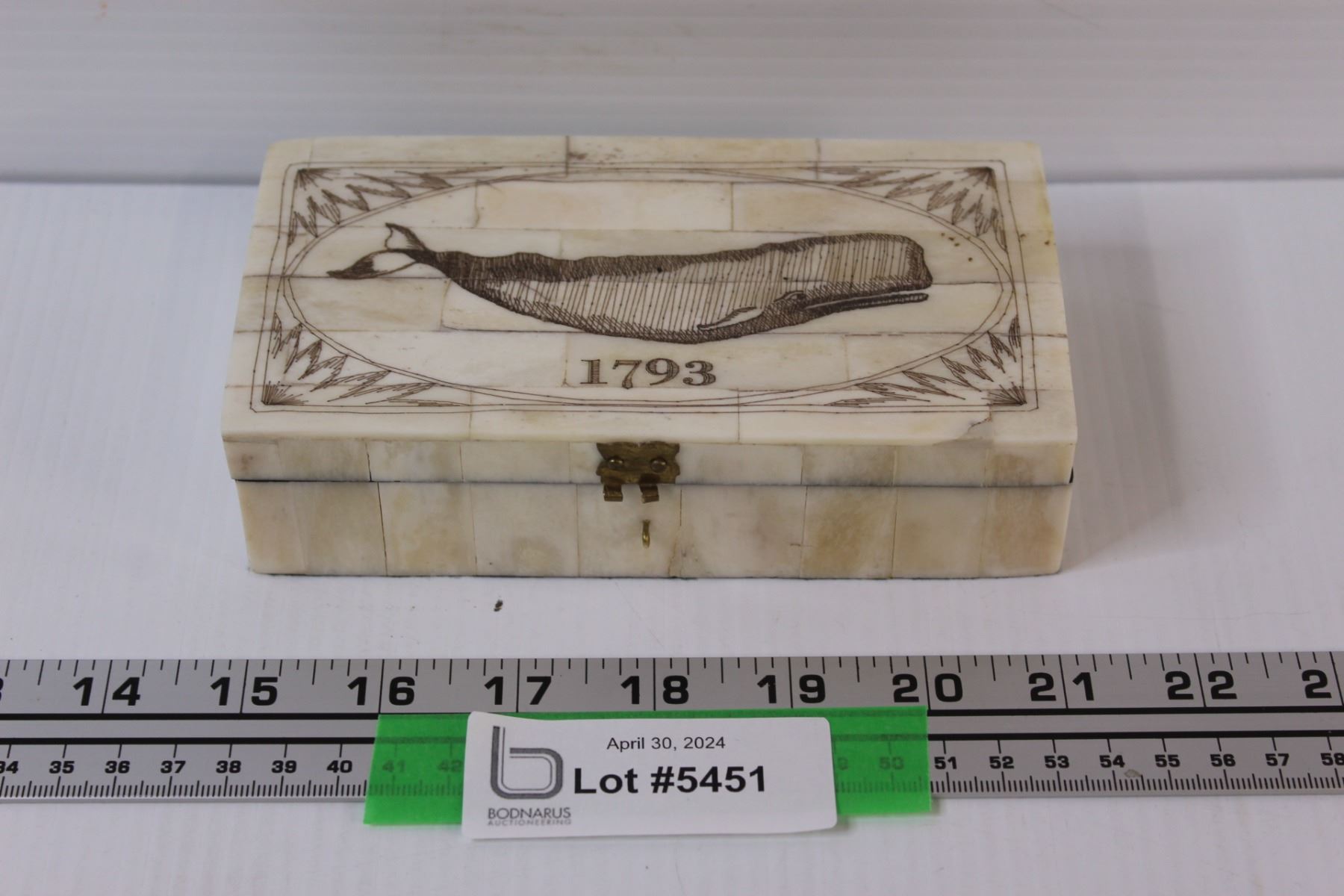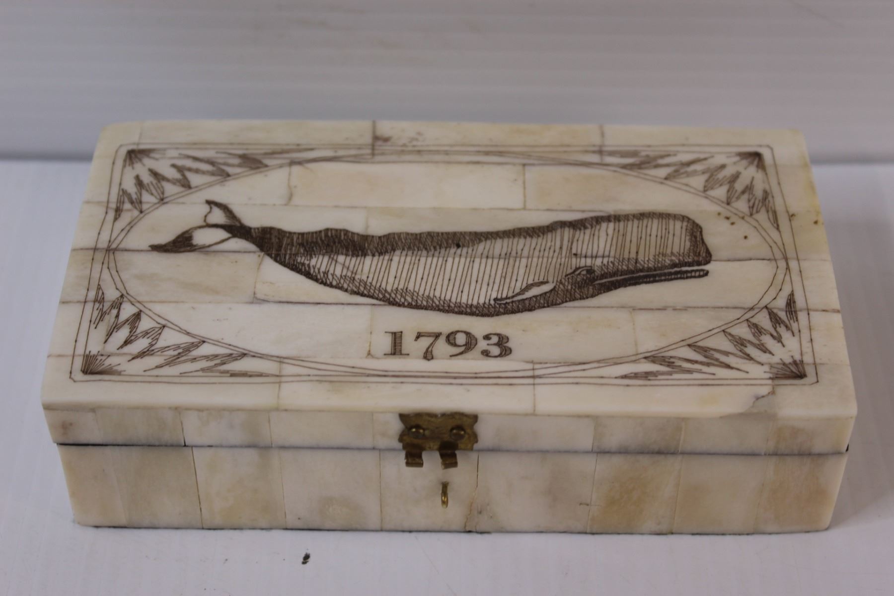 Whale Bone Replica 1793 Scrimshaw Reproduction Trinket / Jewelry Box