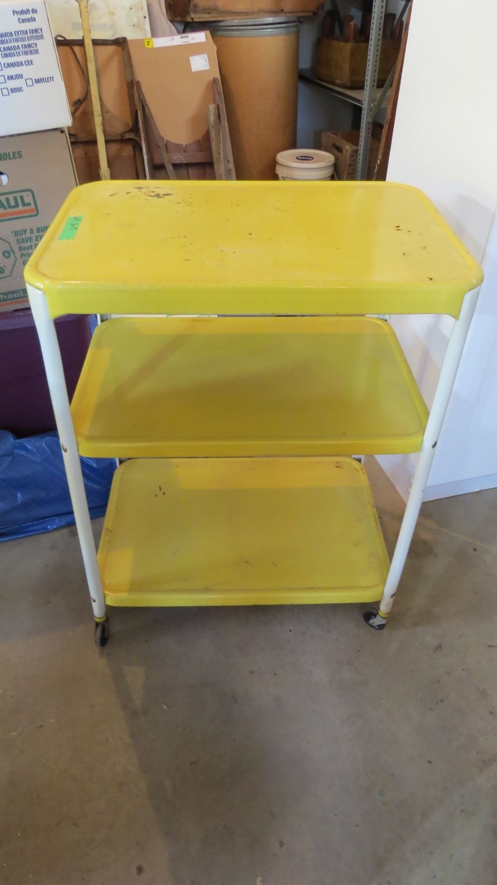 Wheeled metal cart - 24x17x30 (paint peeling on top)