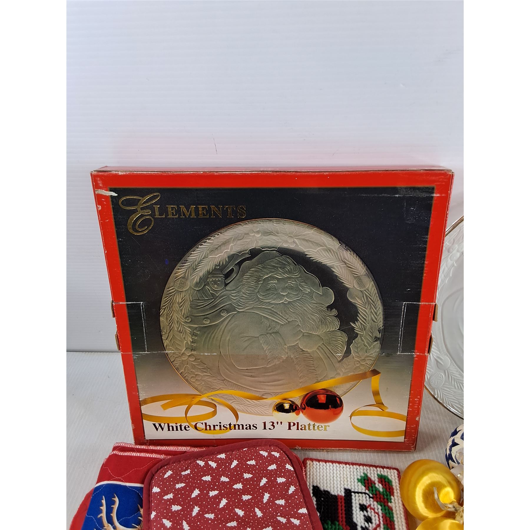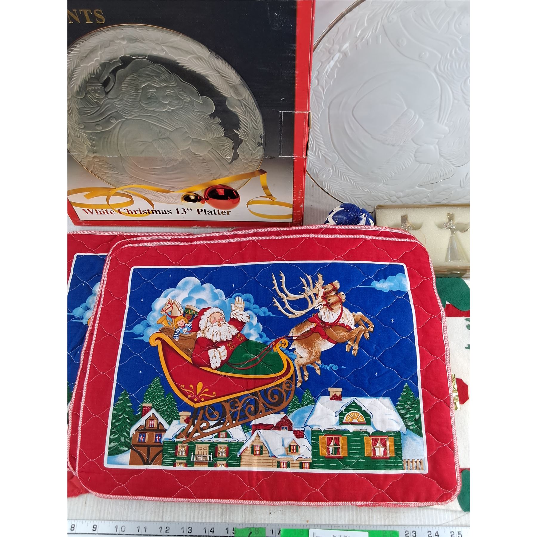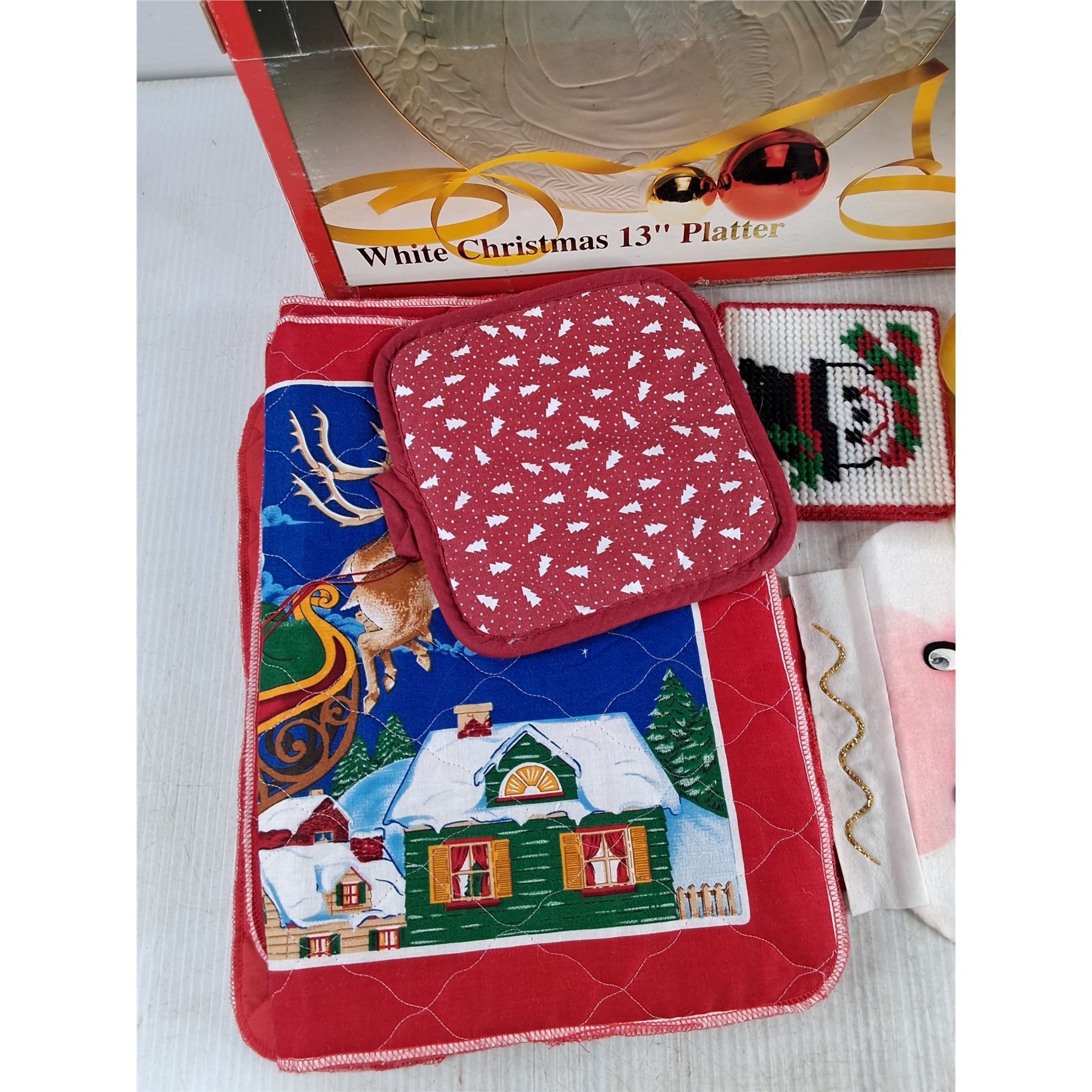 White Christmas 13" Platter, Christmas Tree Ornaments, Oven Mitten, Embroidery Coasters, Mats
