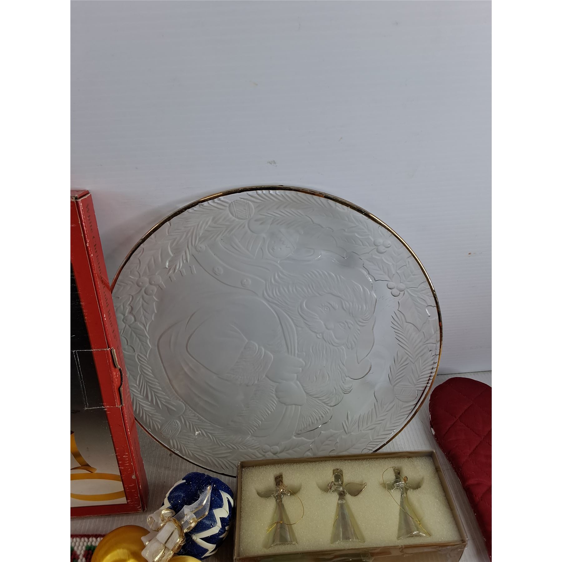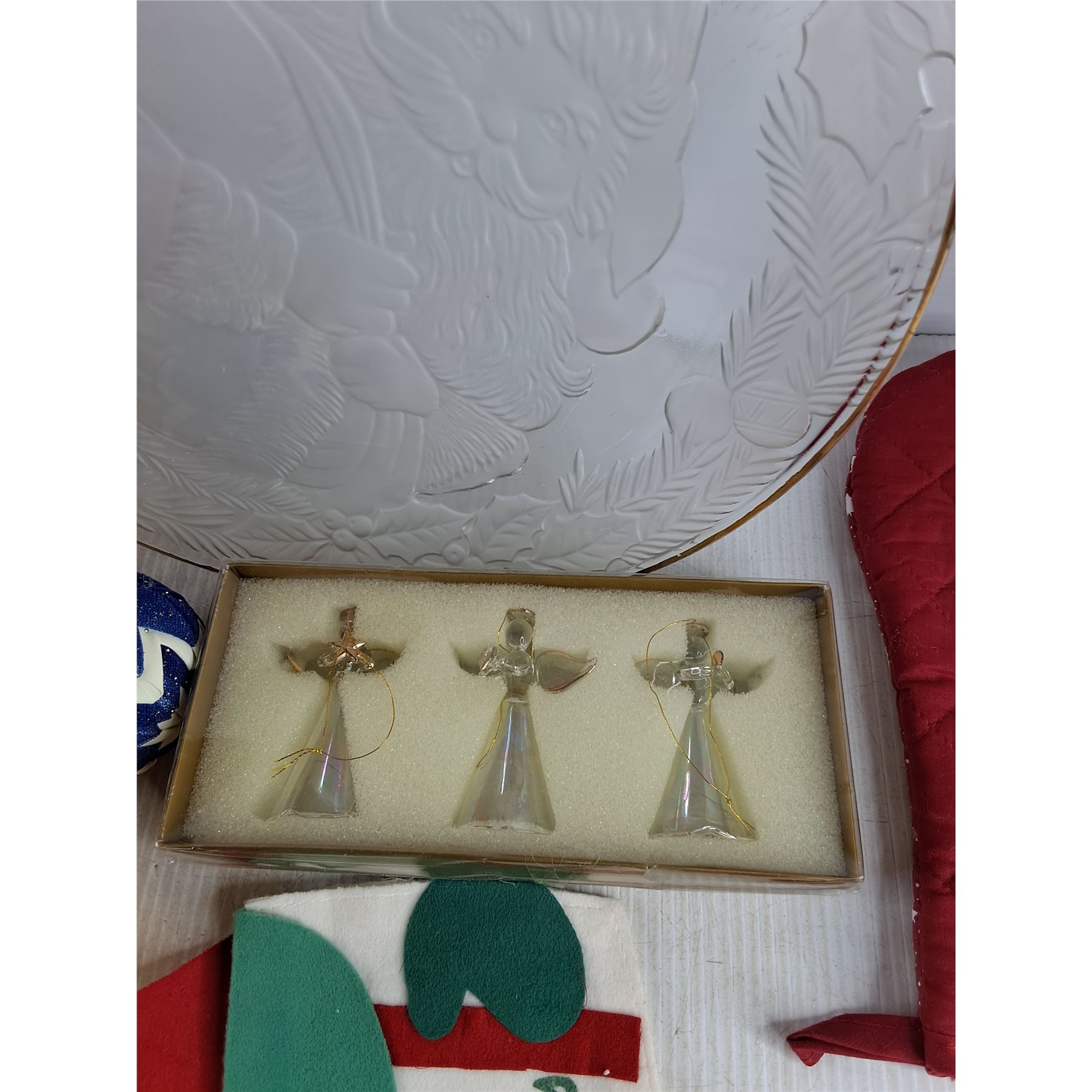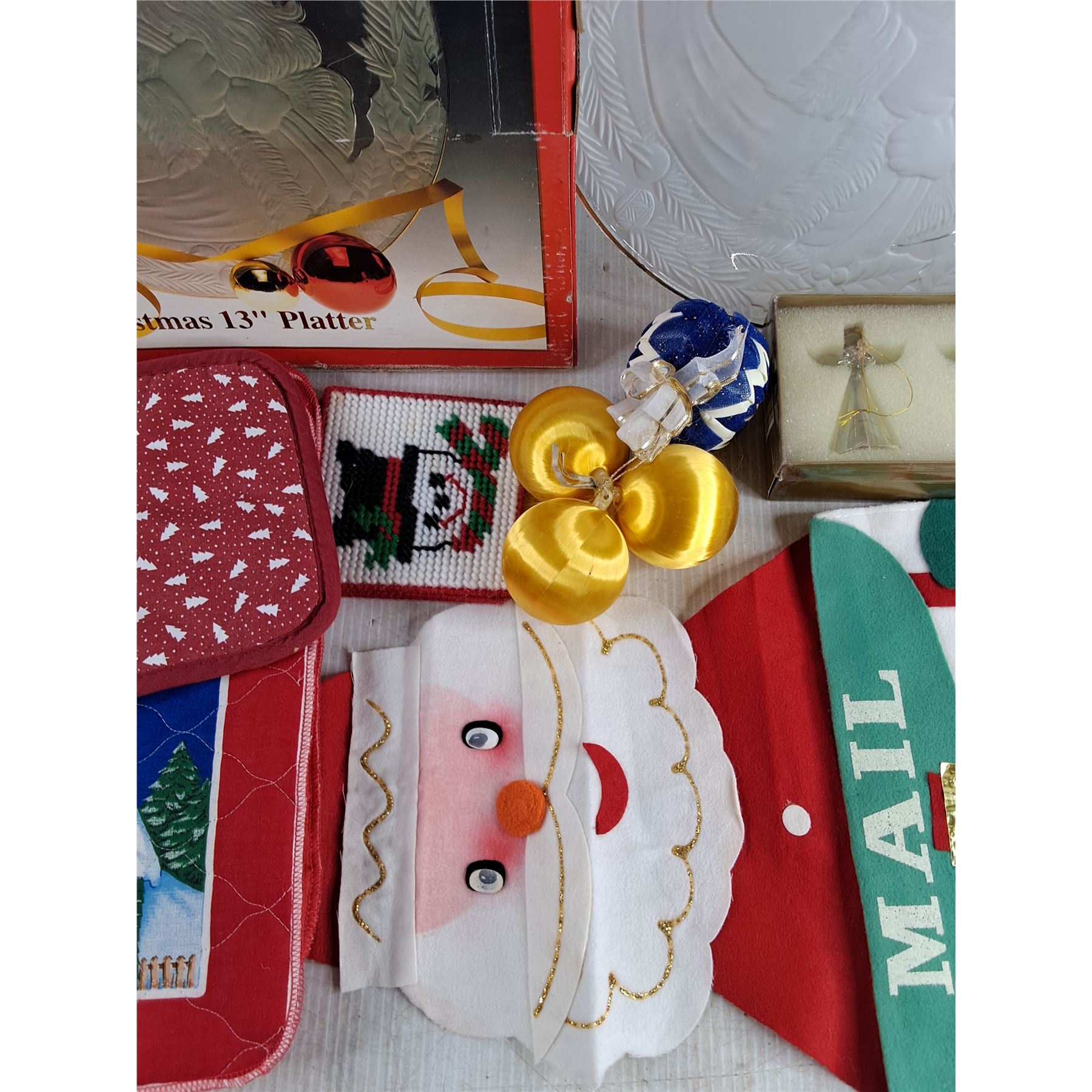 White Christmas 13" Platter, Christmas Tree Ornaments, Oven Mitten, Embroidery Coasters, Mats
