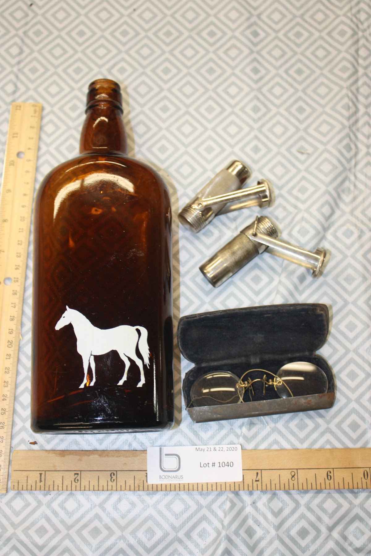 White Horse Whiskey Bottle, Glasses, and Matches Tins