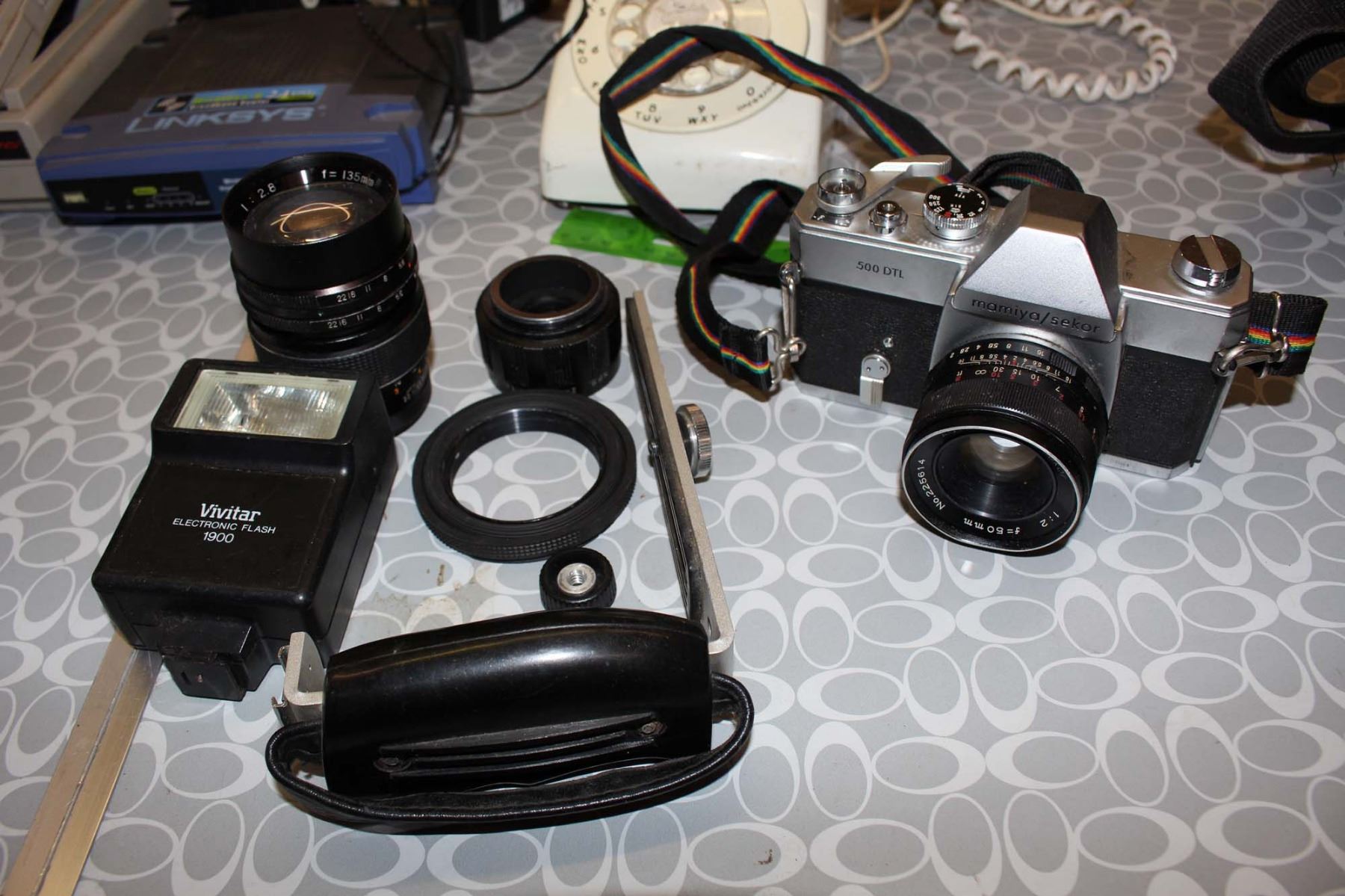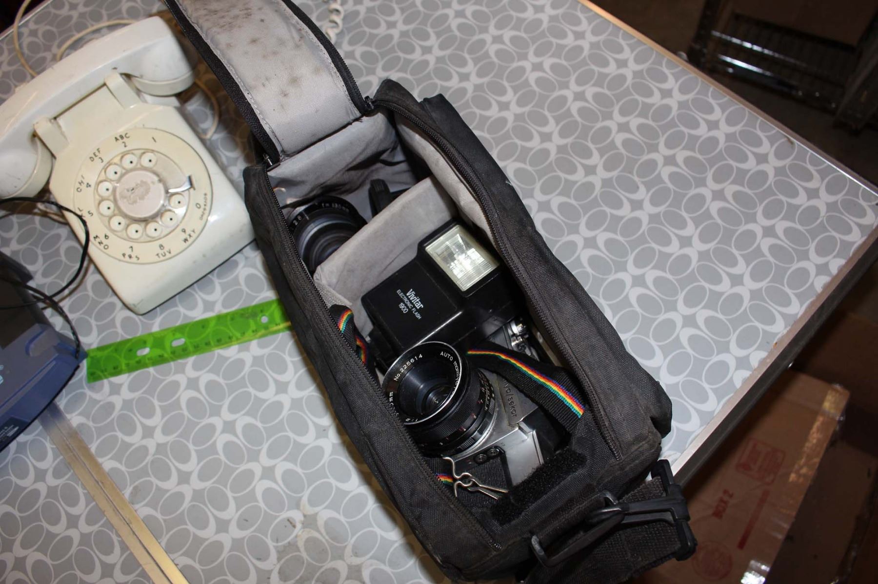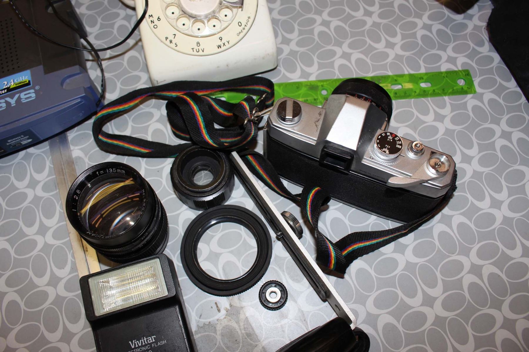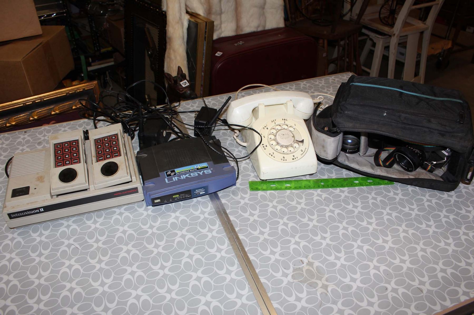 White Vintage Telephone, Mamiya/Sekor Camera w/Accessories, Intellivision II, Etc