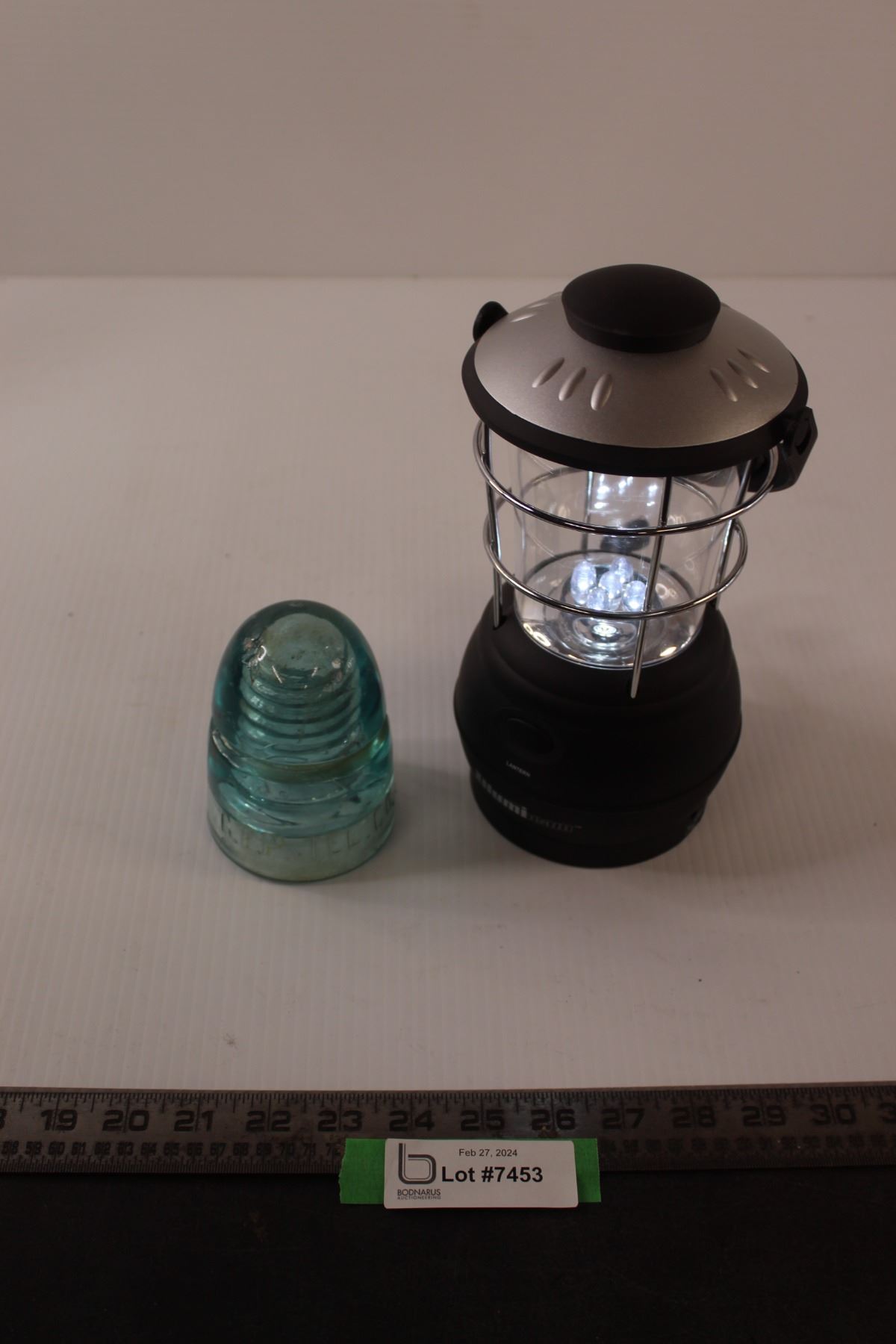 Wind up Electric Lantern & Blue G.T.P TEL CO Insulator