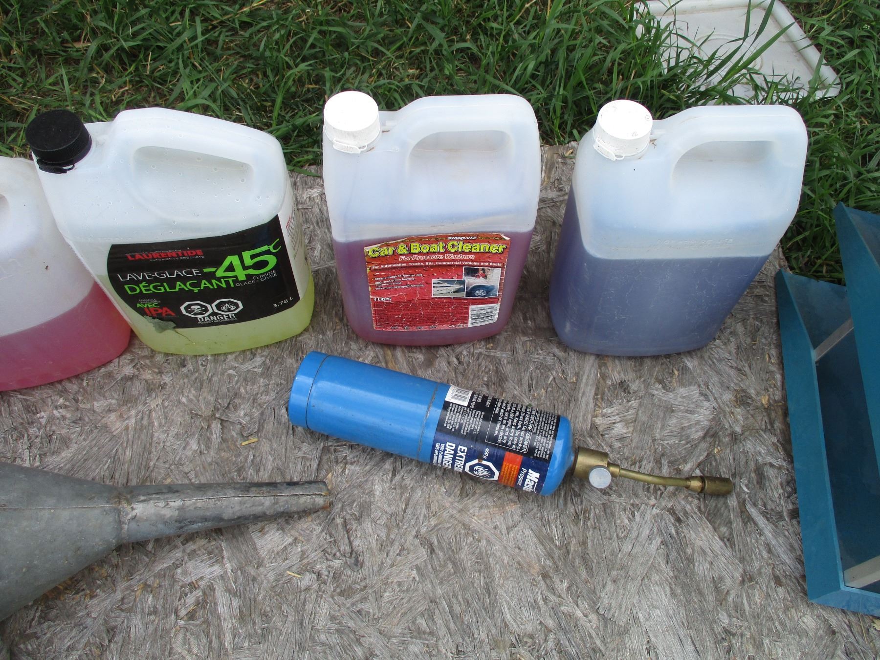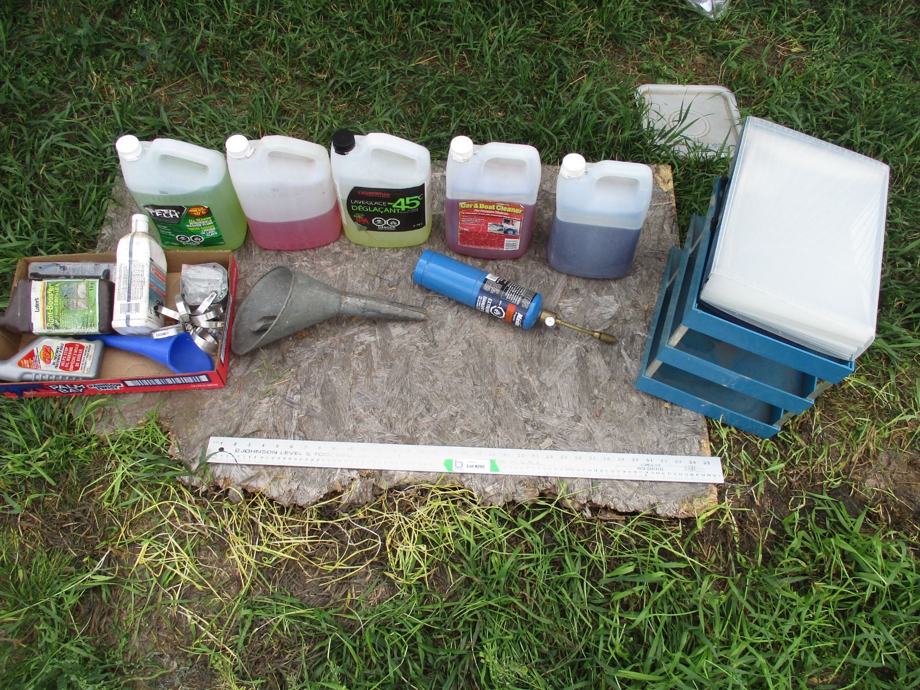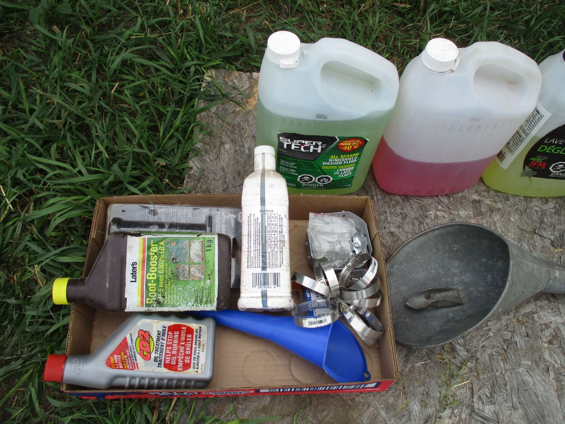 Windshield Washer Fluid, Organizer, Propane Tank, Hose Clamps, Funnel, Misc.