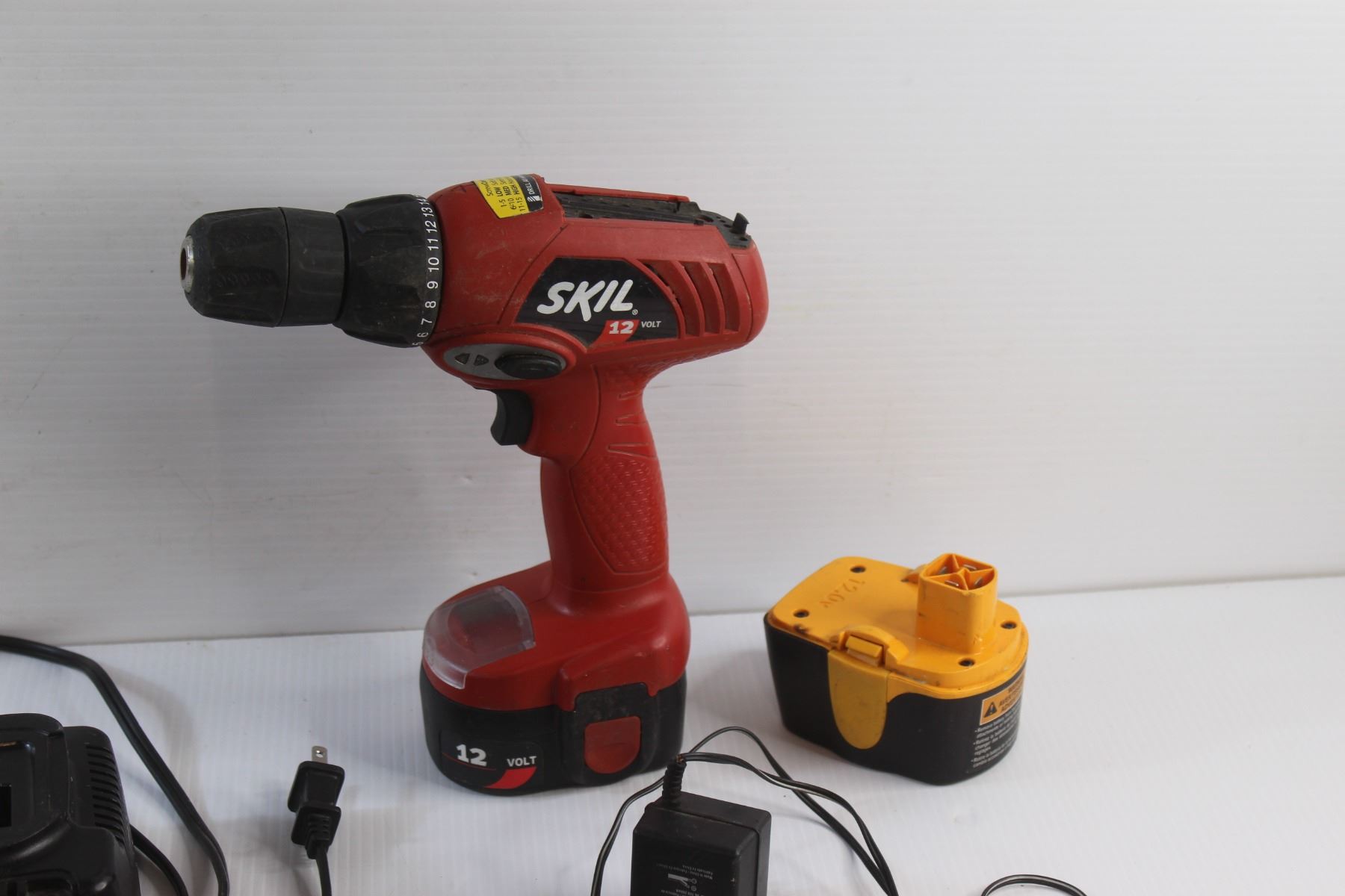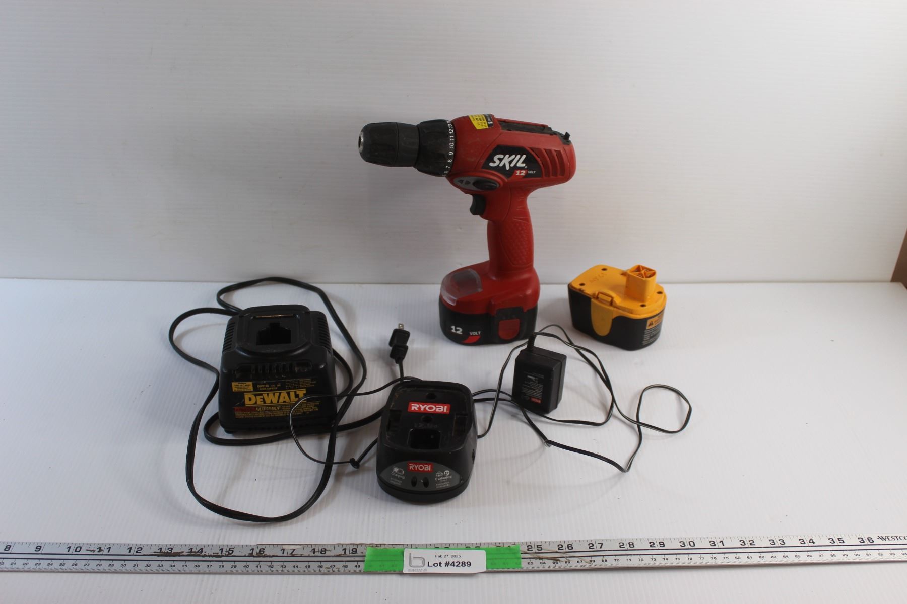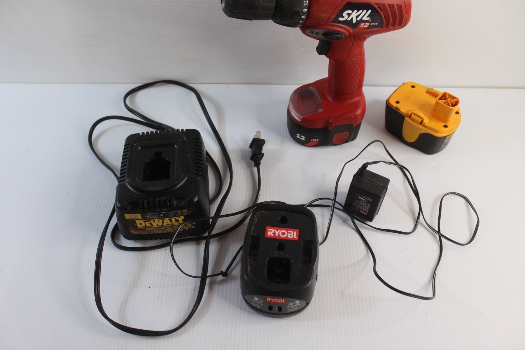Wireless Skil 12V Drill, Battery, DeWalt & Ryobi Battery Chargers - As Is