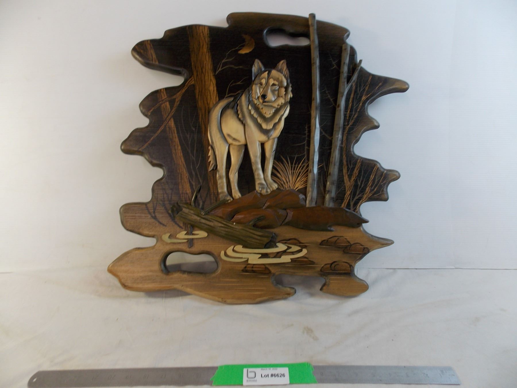 Wolf wooden hand-made wall hanger - 23x23