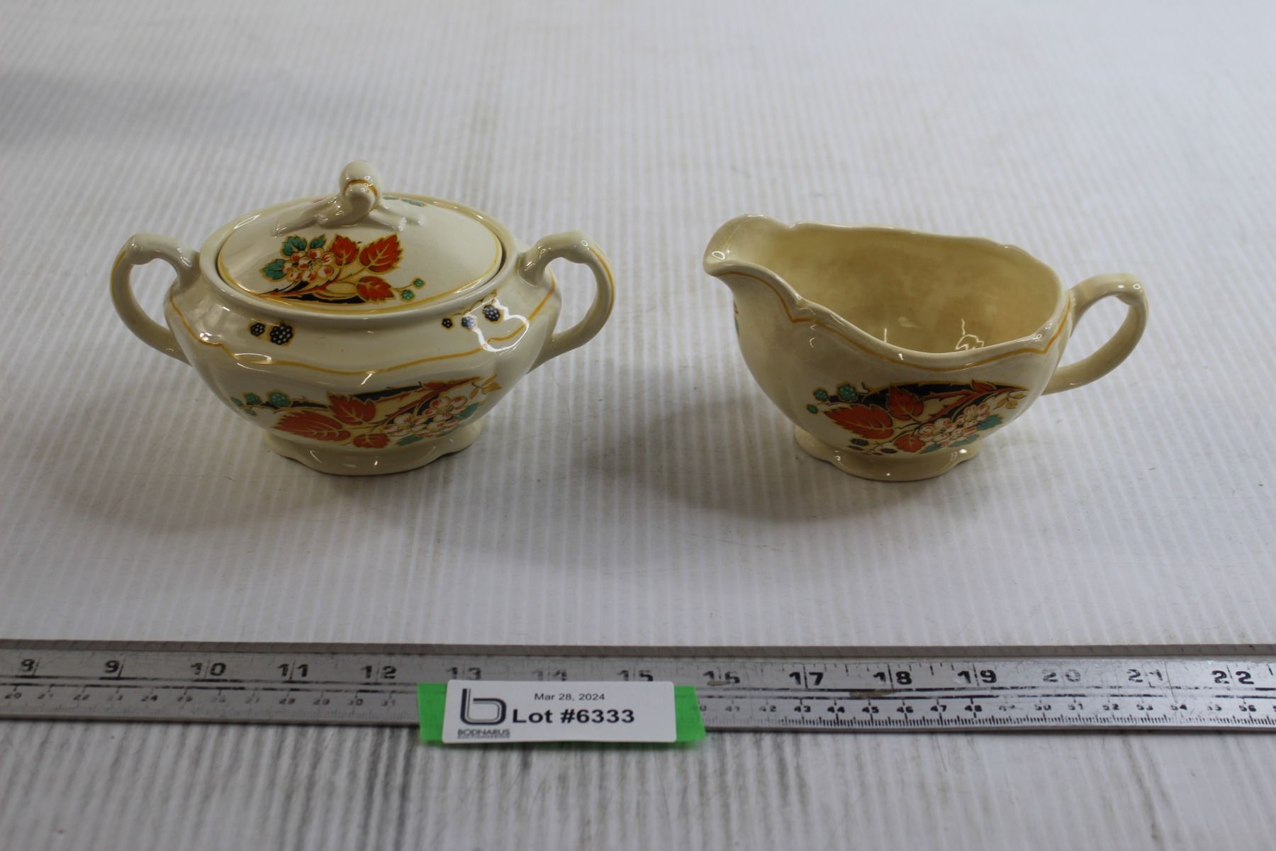 Wood's Ivory Ware England Art Deco Cream and Sugar Bowl - Consignor Says No Chips