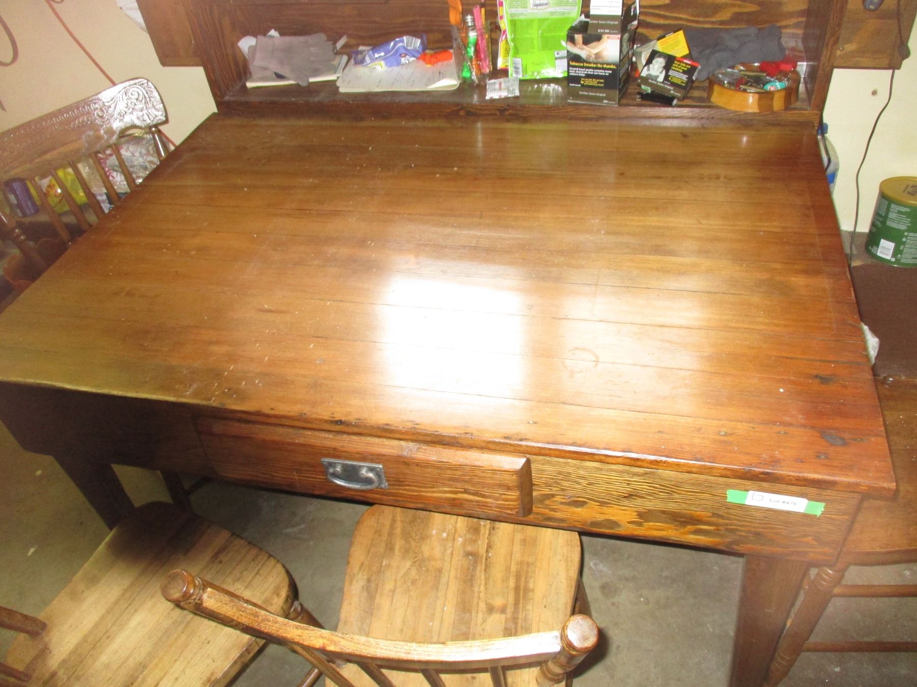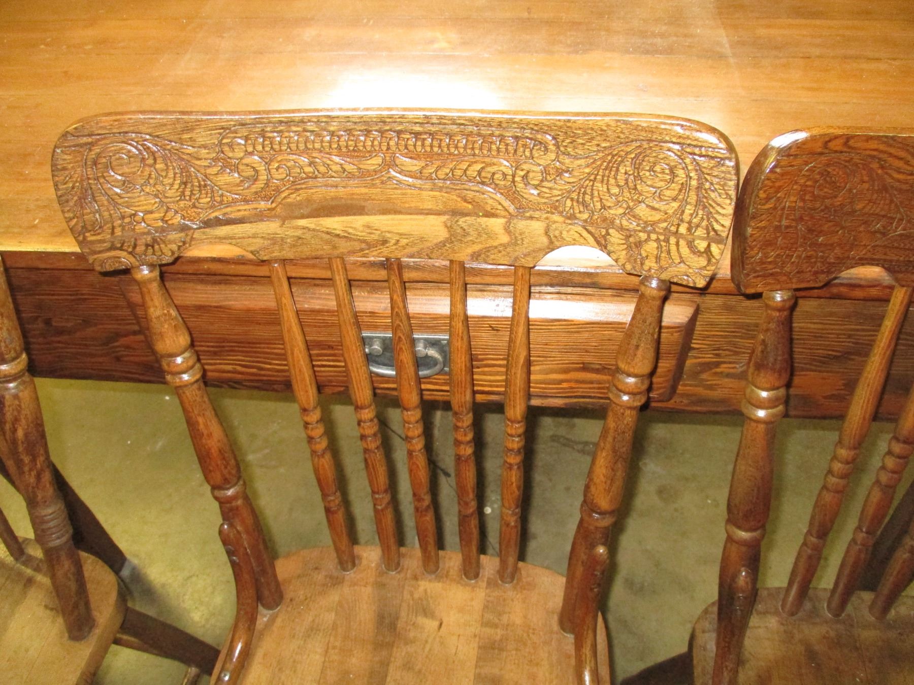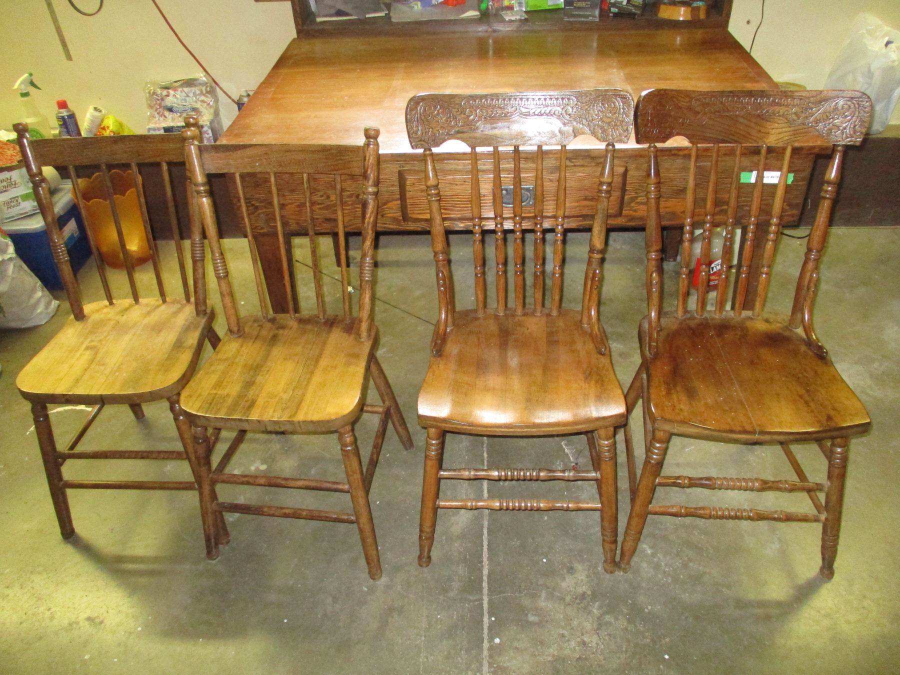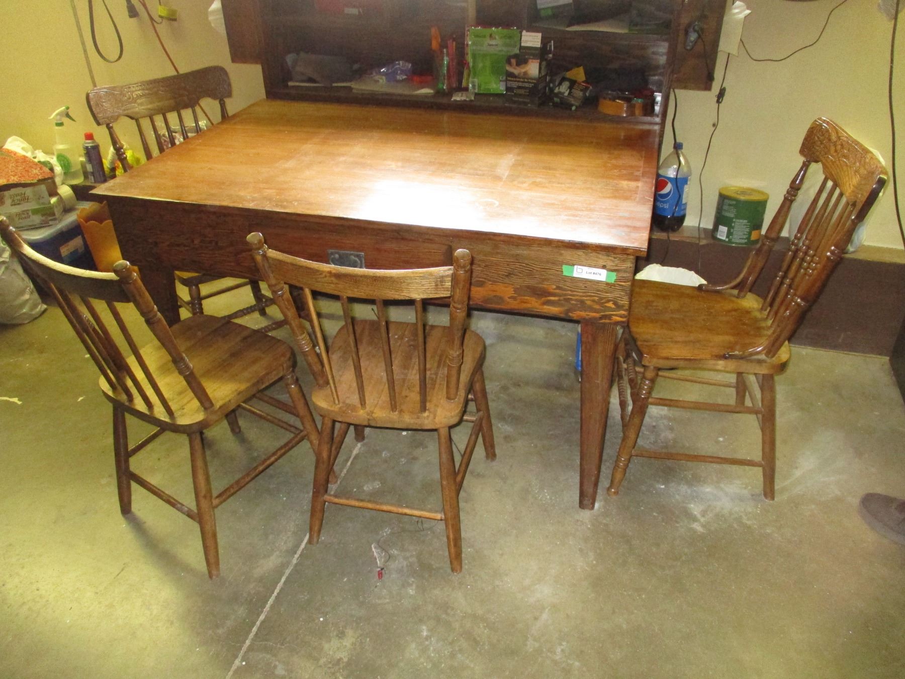 Wood table with 4 chairs - 34x51x30 (hand made press back 2 not matching)