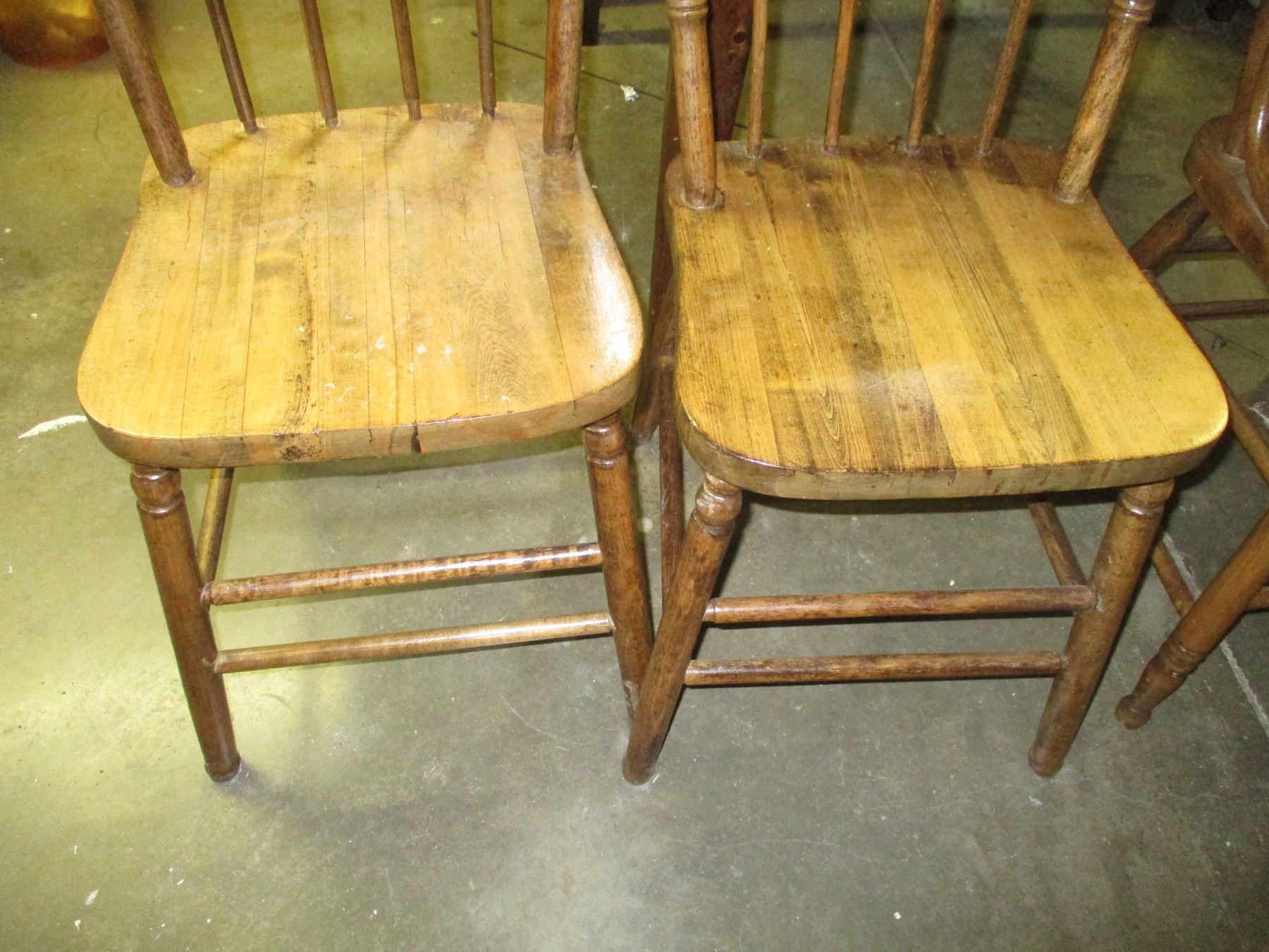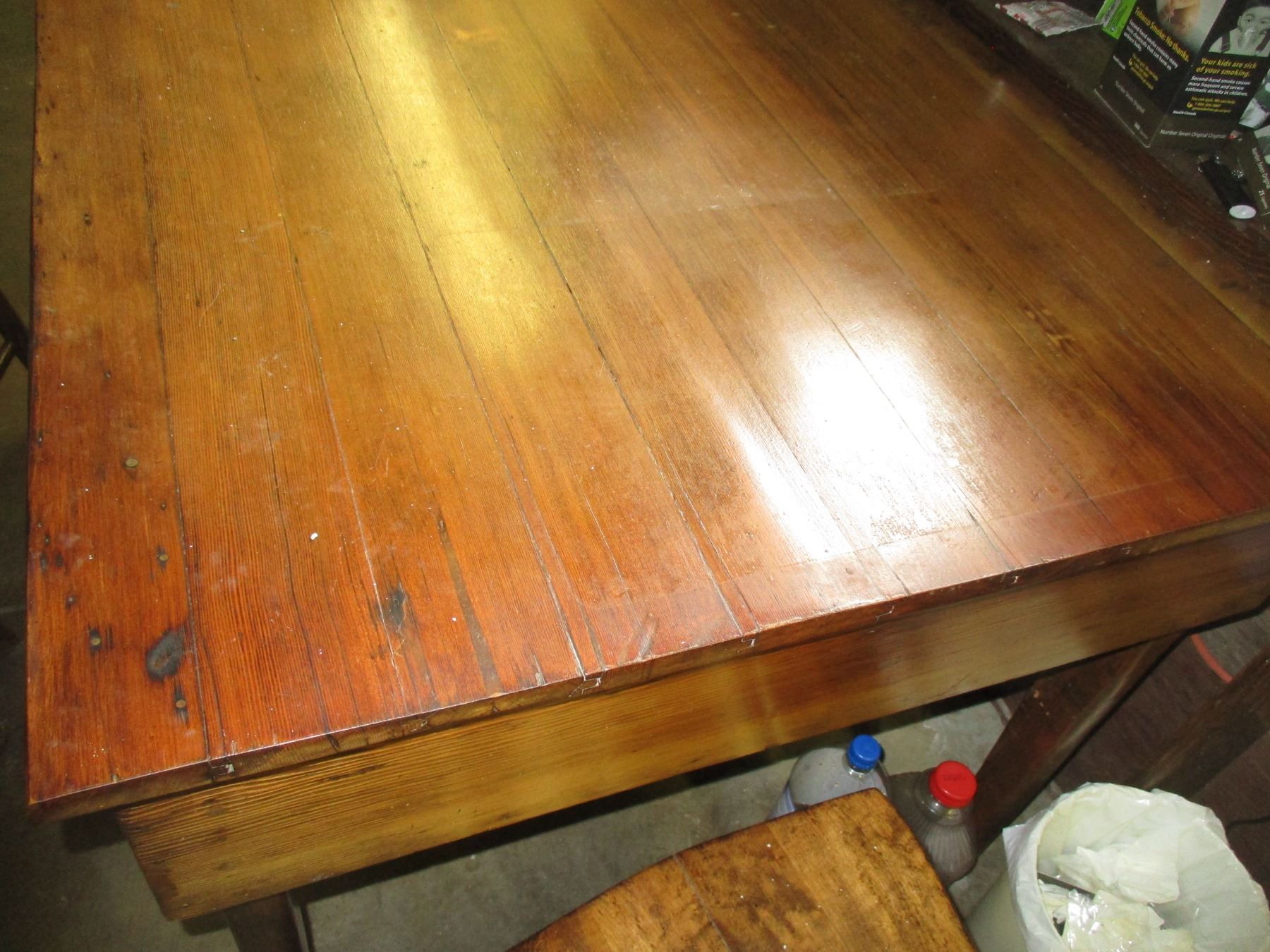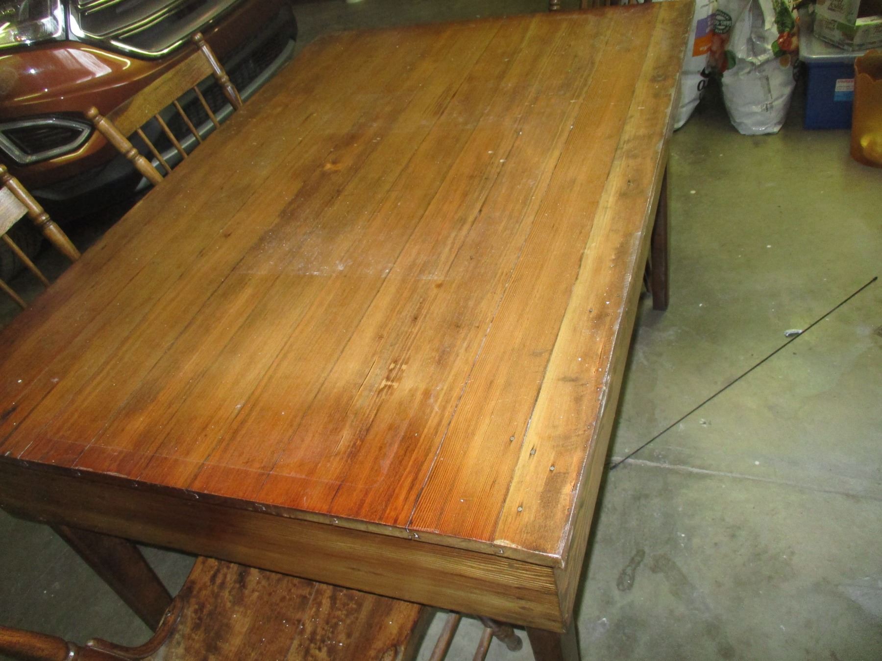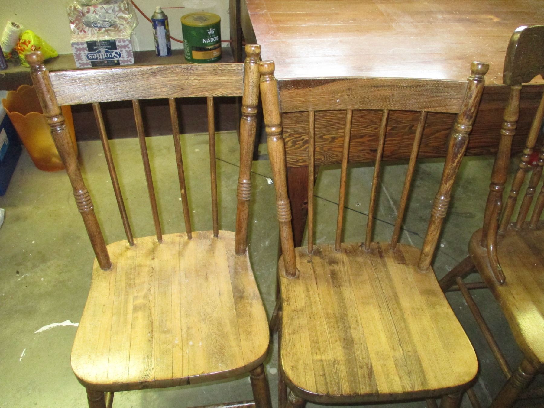 Wood table with 4 chairs - 34x51x30 (hand made press back 2 not matching)