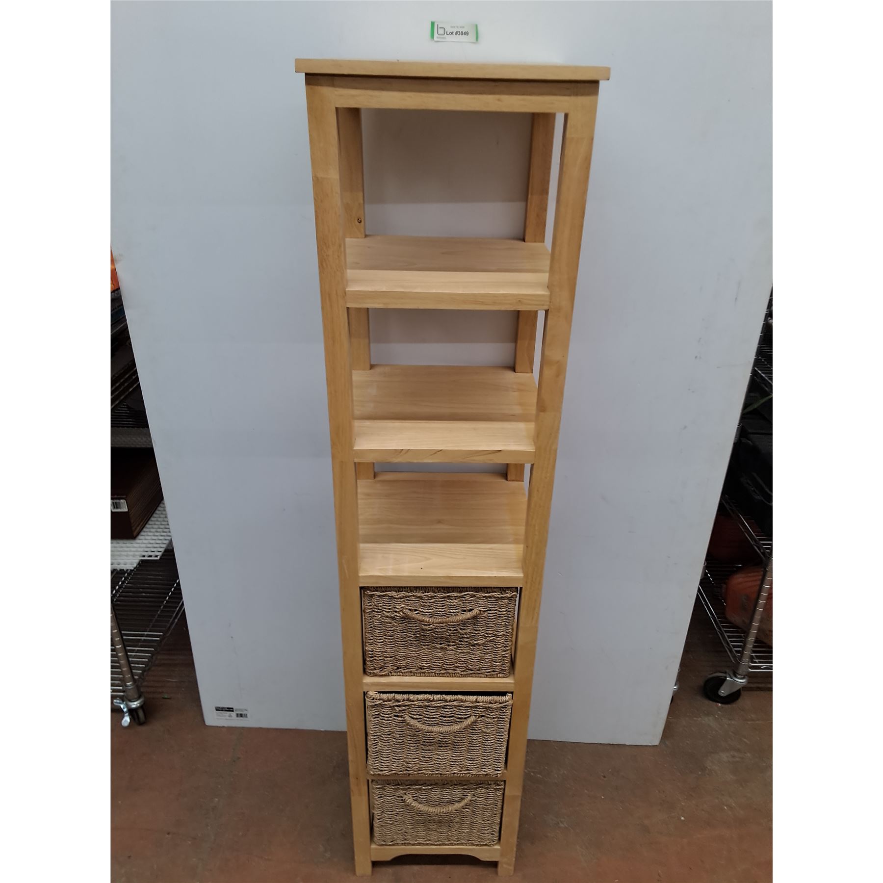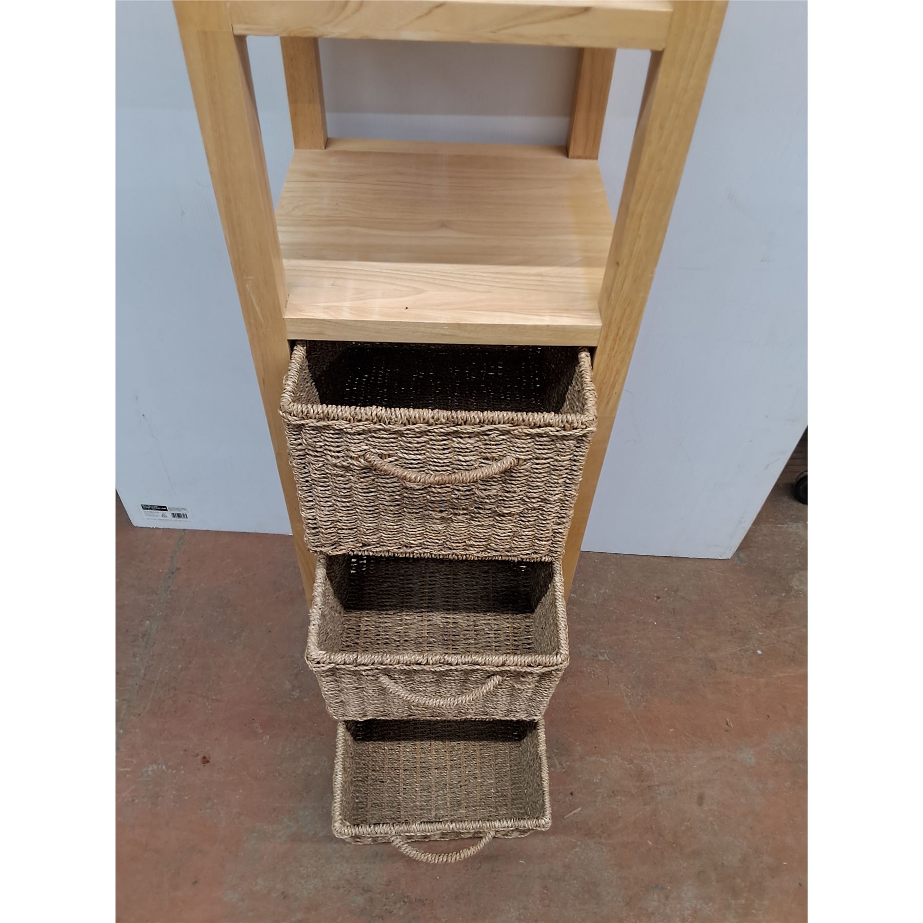 * Wooden 6-Tier Wicker Basket Shelf with 3 Wicker Baskets - 63  x 14  x 14.5  - Pickup Only