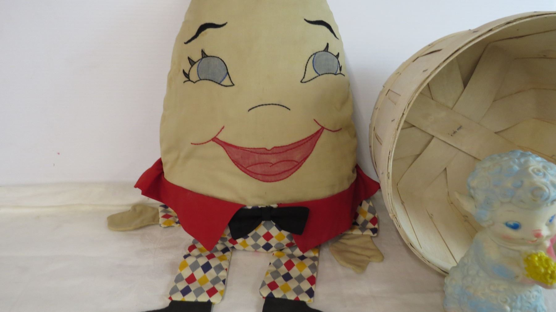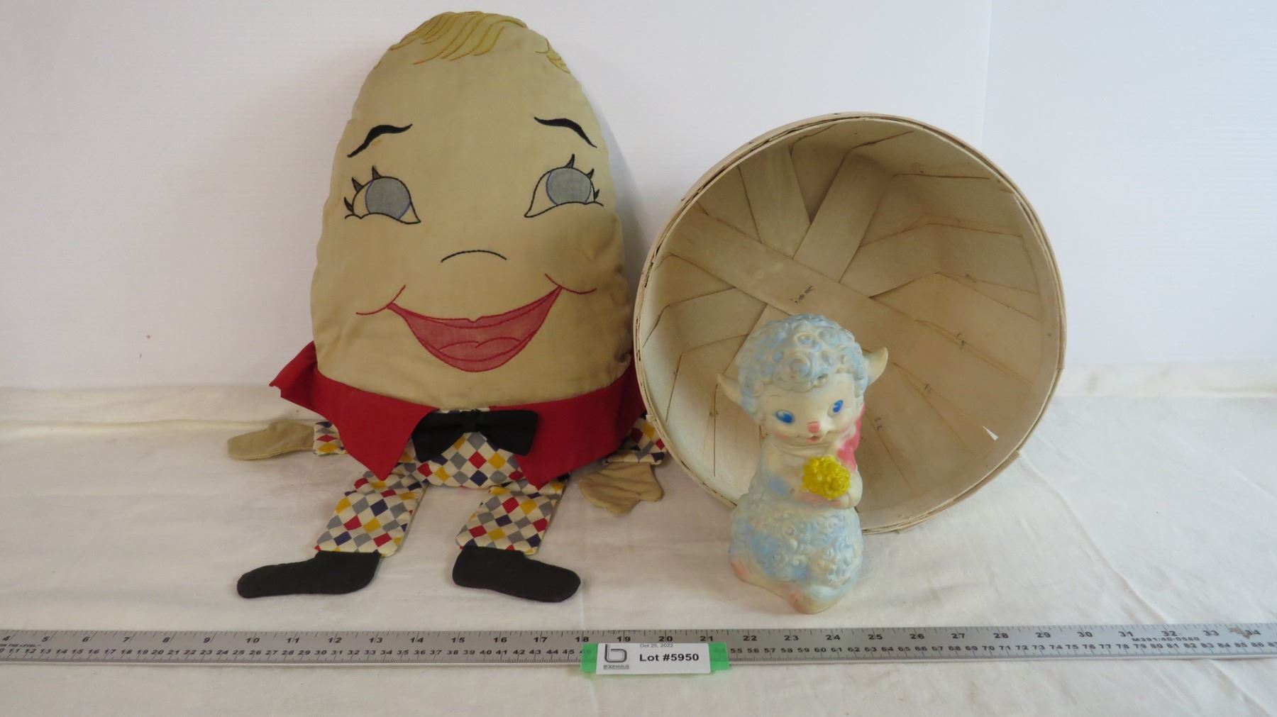 Wooden Basket - Squeaky Toy - Humpty Dumpty Stuffed Toy