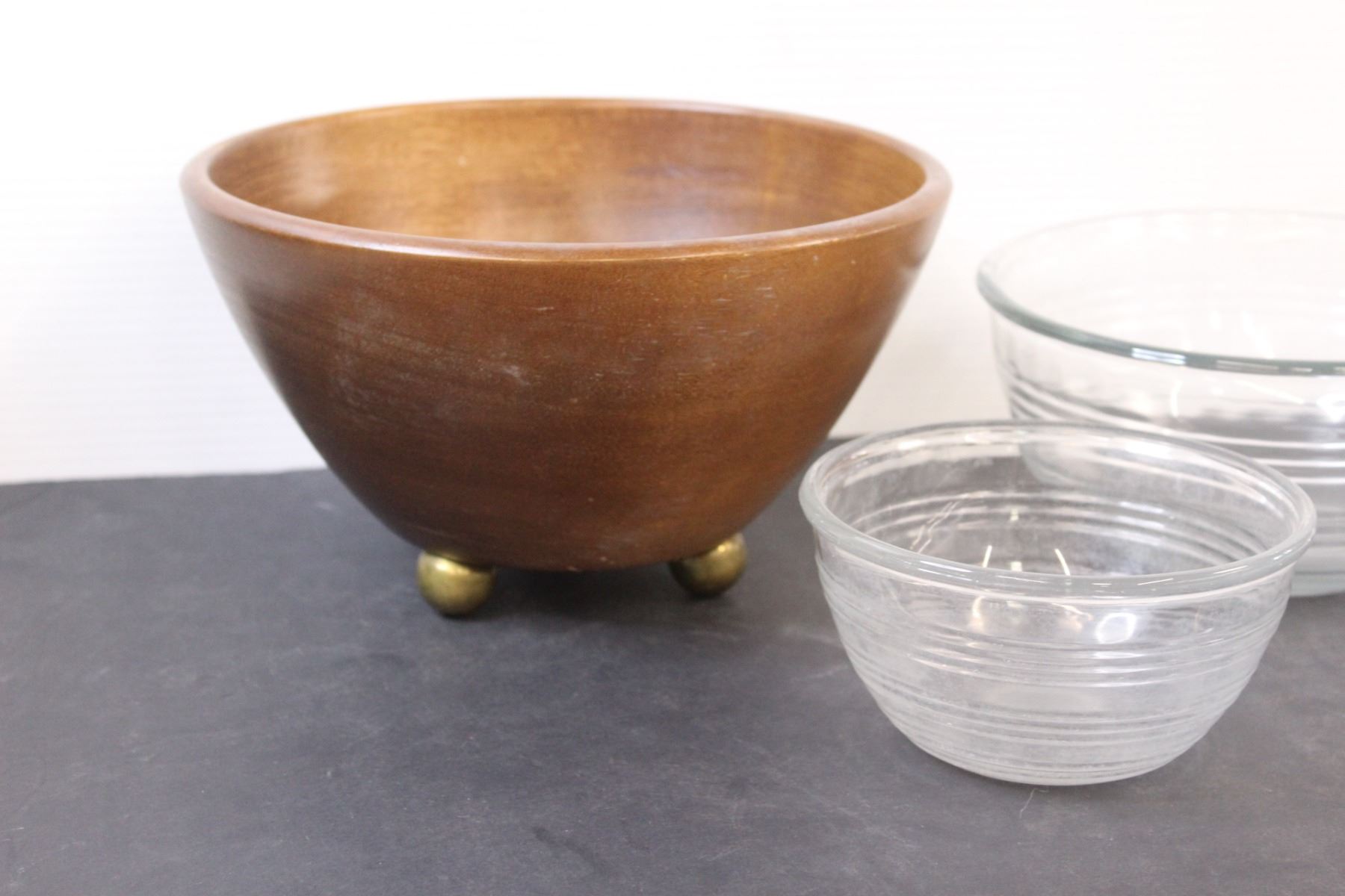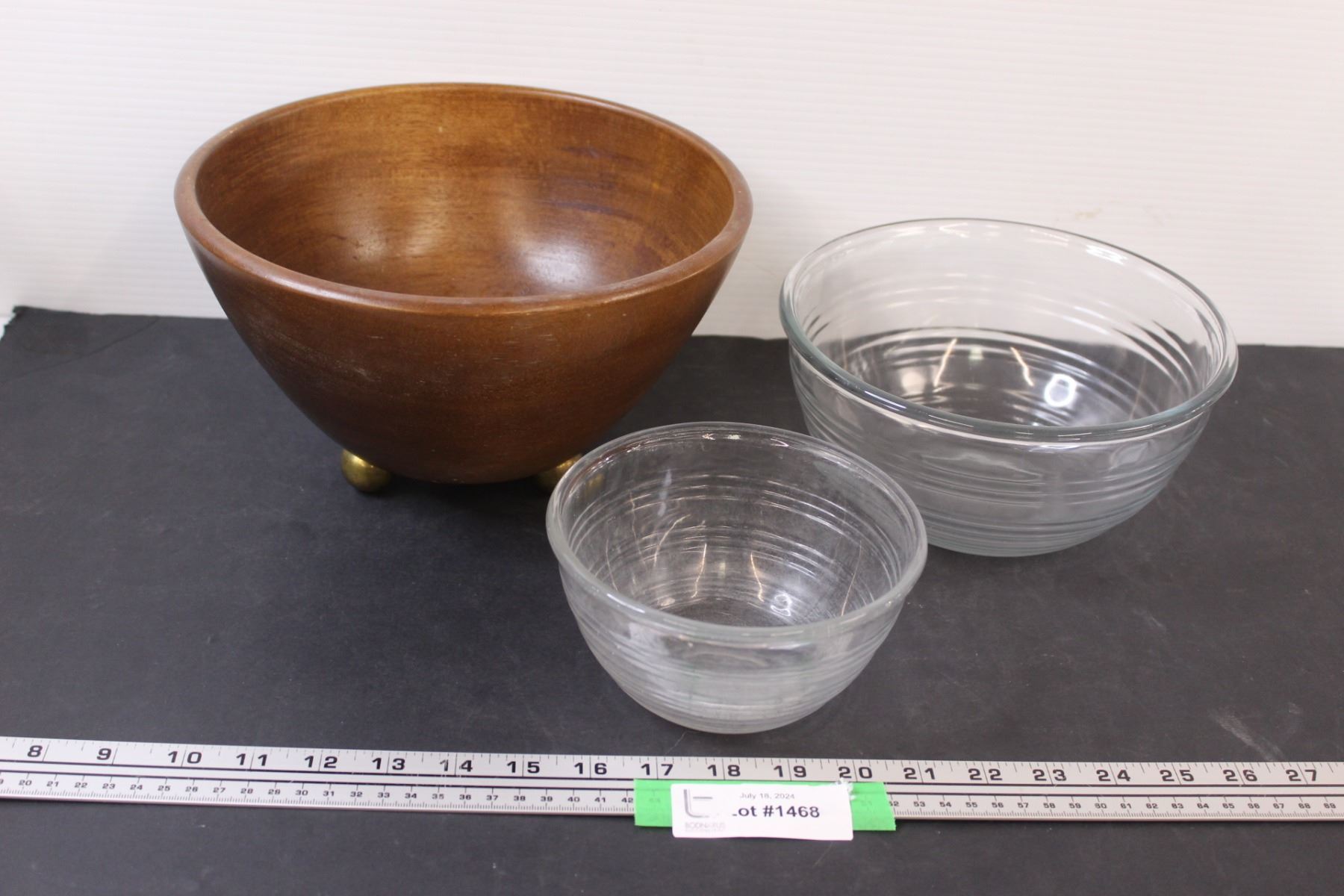 Wooden Bowl - 10", Clear Glass Mixing Bowls - 8" & 6"