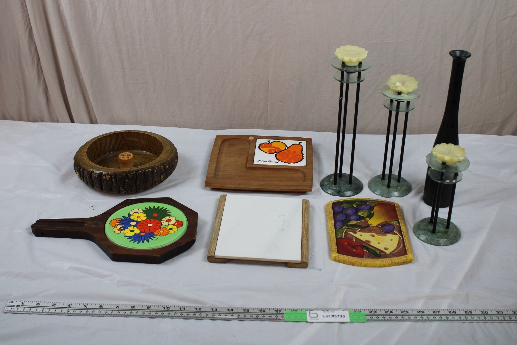 Wooden Candy Bowl, Serving plates, 3 Milano Candle Holders, Slim Vase (Stone or Ceramic)