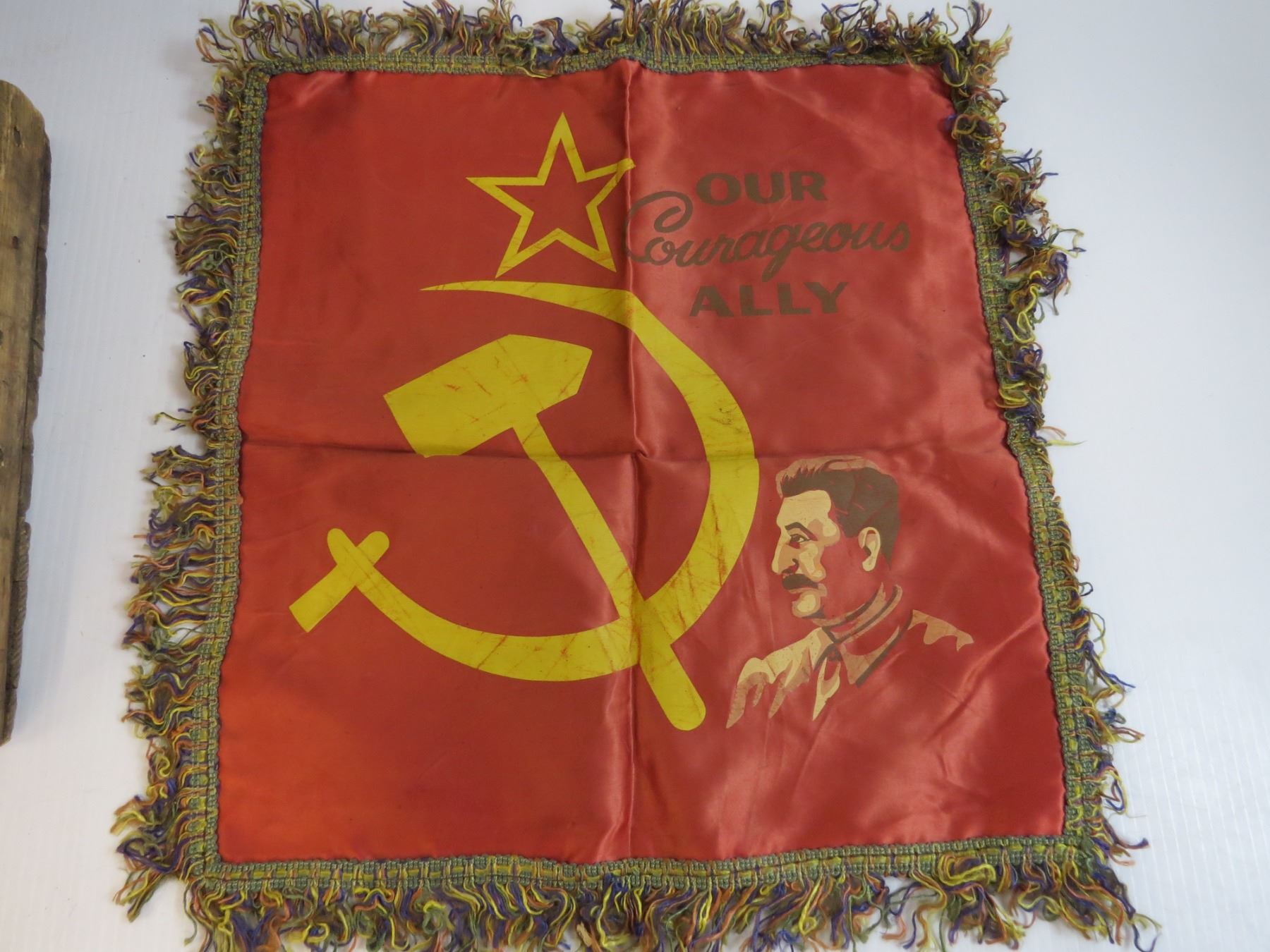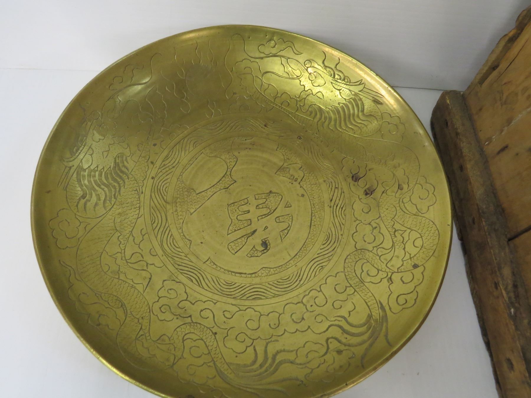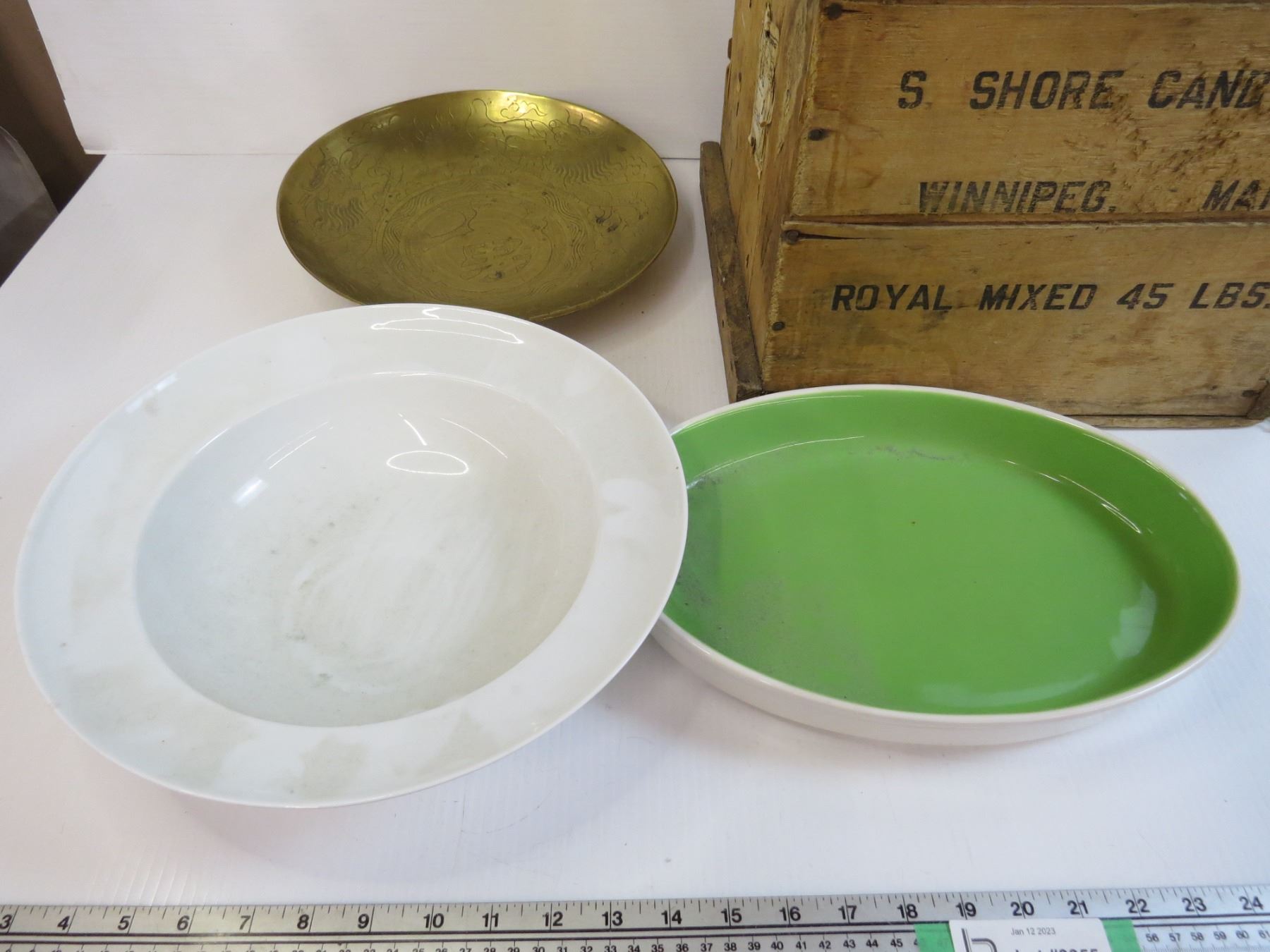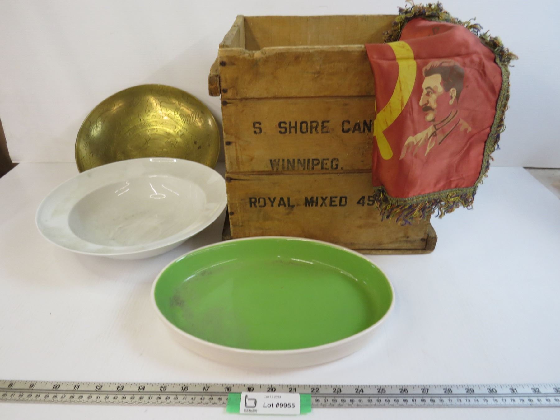 Wooden Crate - Brass Bowl - (2) Dishes - Russian Pillow Sham