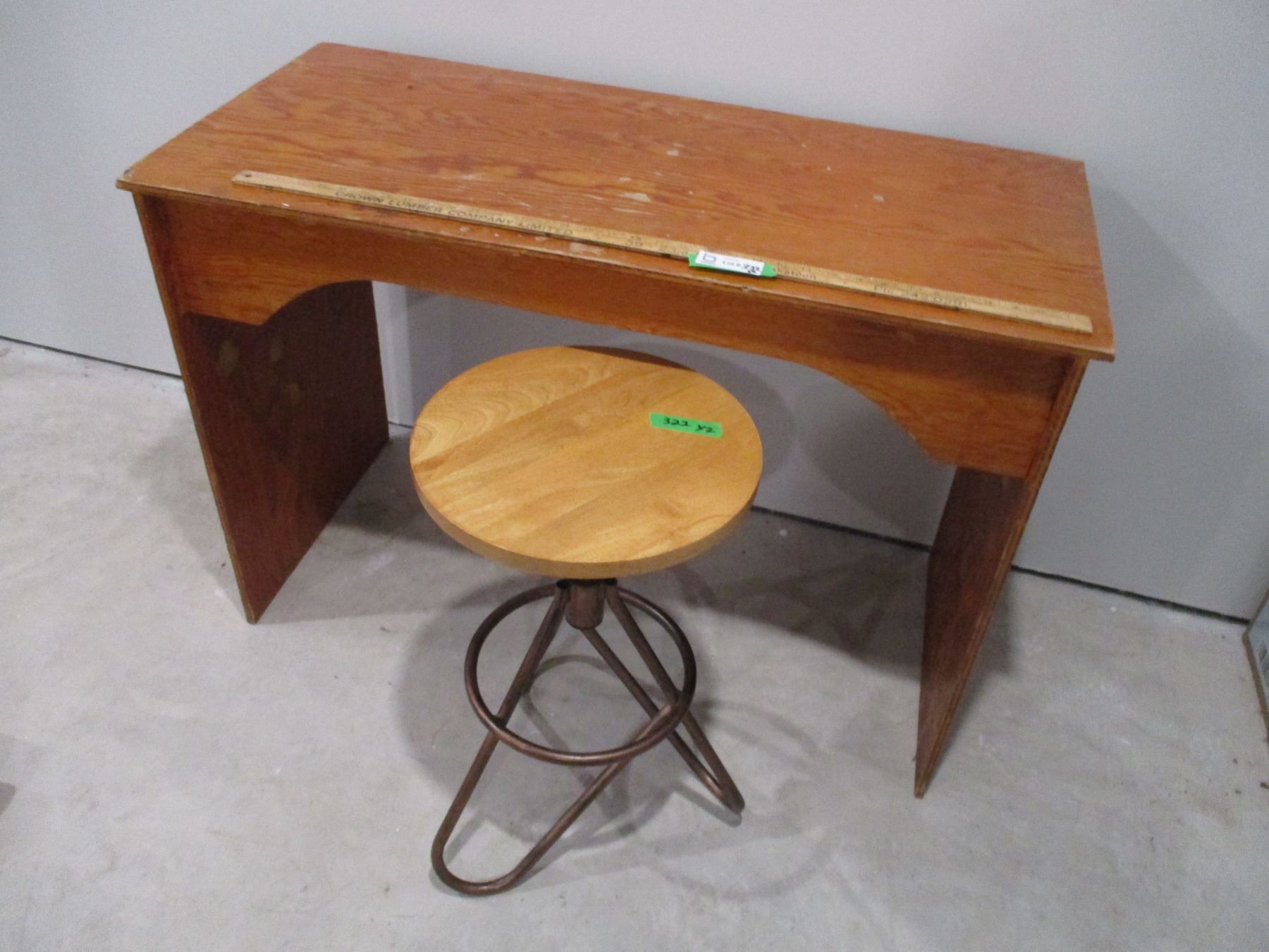 Wooden Desk (42 x 19 x 29") with Small Swivel Stool (23" Tall)