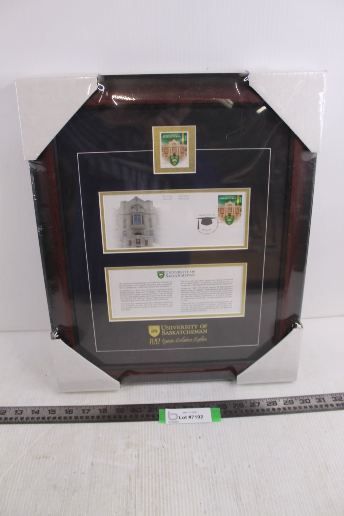 Wooden Framed University of Saskatchewan Commemorative Postage Stamp 14.75" x 17.75" - Sealed