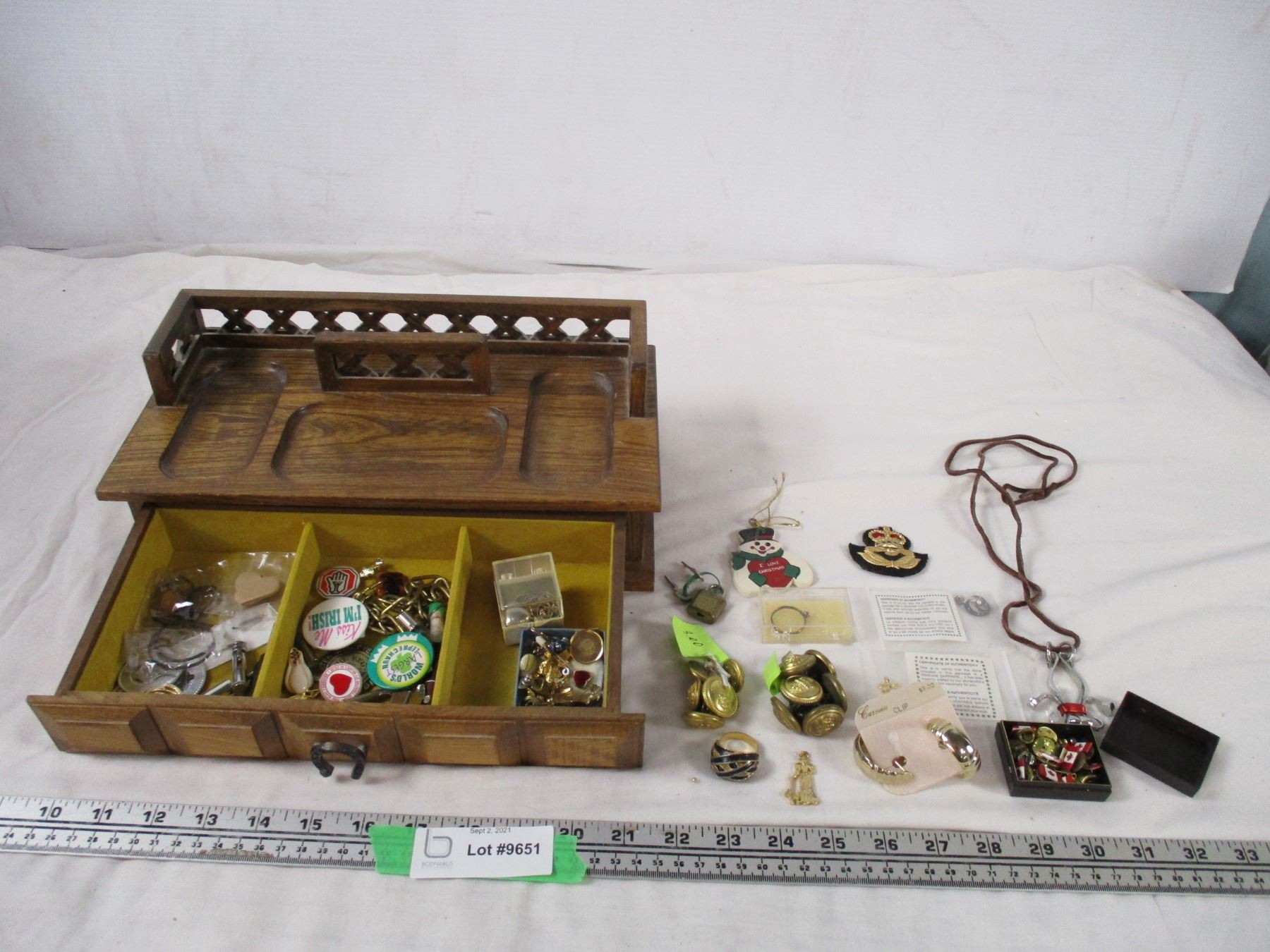 Wooden Jewelry Box, Costume Jewelry, Pendants Plus Misc