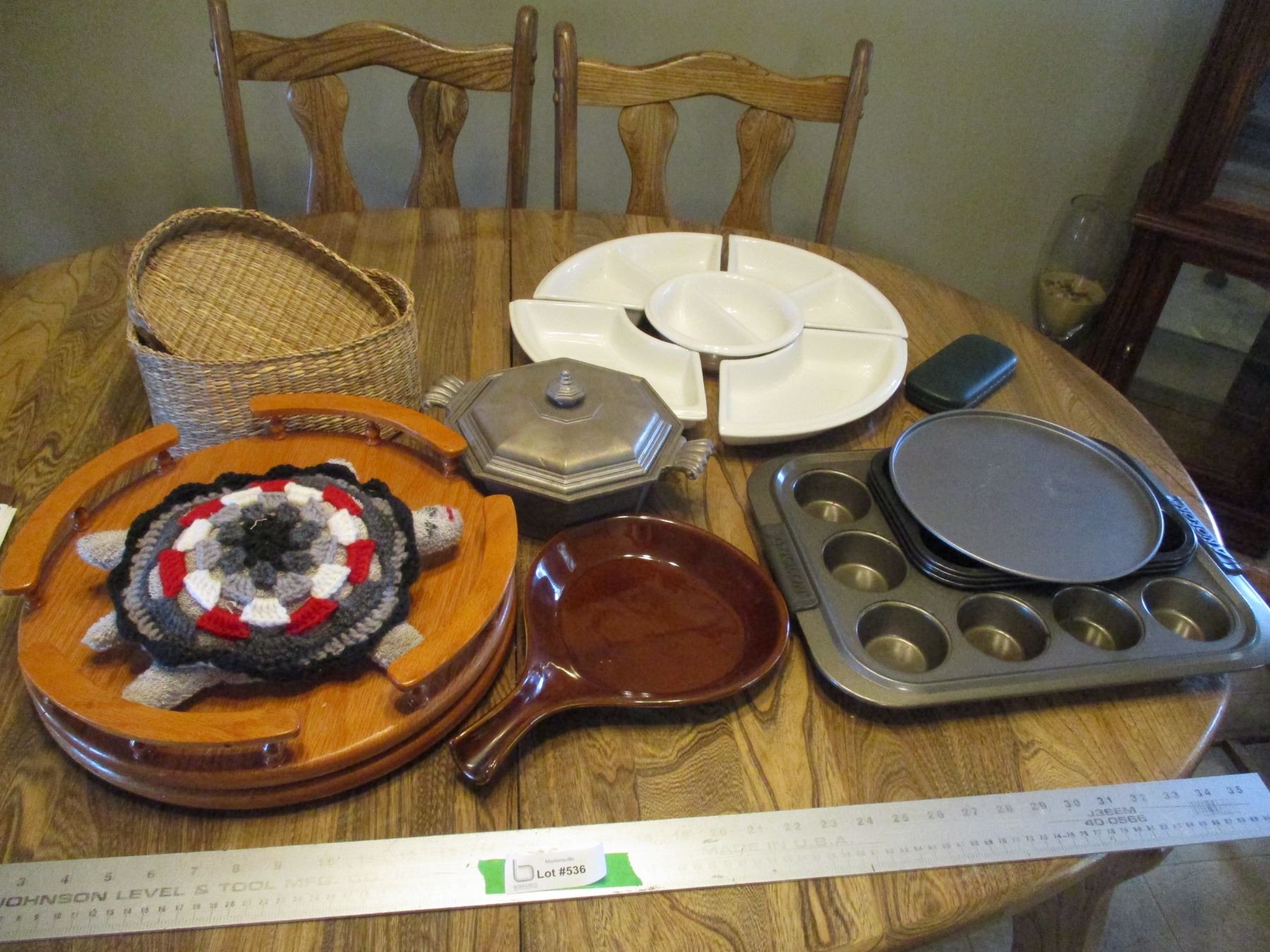Wooden Lazy Susan, Muffin Pans, Divided Serving Trays, International Lidded Aluminium Pot etc.