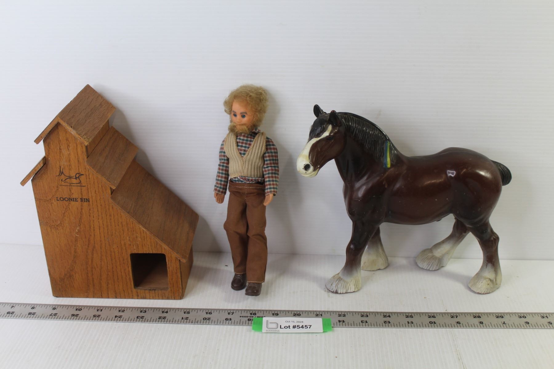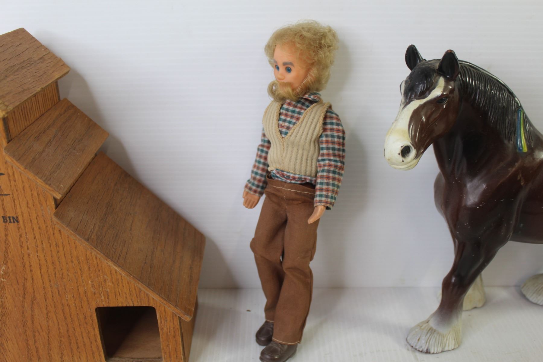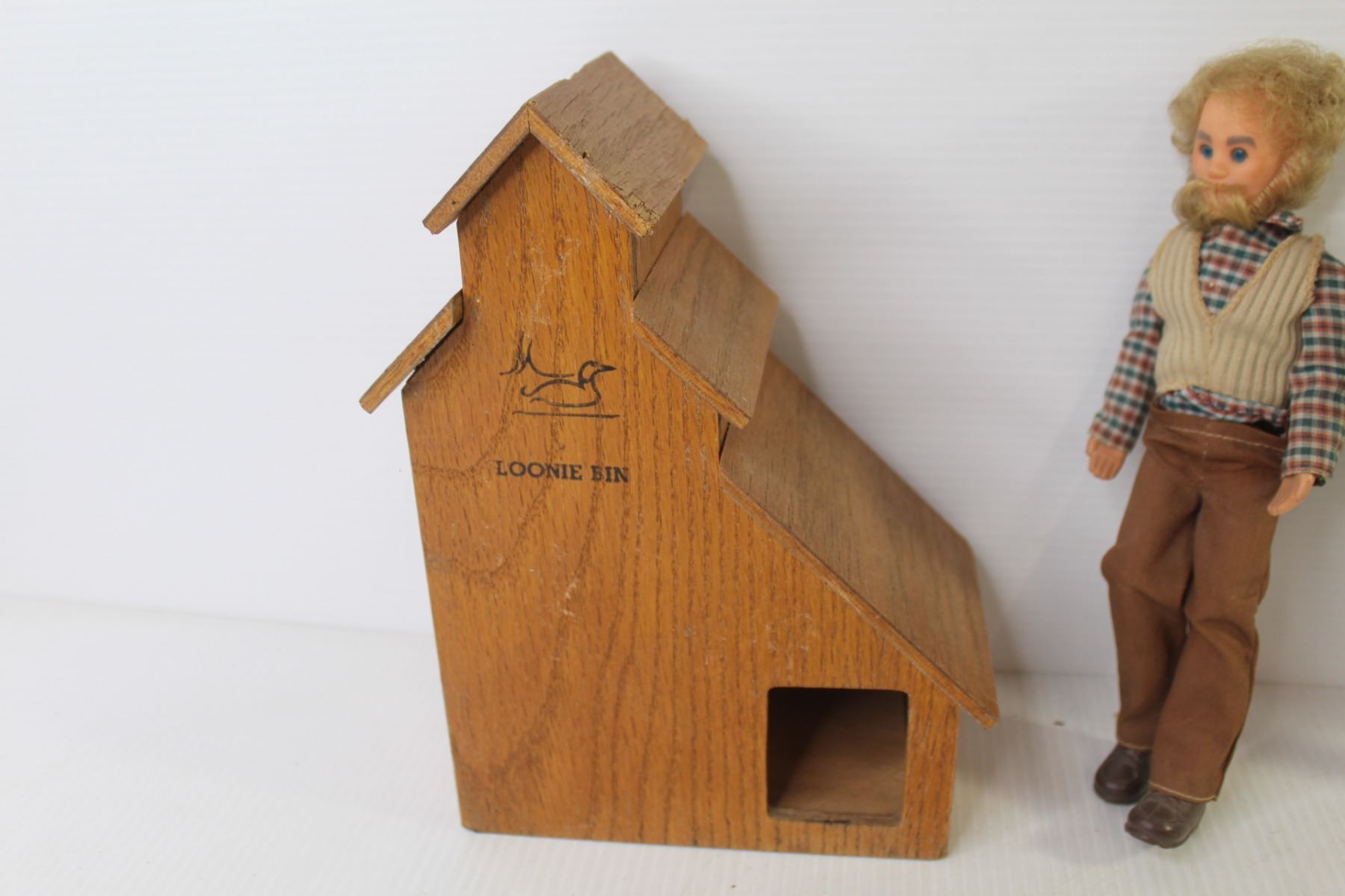 Wooden Loonie Bin Grain Elevator - Doll w/Beard - Plastic Work Horse