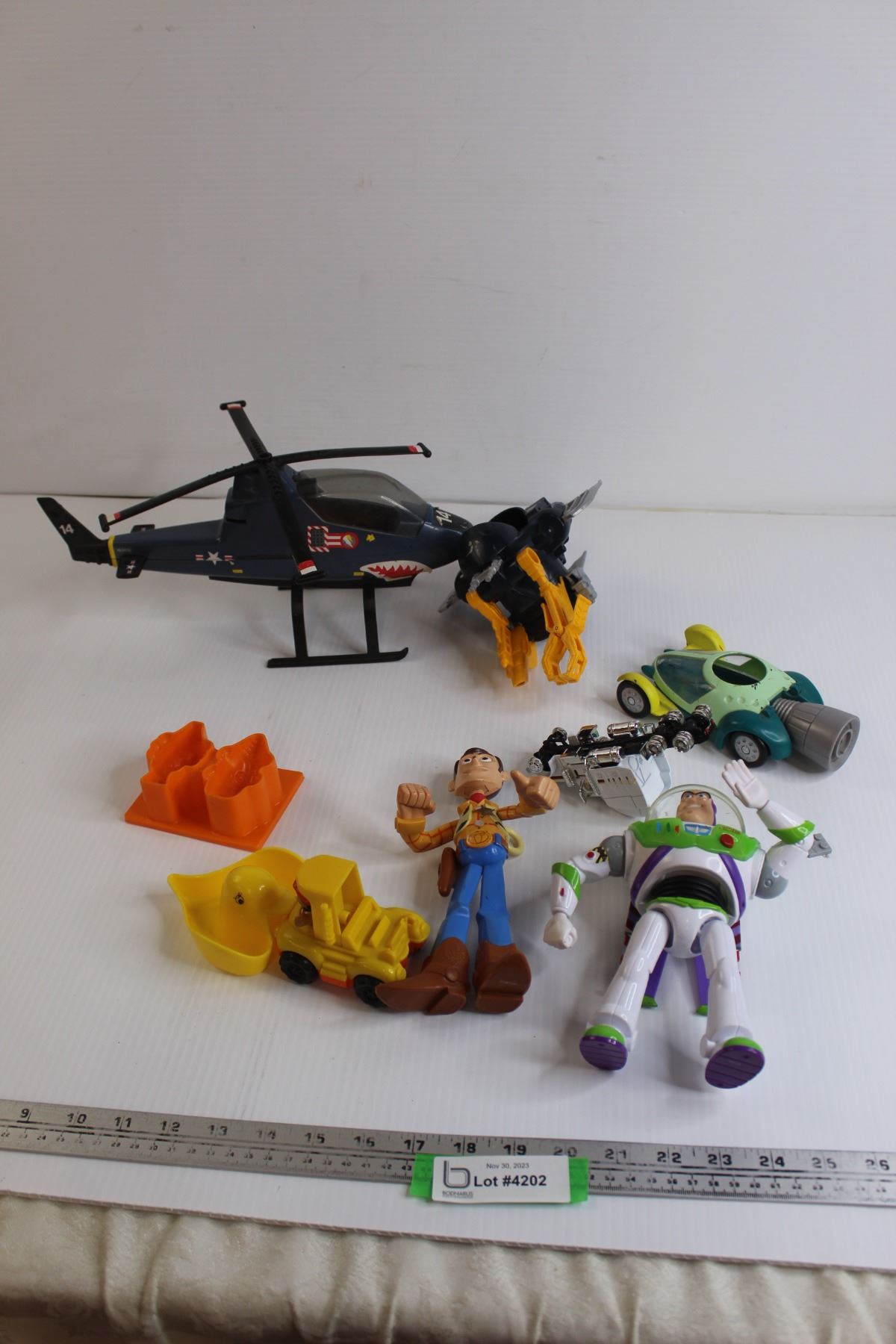 Woody and Buzz Lightyear Figurines, Fisher-Price Car Toy, Misc.