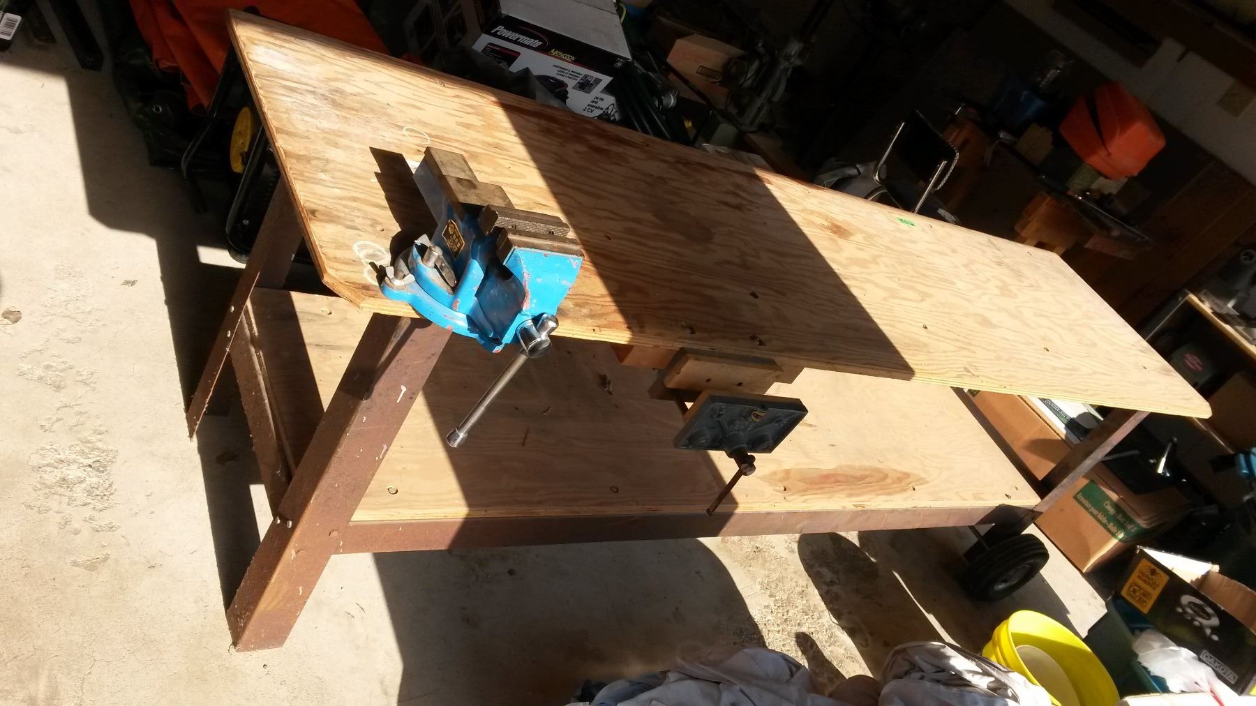 Work Bench 8’x26”, With 2 Vices And Wheels