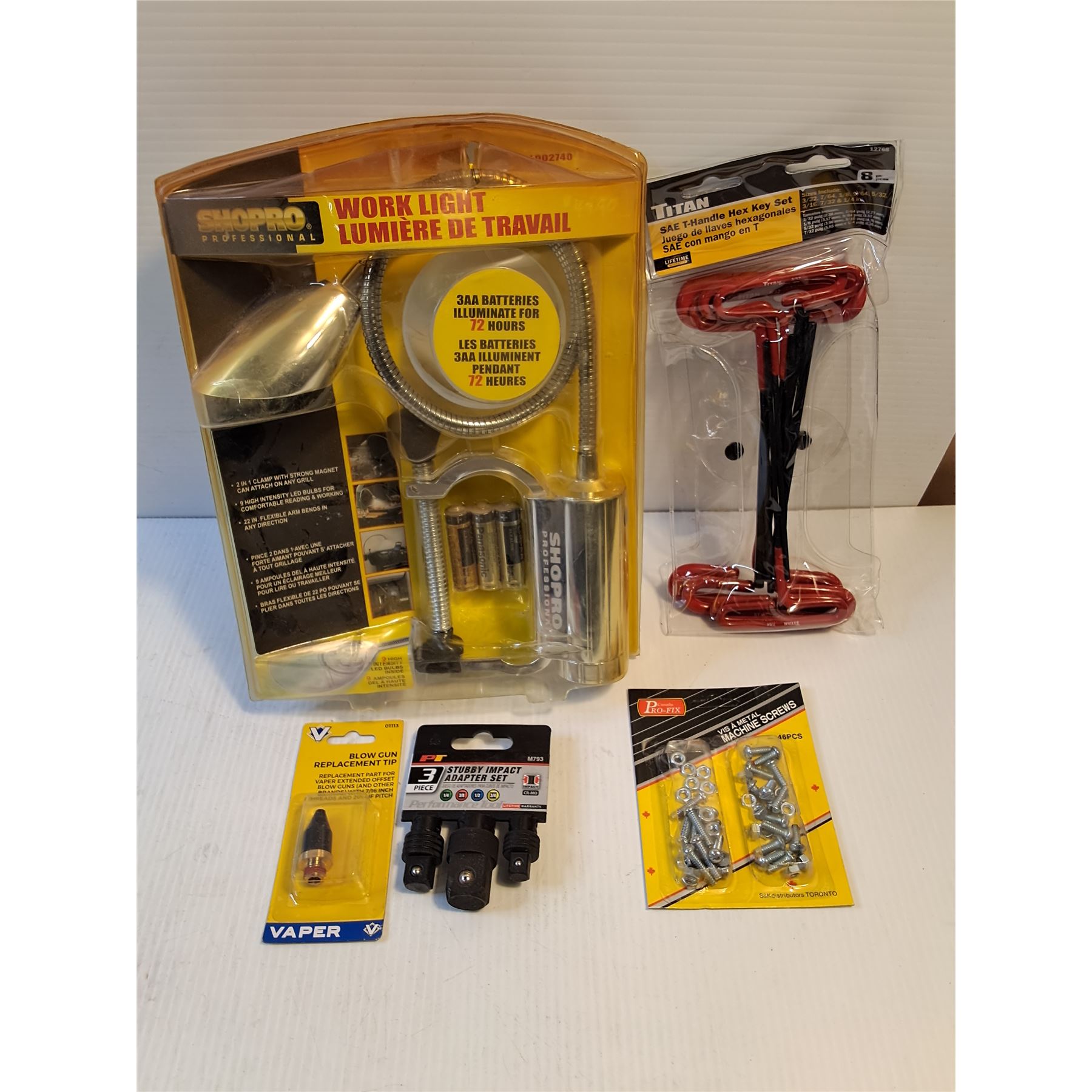 Work Light,9 Pc.Ball End Hex Key Set,T-Handle Hex Key Set and more in pictures