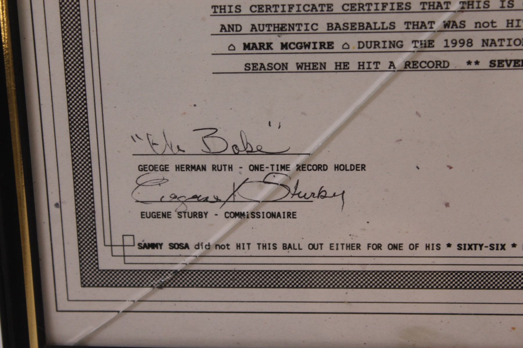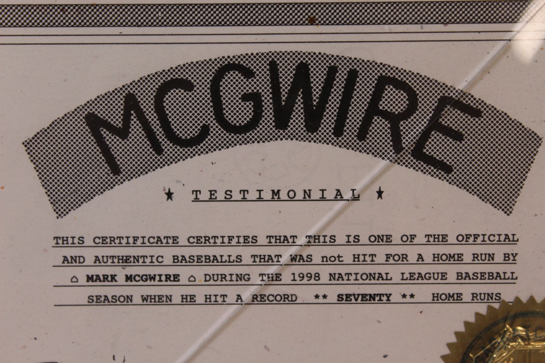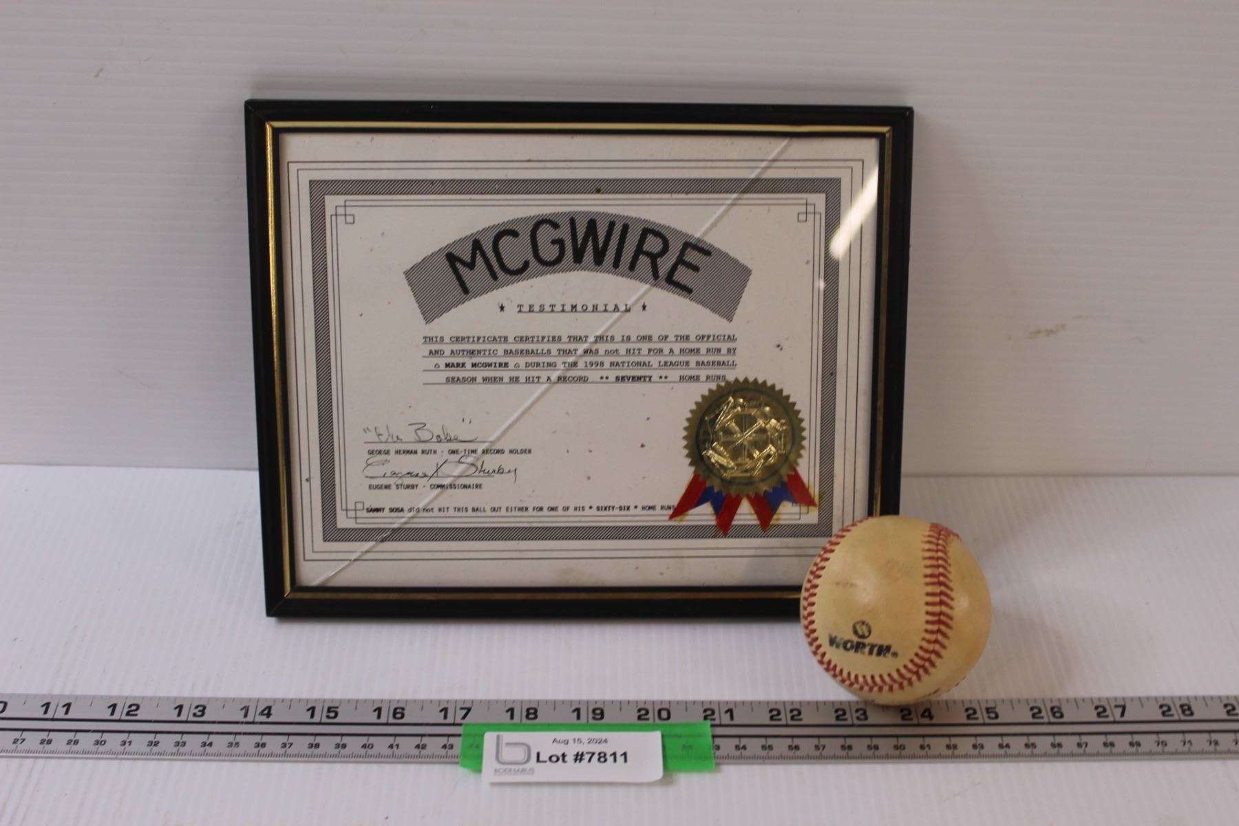 Worth Baseball w/McGwire Framed Certification (Has Crack)
