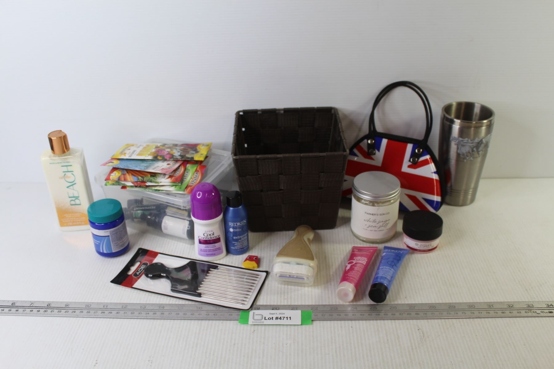 Woven Basket - Horse Cup - Shampoo - Hair Pick - Essential Oils - Metal Purse - Flower & Vegetable Seeds