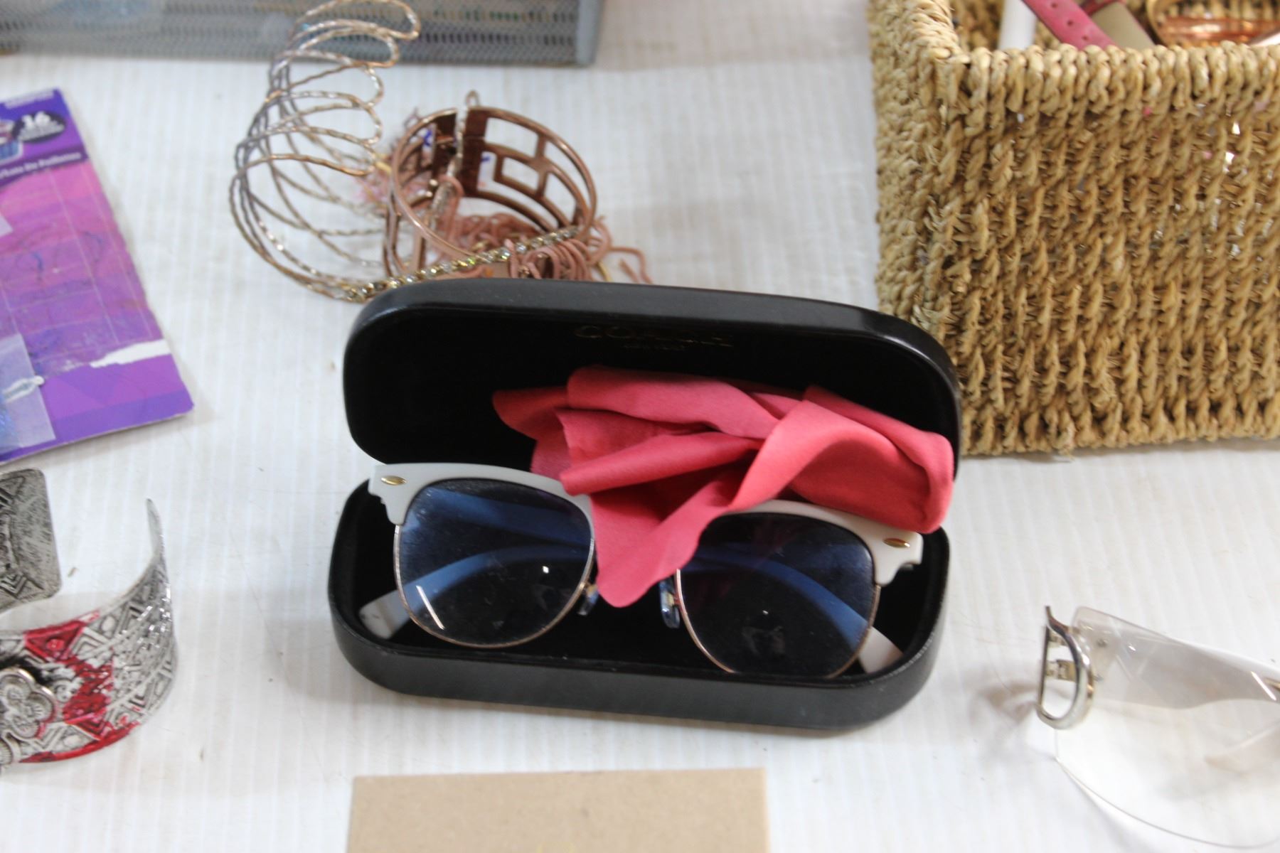 Woven Basket, Jewelry Display Rack, Glitter, Sunglasses, Hand Sanitizer, Nail Polish and Misc.