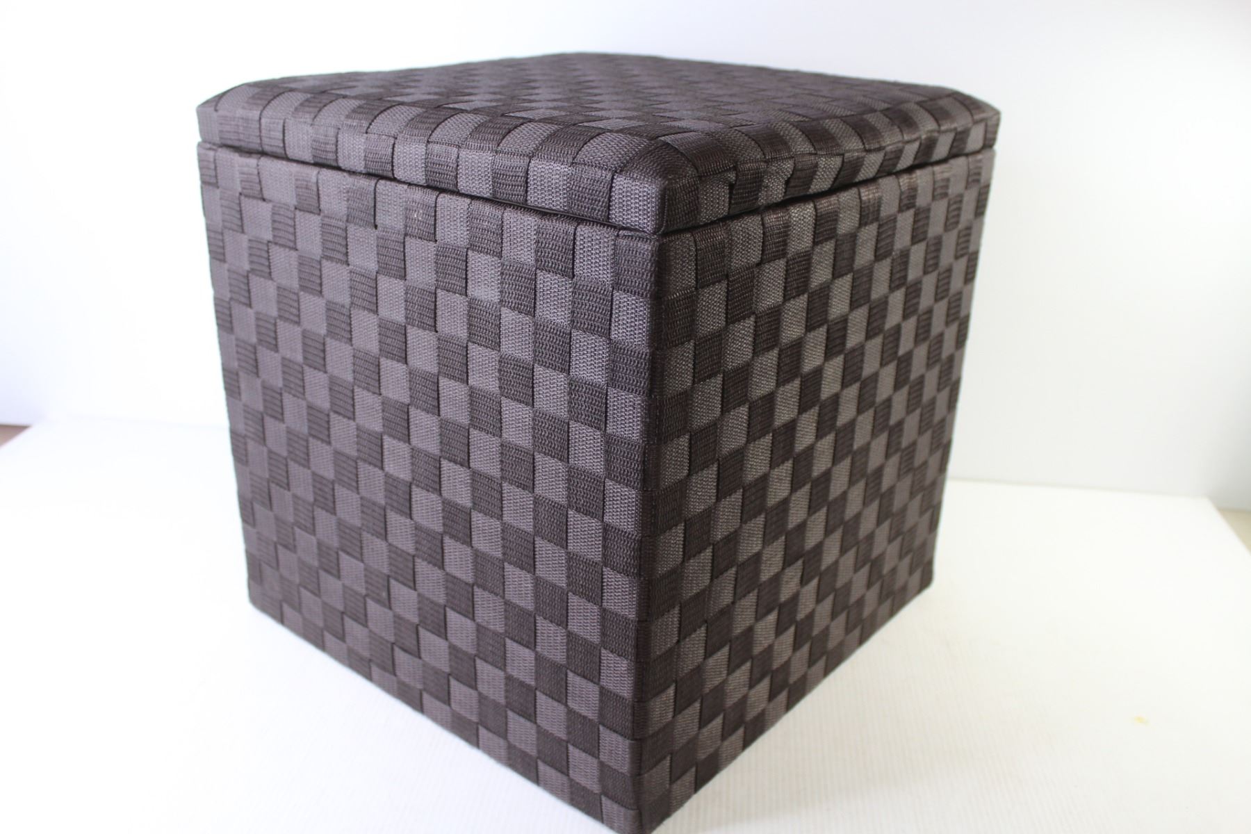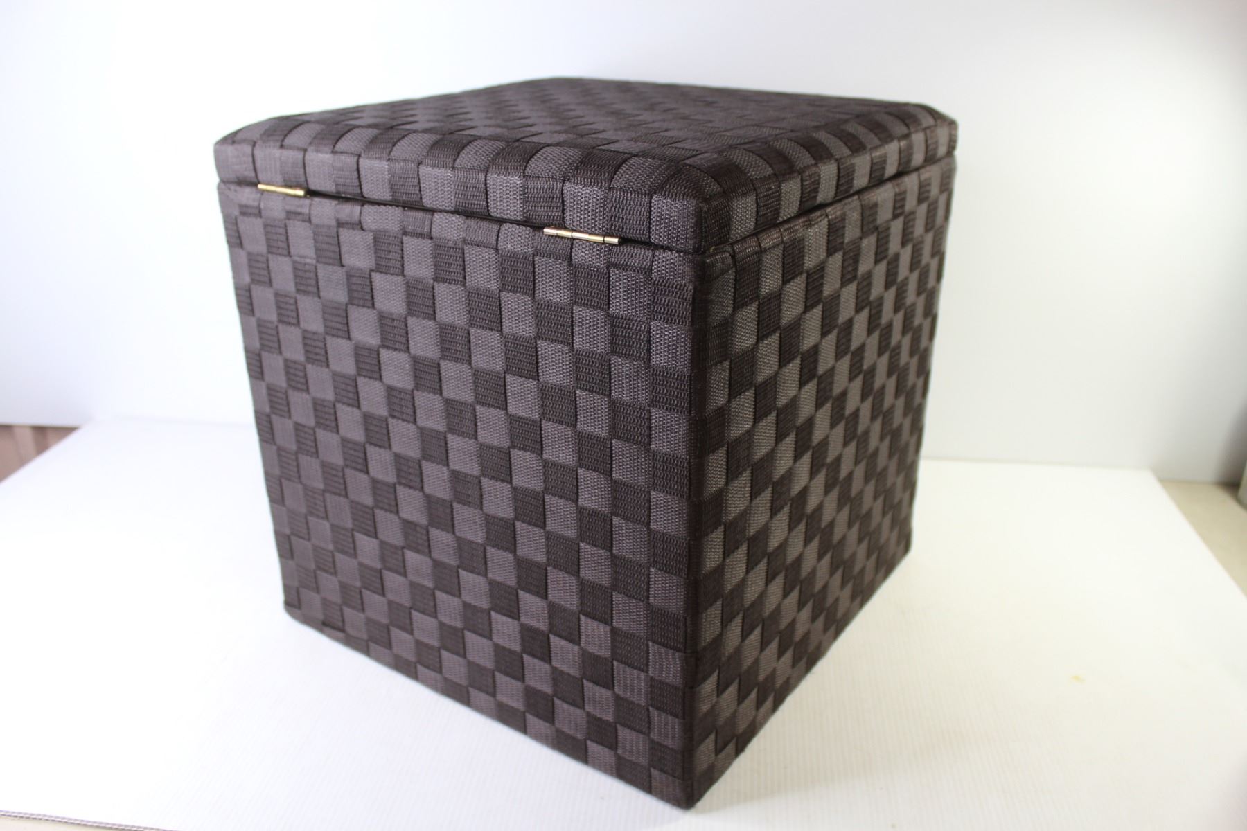 Woven Material Covered Box w/Handles & Padded Top Cushion (16" x 16" x 16")