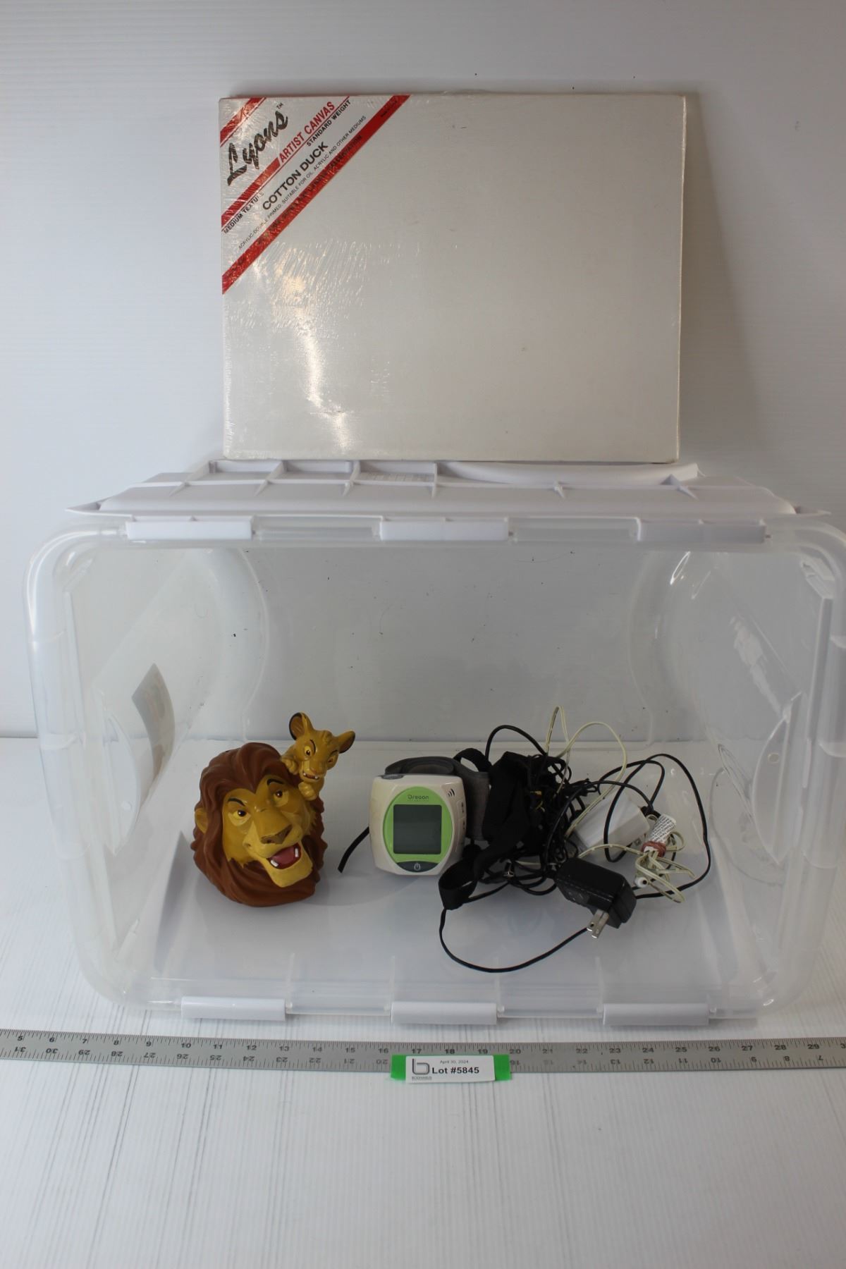 Wrist Fitness Attachment - Working, Lion Coin Bank, Artist Canvas, Cords, Plastic Tote